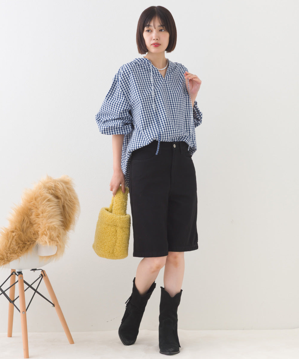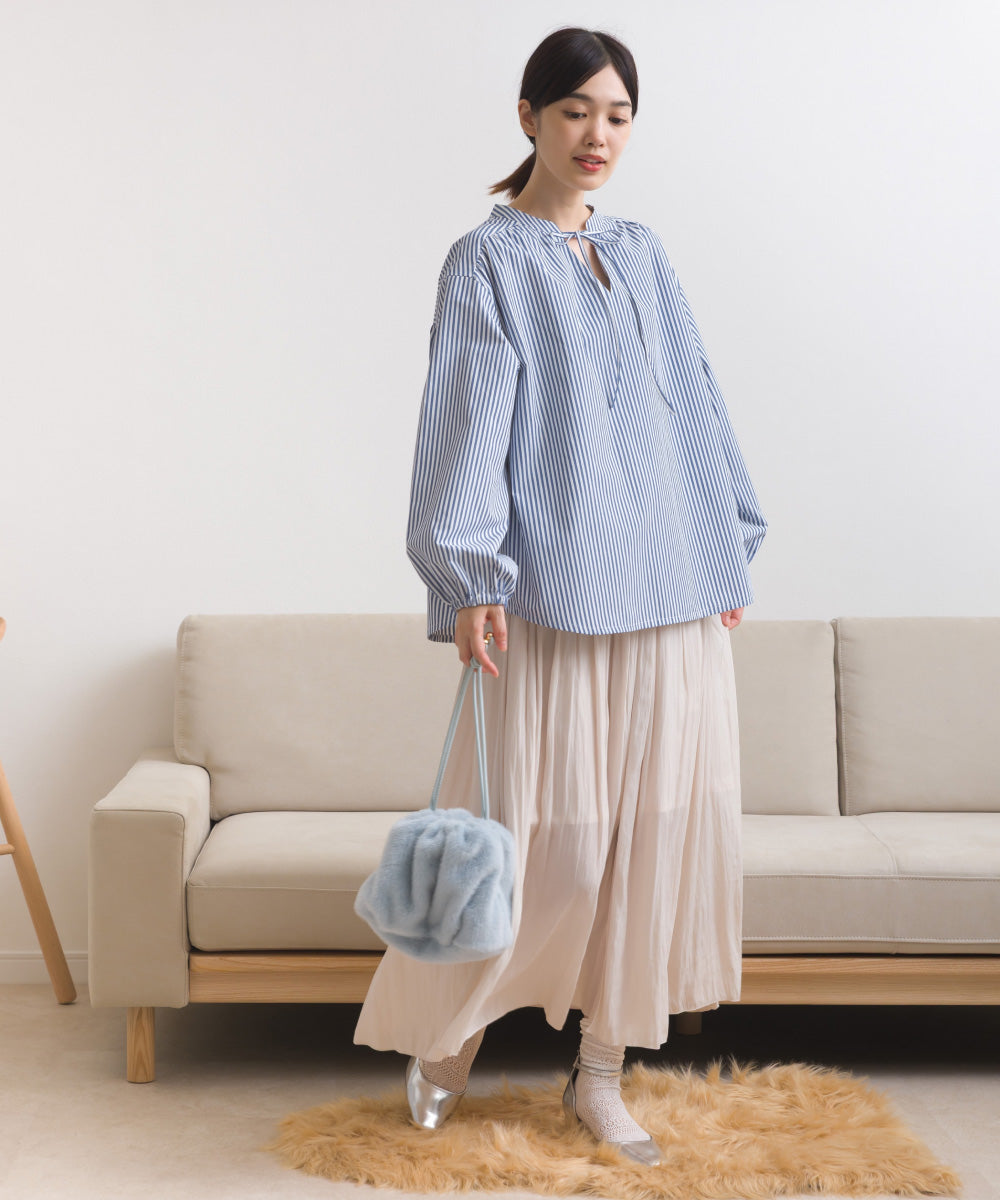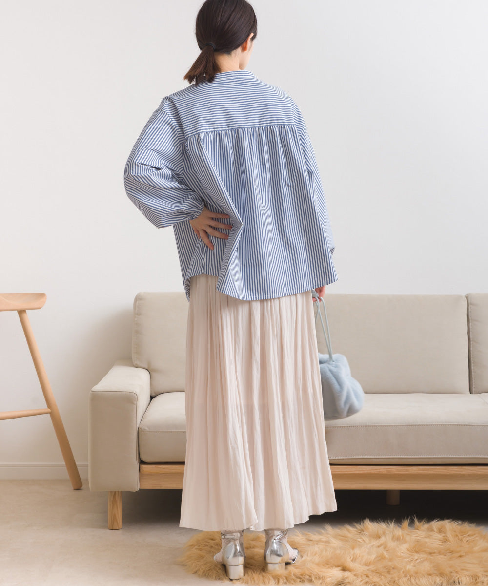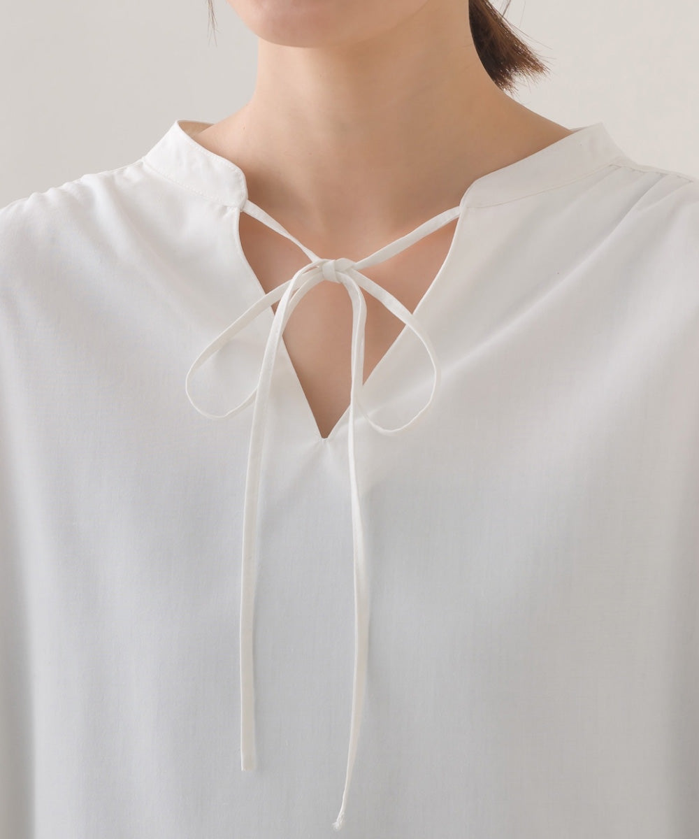 【OMNES】テックコットンスキッパーデザイン9分袖フリルシャツブラウス【253W427OMN072】