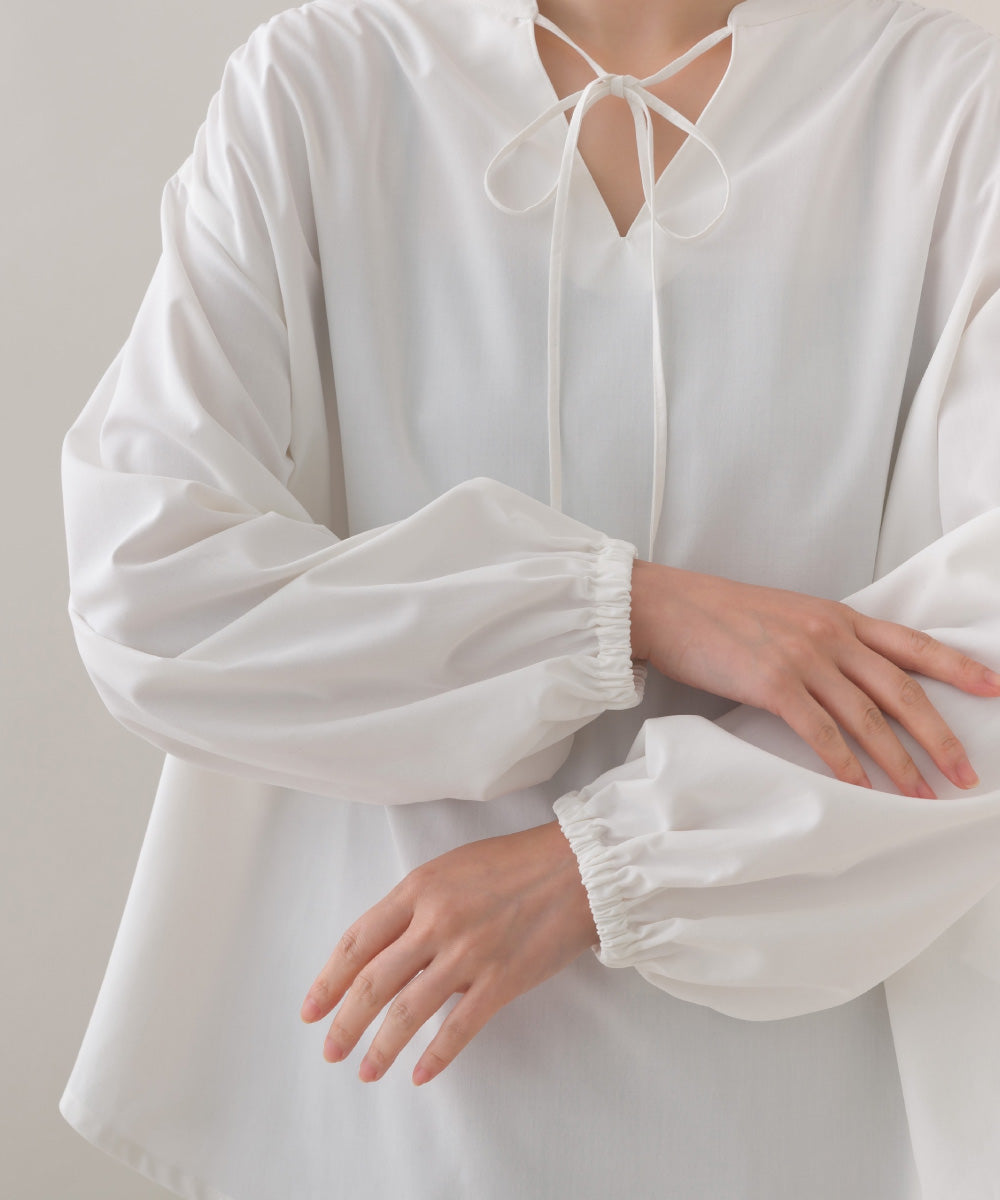 【コーディネート】 フェミニンな印象のボリュームスリーブはあえてラフなニットパンツやデニムなどカジュアルなボトムと合わせることで、甘くなりすぎないコーデに。 トレンドのベスト合わせやキャミワンピースのインナーとしても◎