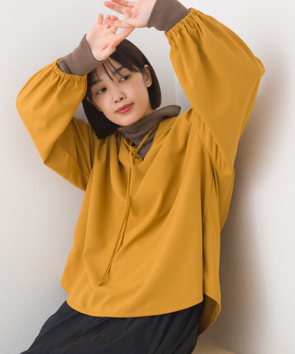 【コーディネート】 フェミニンな印象のボリュームスリーブはあえてラフなニットパンツやデニムなどカジュアルなボトムと合わせることで、甘くなりすぎないコーデに。 トレンドのベスト合わせやキャミワンピースのインナーとしても◎