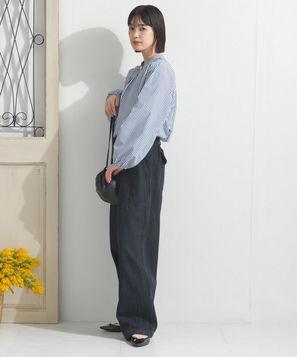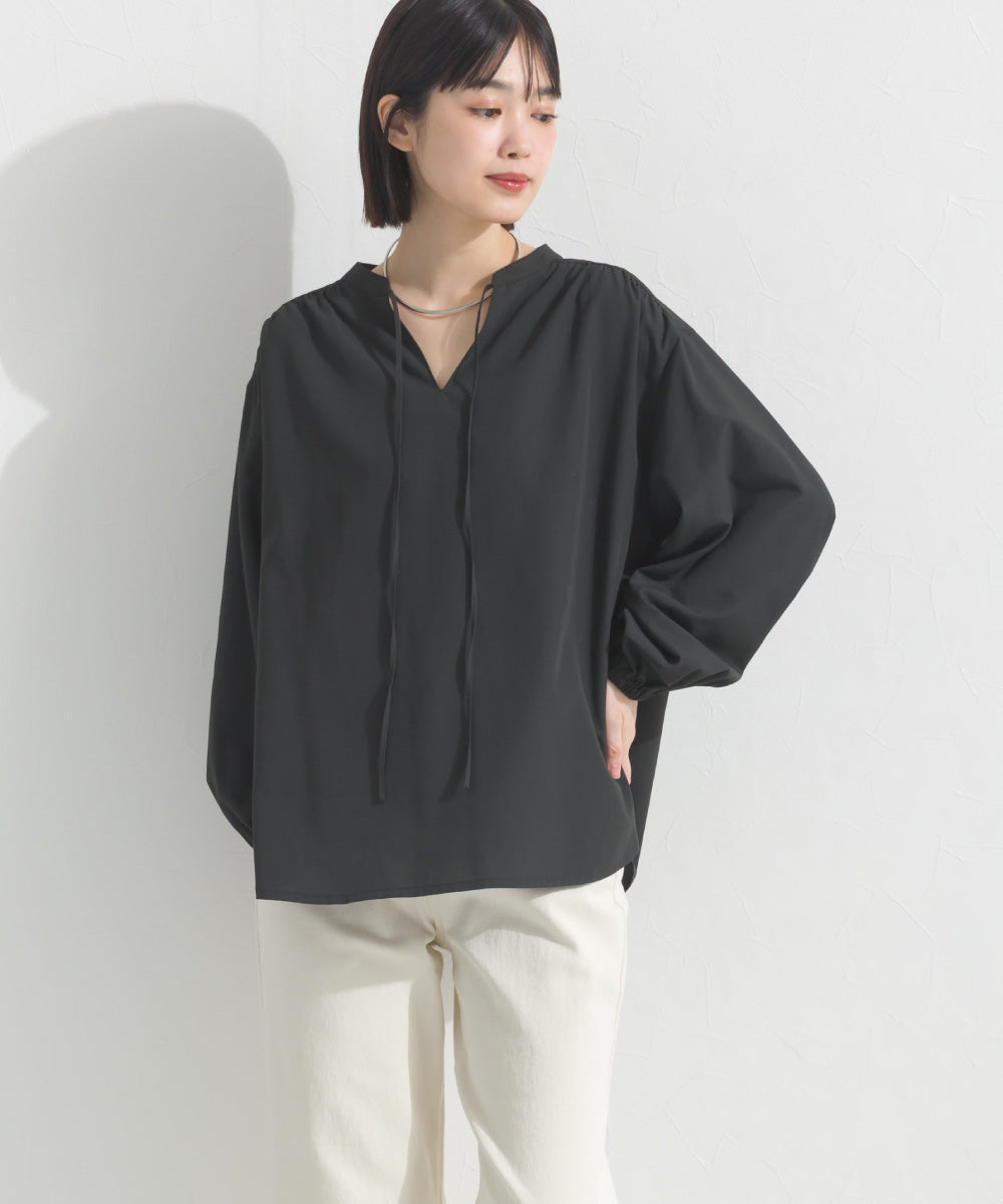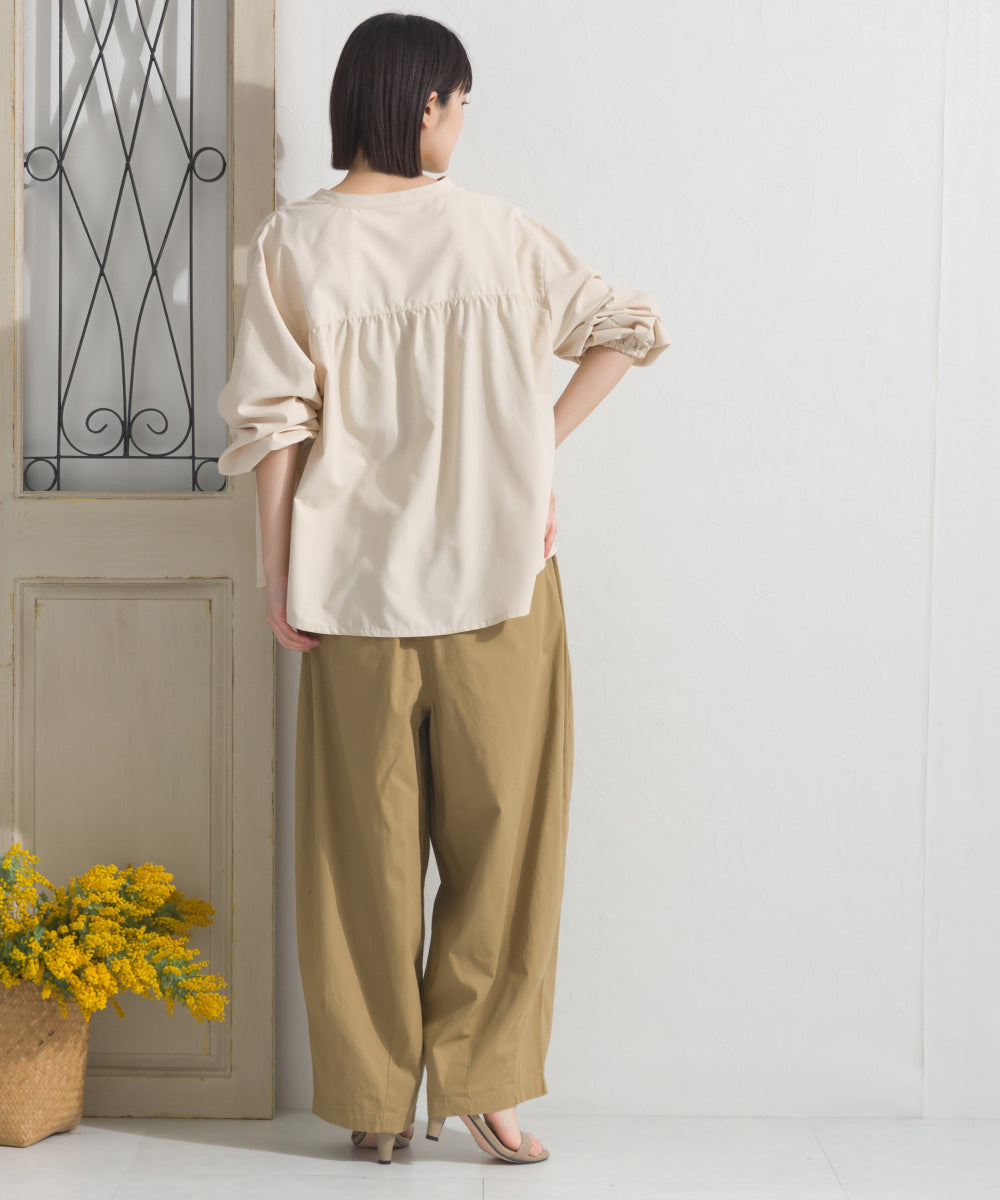 【OMNES】テックコットンスキッパーデザイン9分袖フリルシャツブラウス【253W427OMN072】