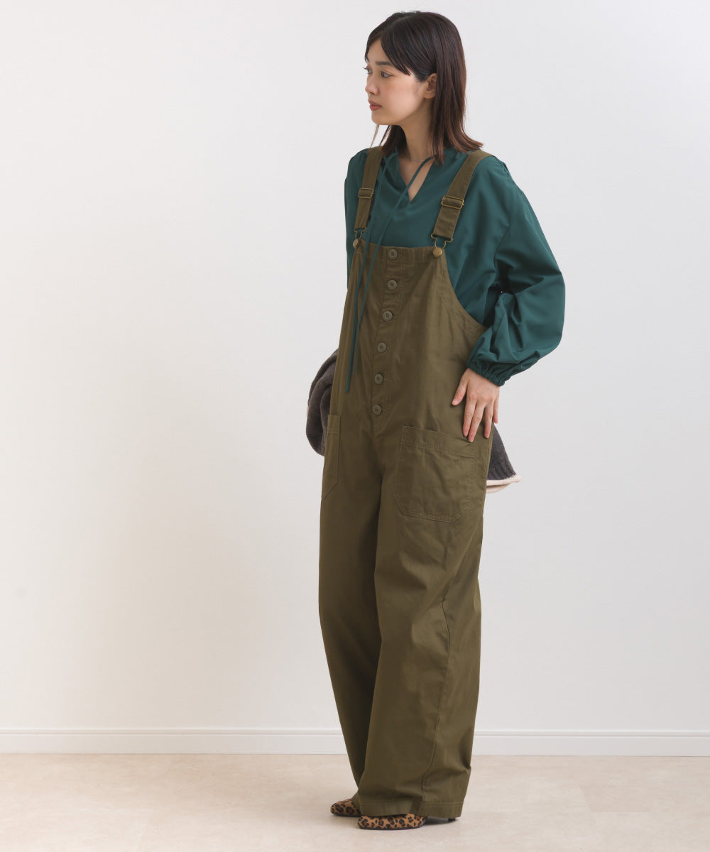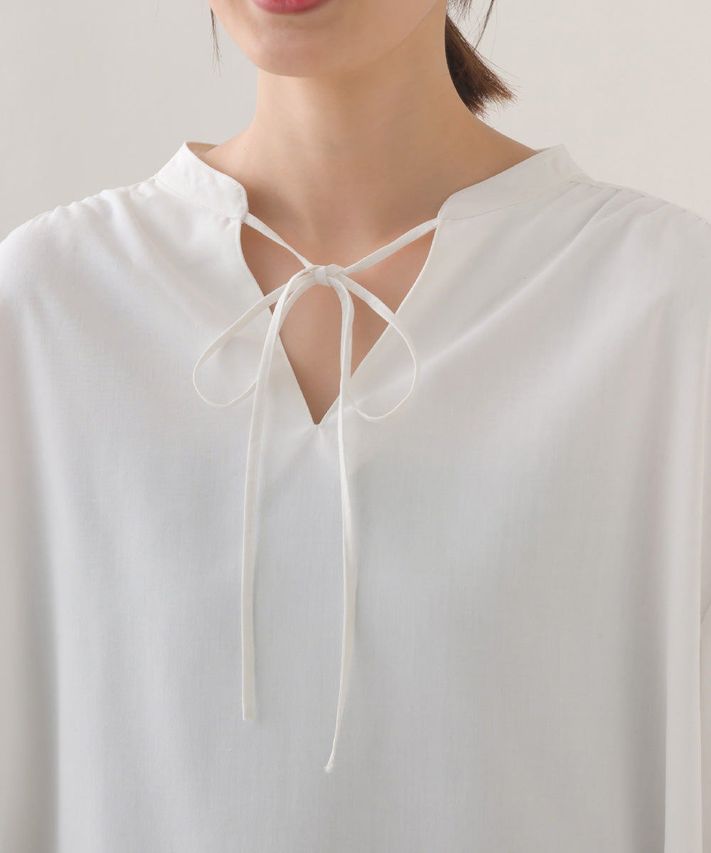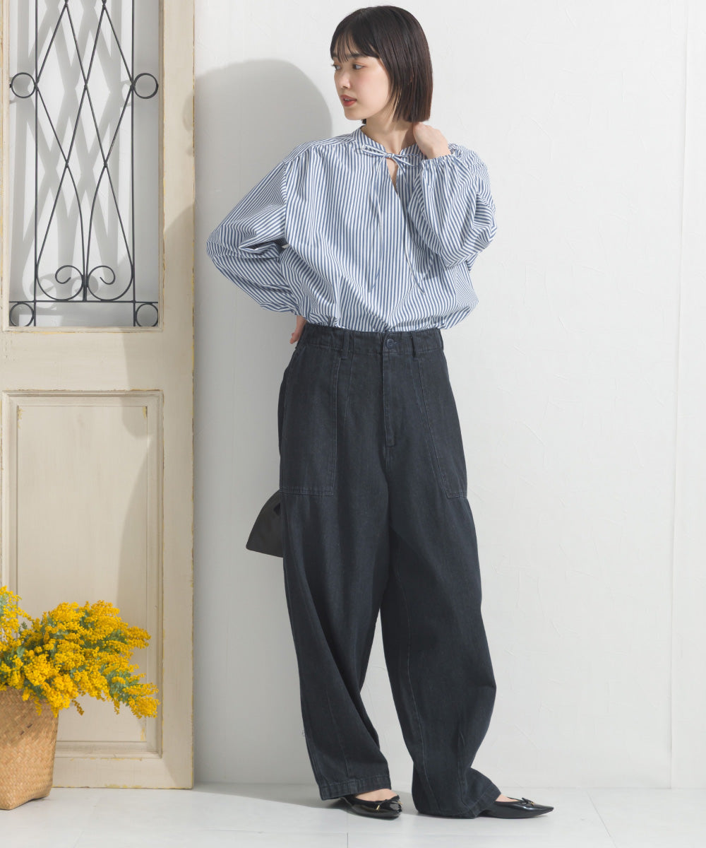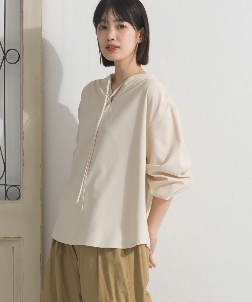 【OMNES】テックコットンスキッパーデザイン9分袖フリルシャツブラウス【253W427OMN072】