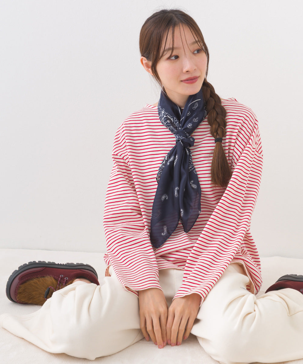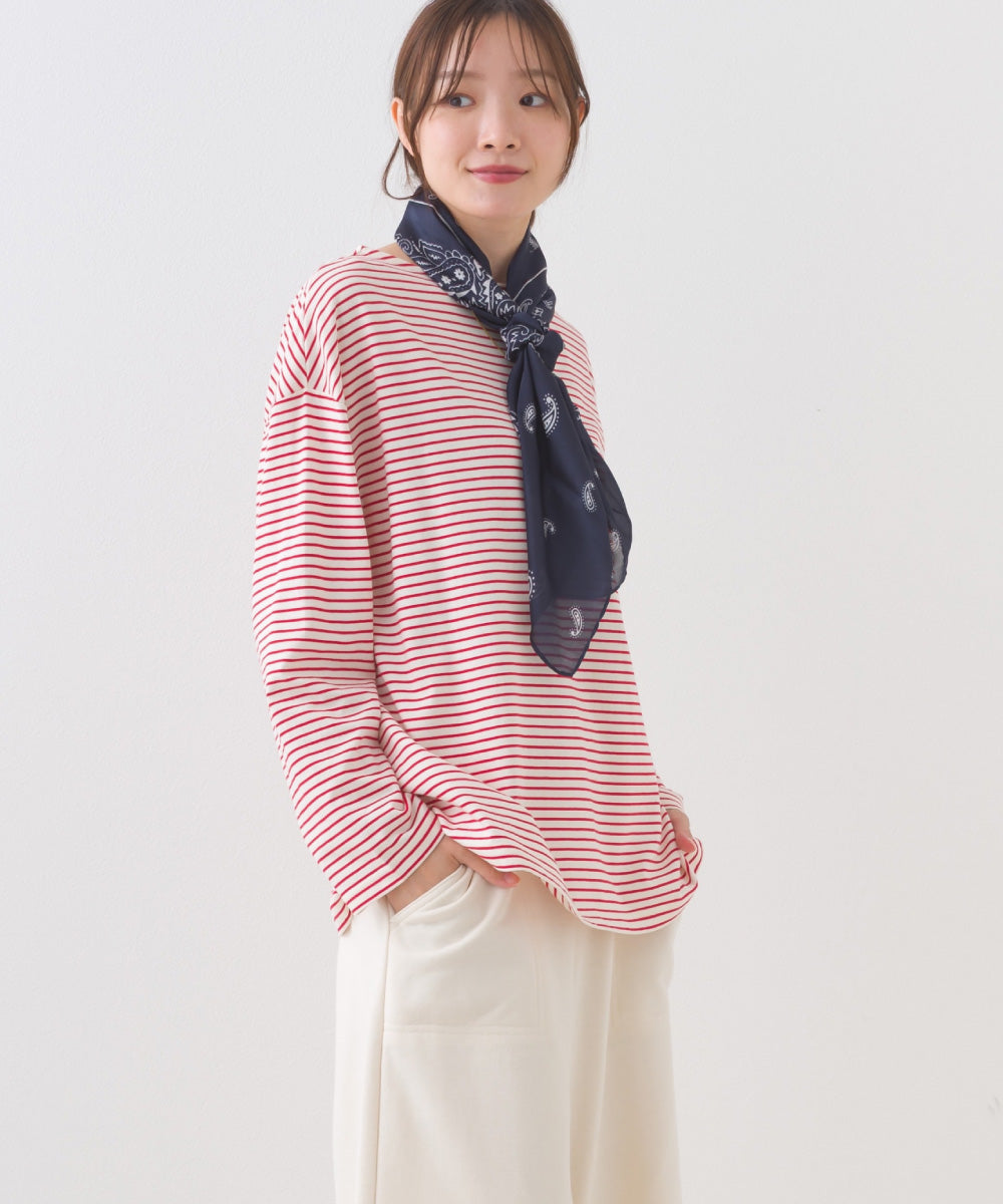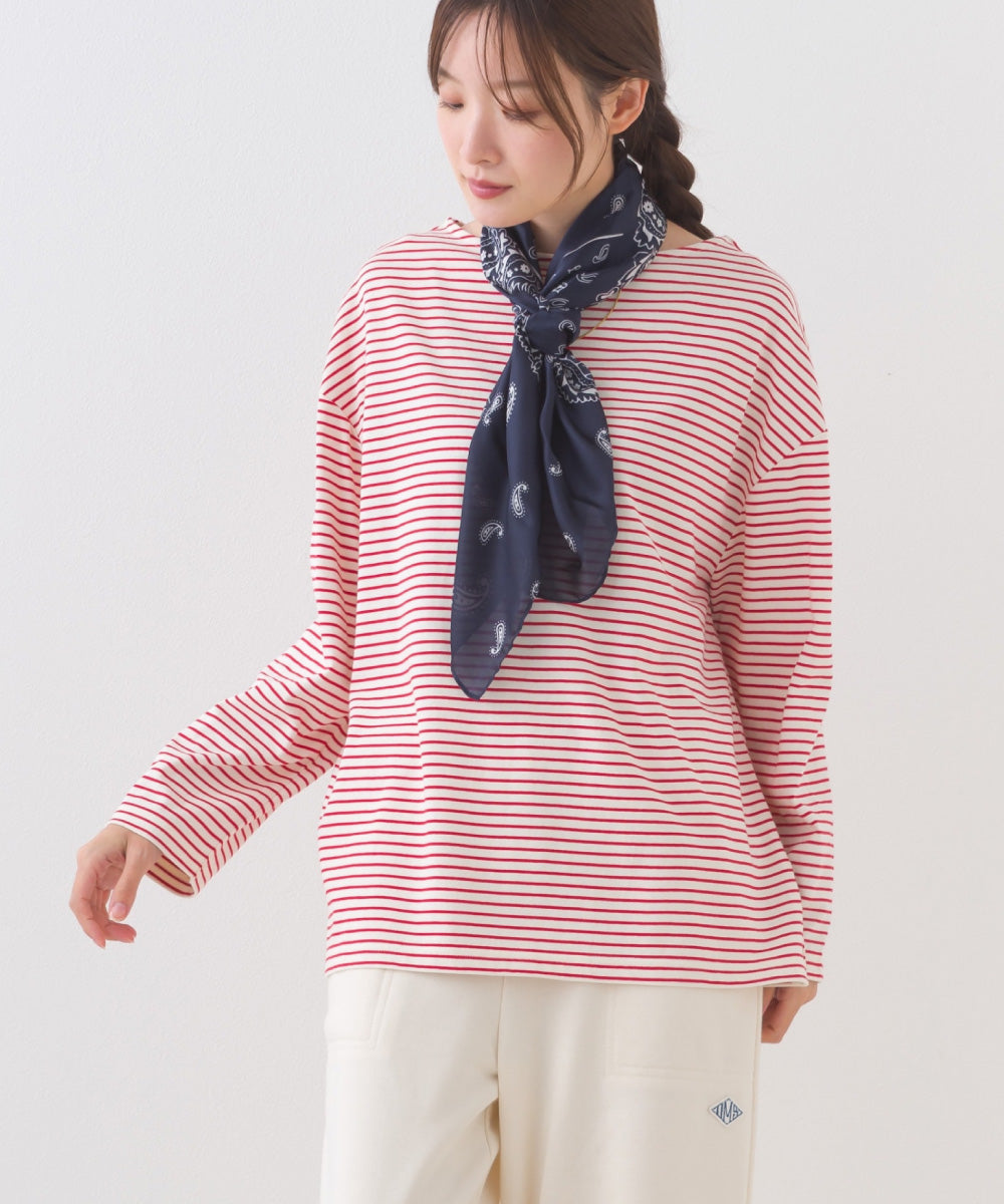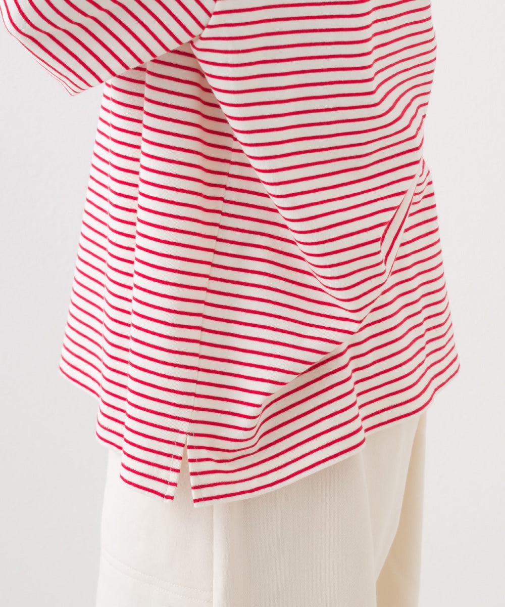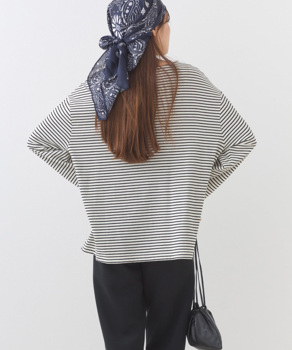 【OMNES】サイドスリットプルオーバー ボーダーロングスリーブTシャツ【253W430OMN100】