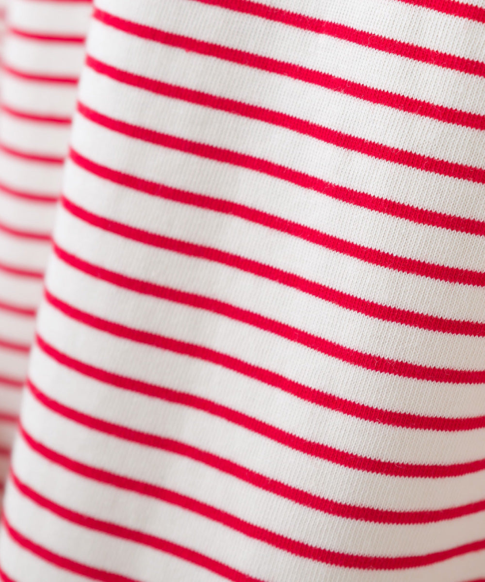 【コーディネート】 パンツにもスカートにも合わせやすく、着回し力抜群のアイテムは、デイリーに大活躍すること間違いなし! ボーダーにカーディガンやジャケットを羽織り、縦のラインを作ることでよりスタイルアップにつながります。