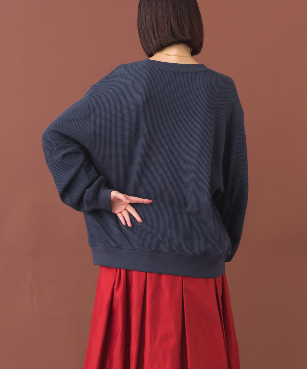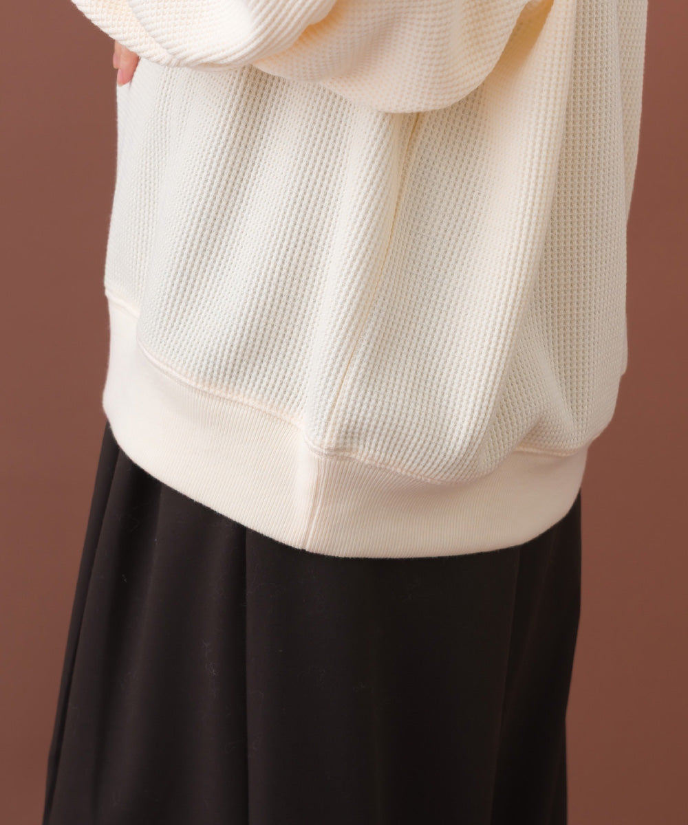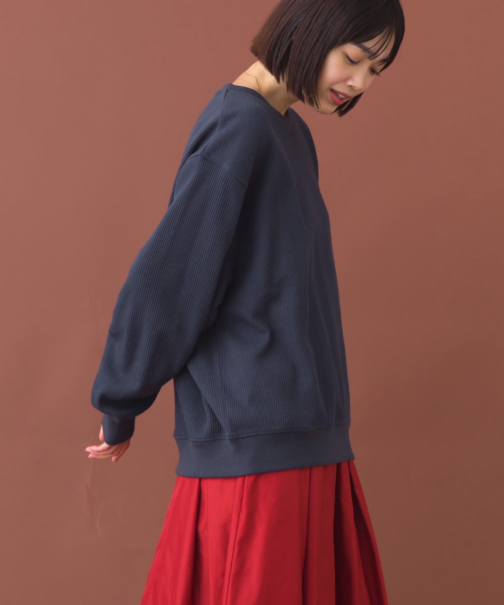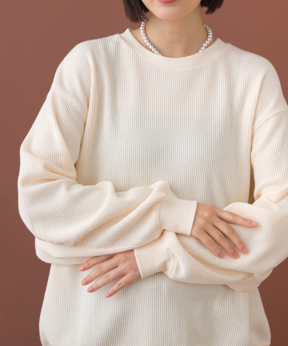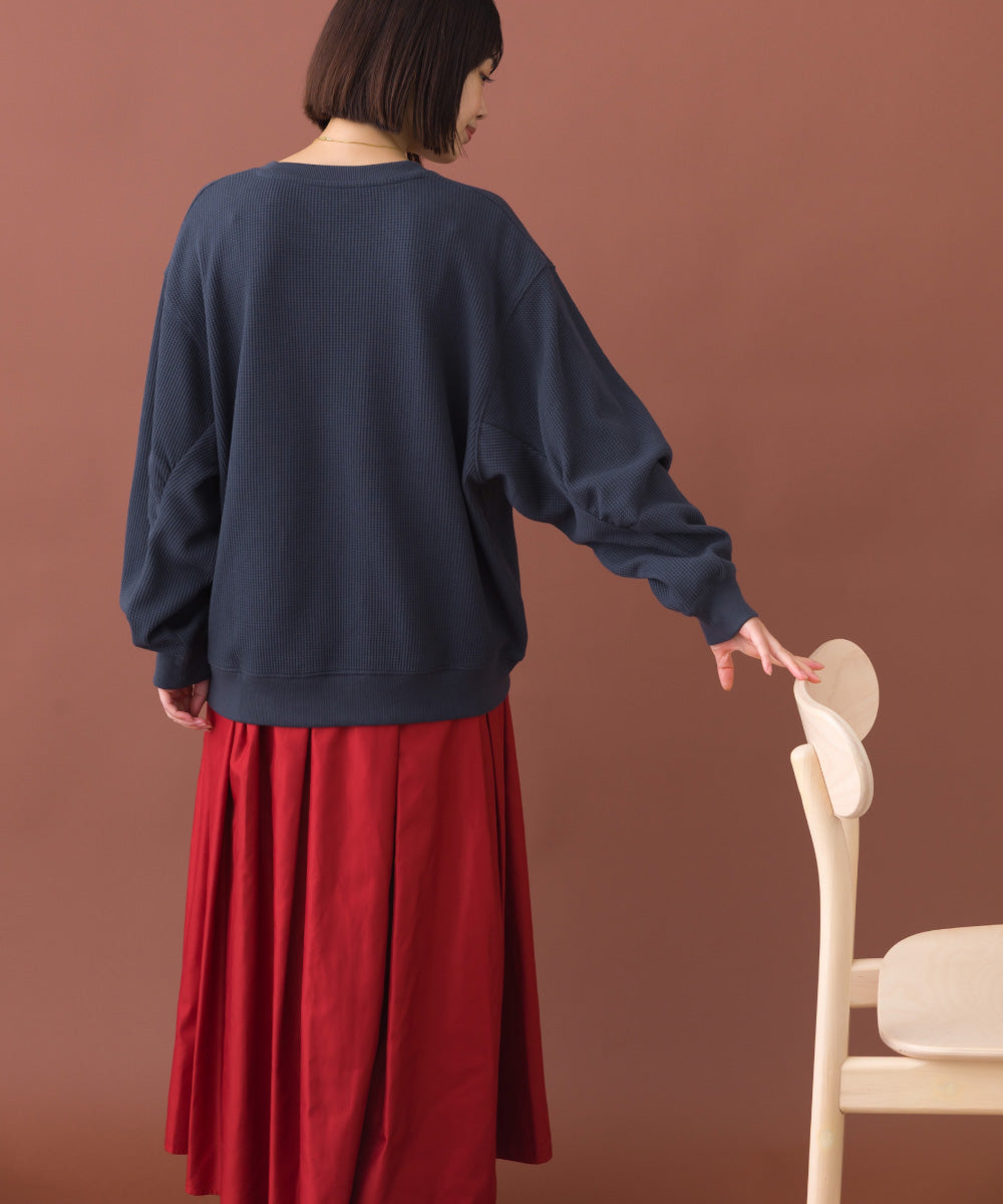 【OMNES】ワッフル袖ギャザー スウェット風長袖プルオーバー【253W430OMN113】