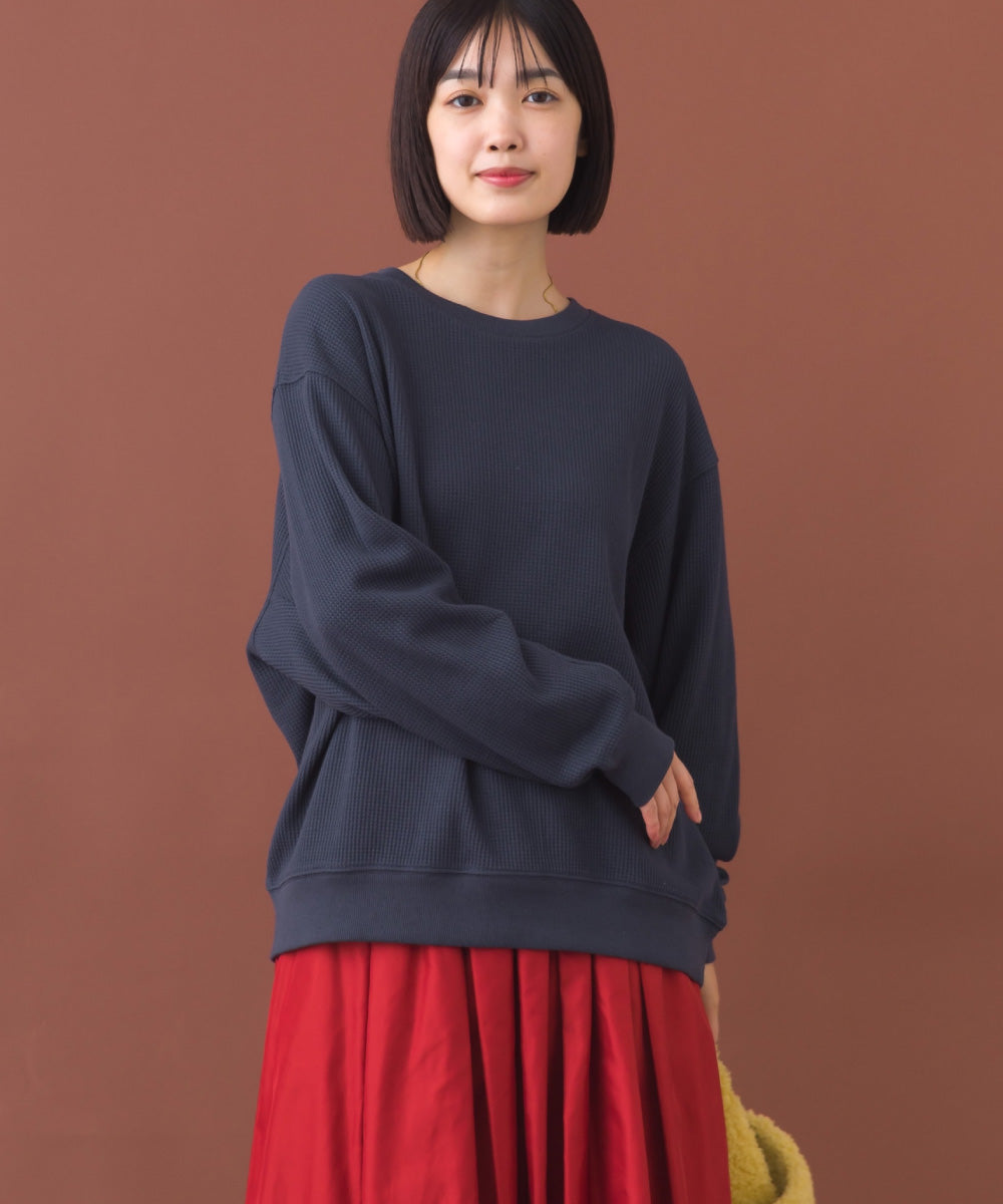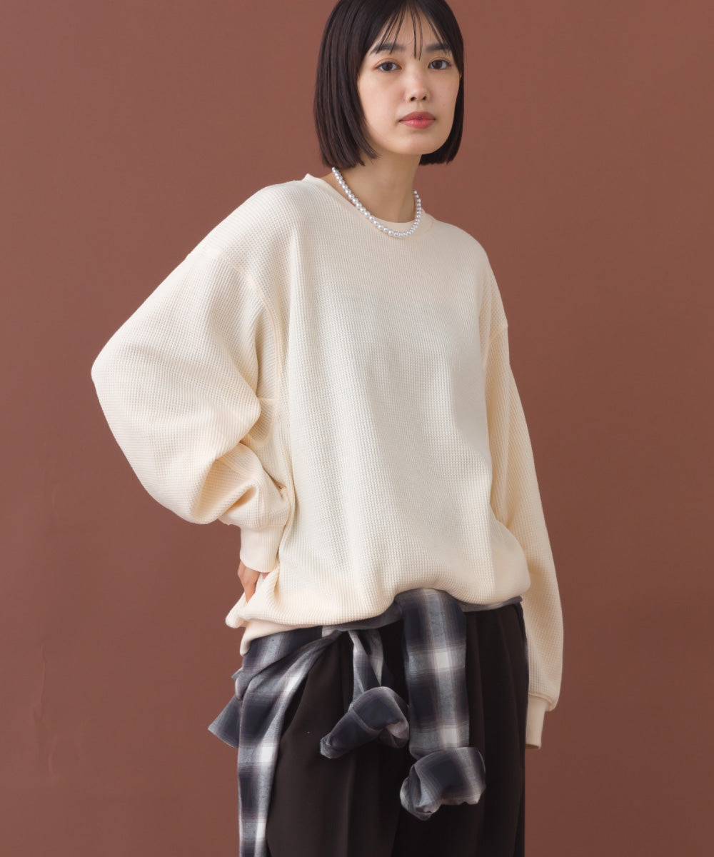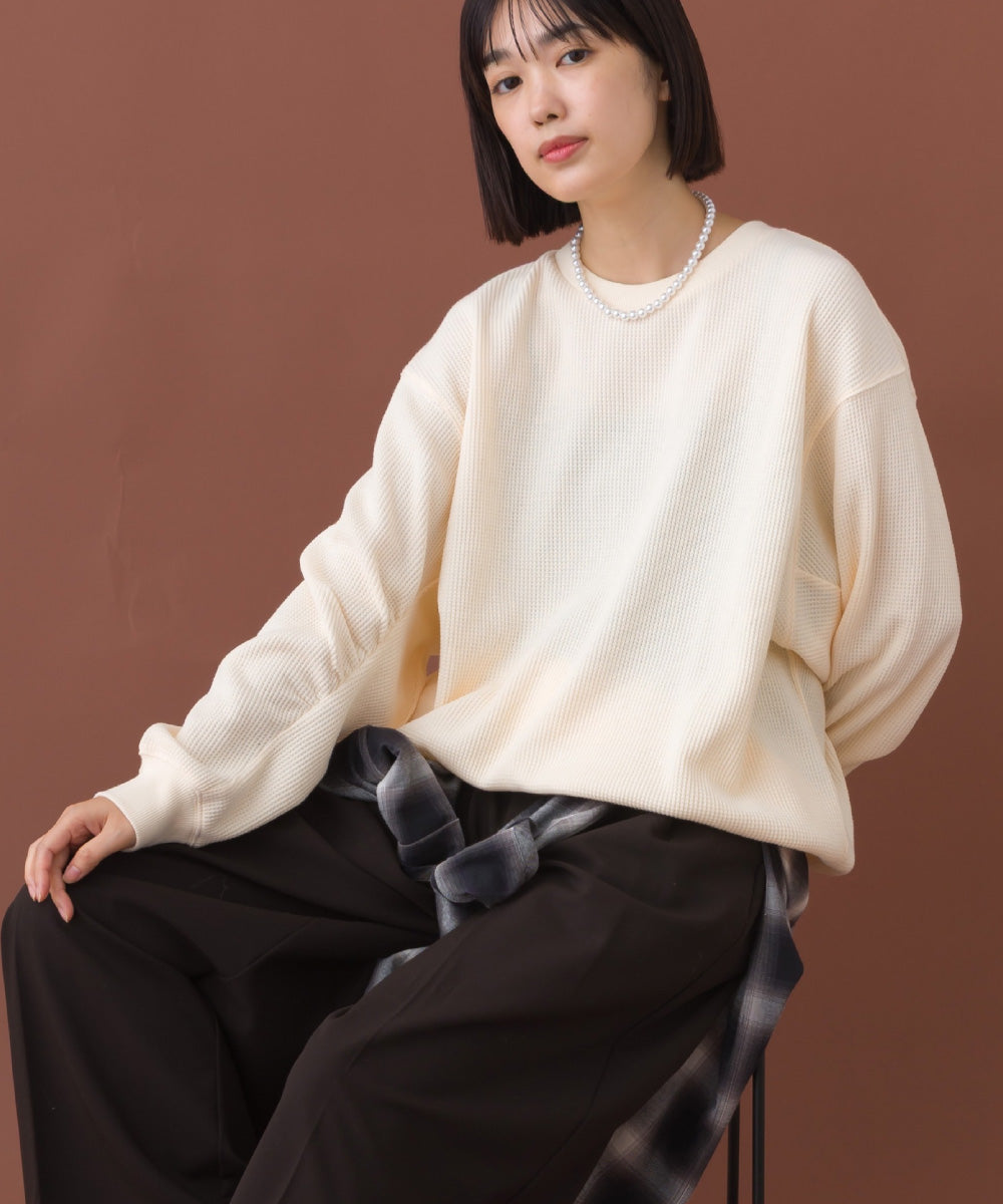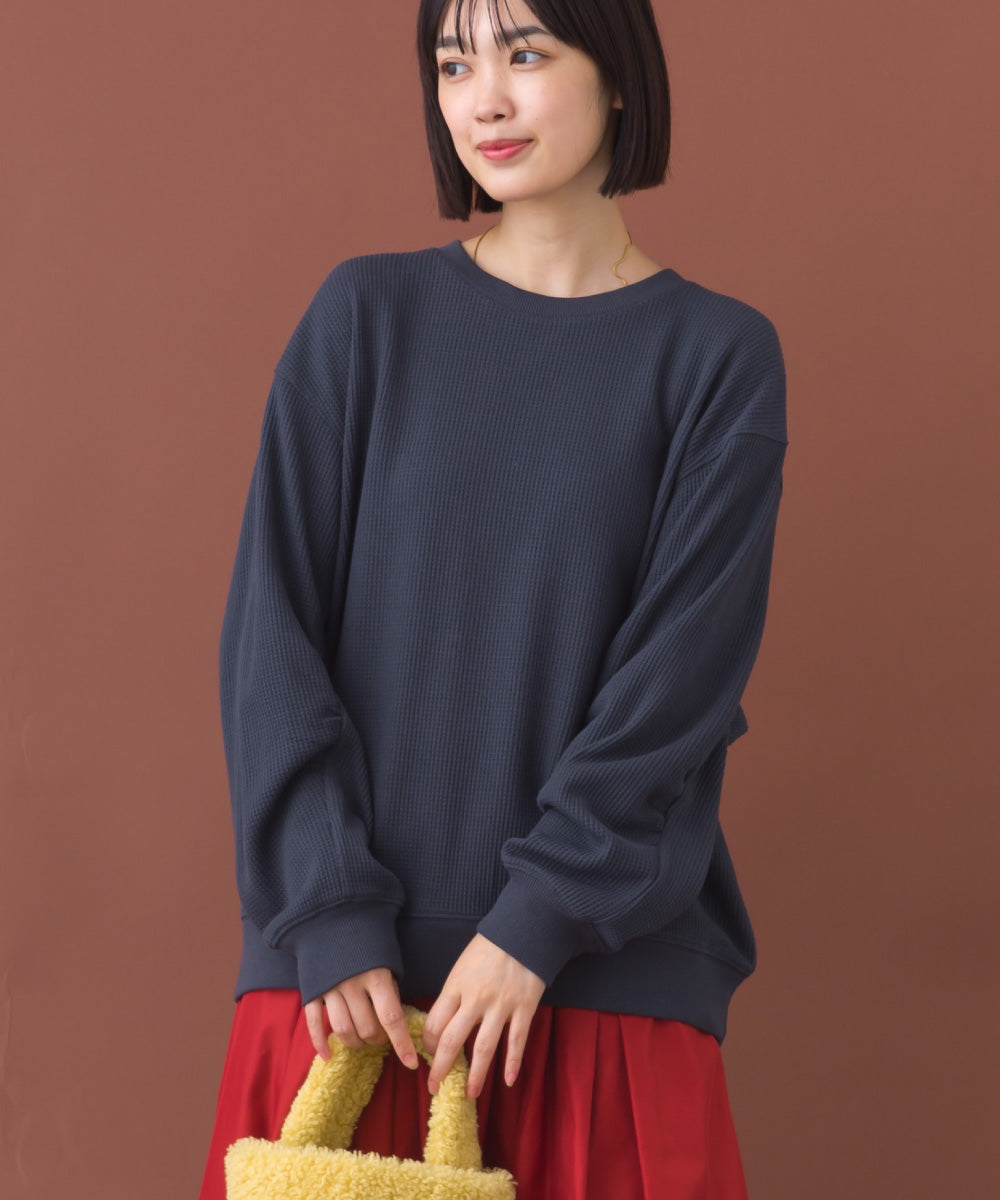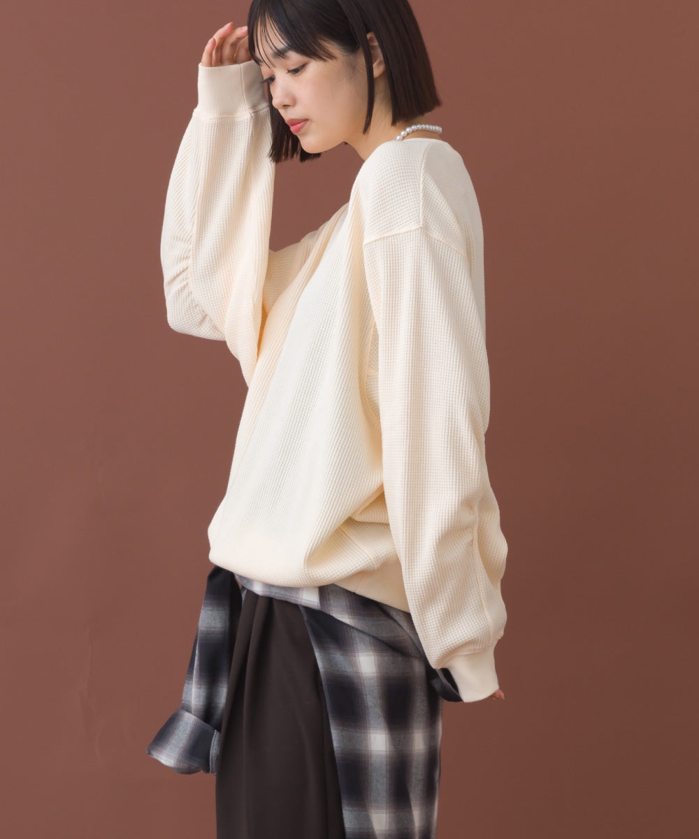 【OMNES】ワッフル袖ギャザー スウェット風長袖プルオーバー【253W430OMN113】