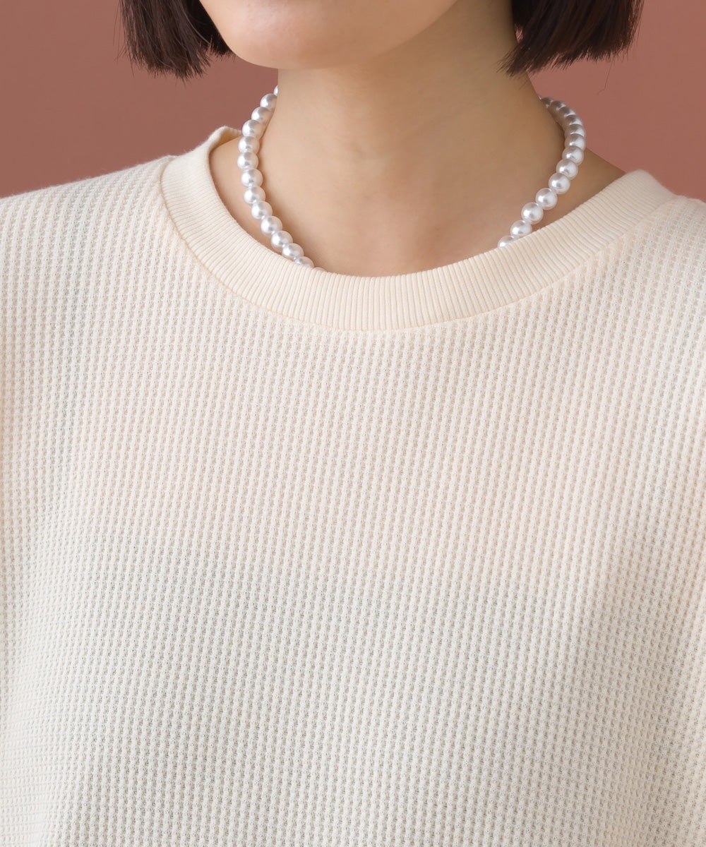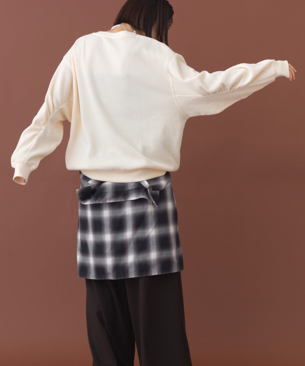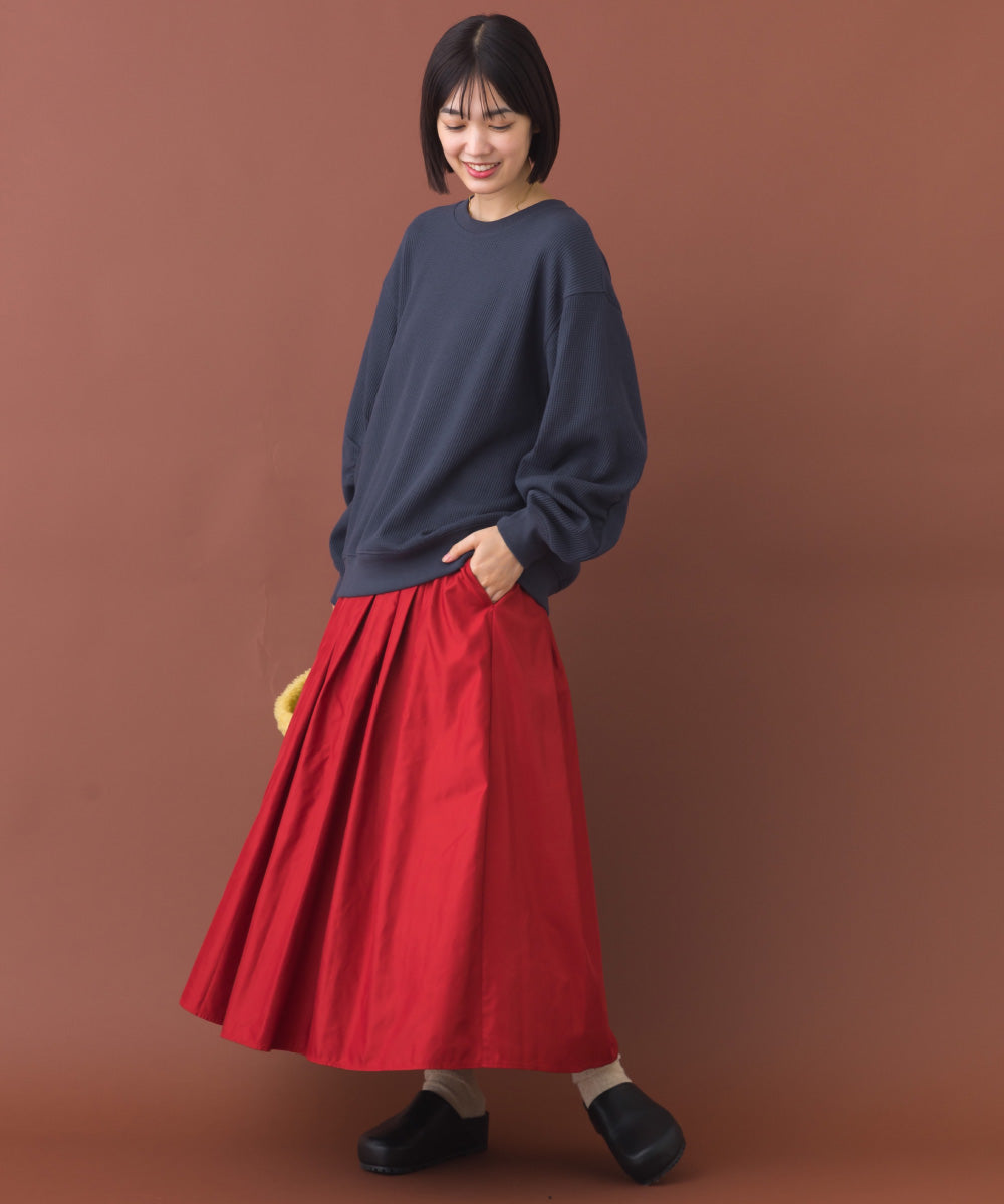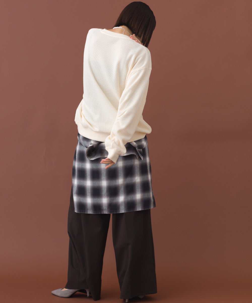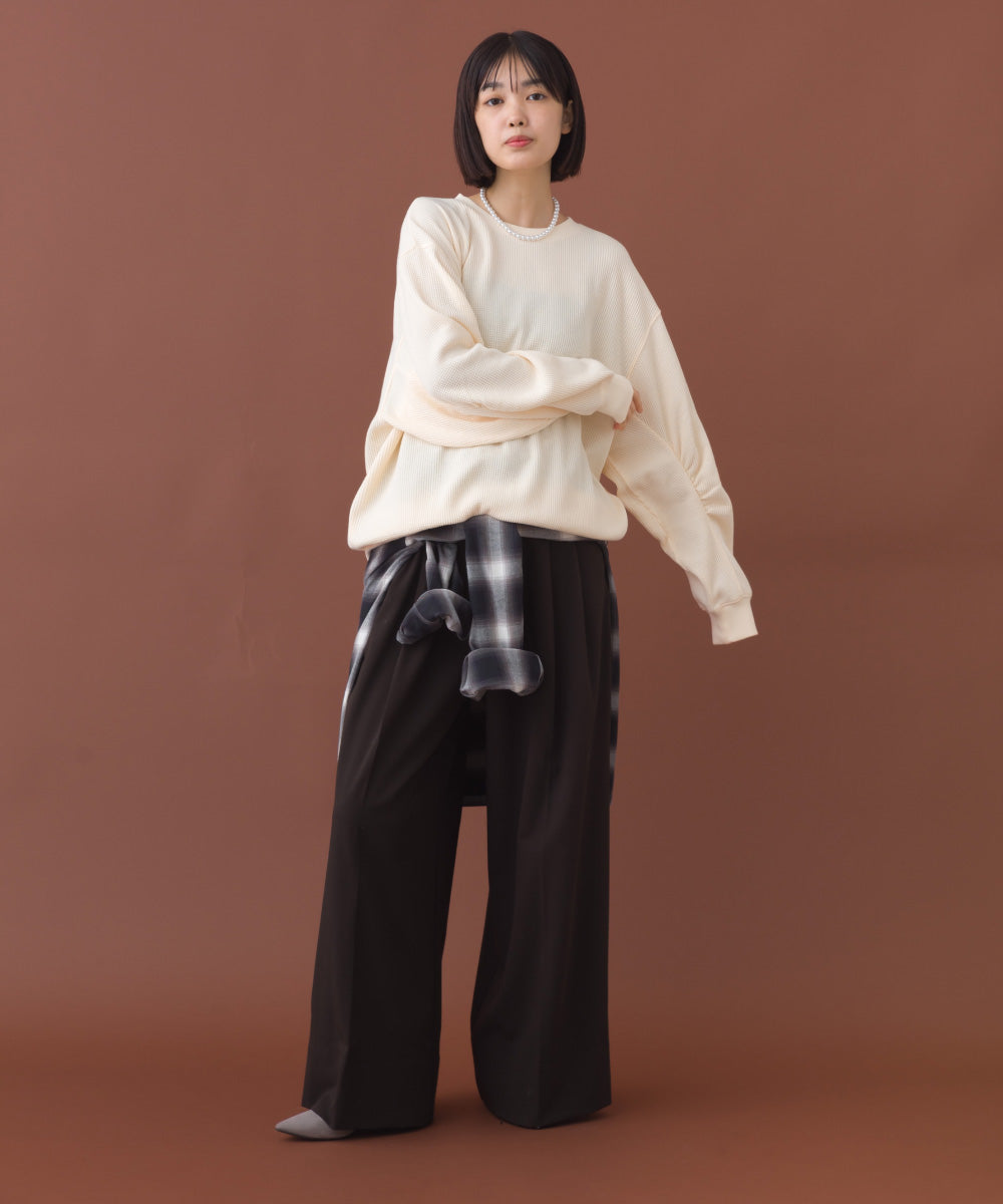 【OMNES】ワッフル袖ギャザー スウェット風長袖プルオーバー【253W430OMN113】