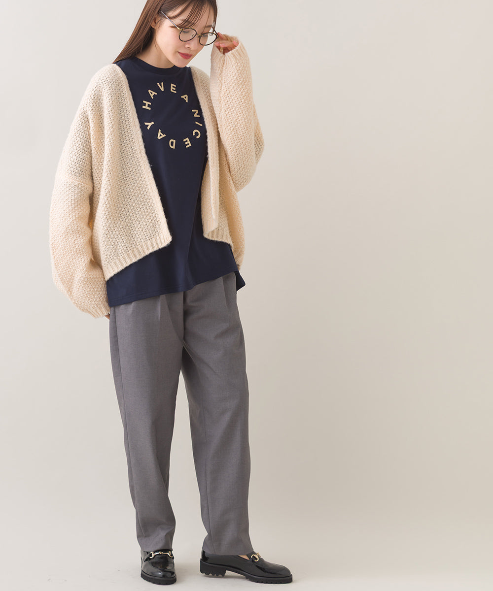 【コーディネート】 シャツやブラウスを合わせればオフィススタイルに、カットソーやニットと合わせればリラックスした大人カジュアルに。 ヒールやフラットシューズ、スニーカーなど足元次第で表情が変わるのも魅力です。