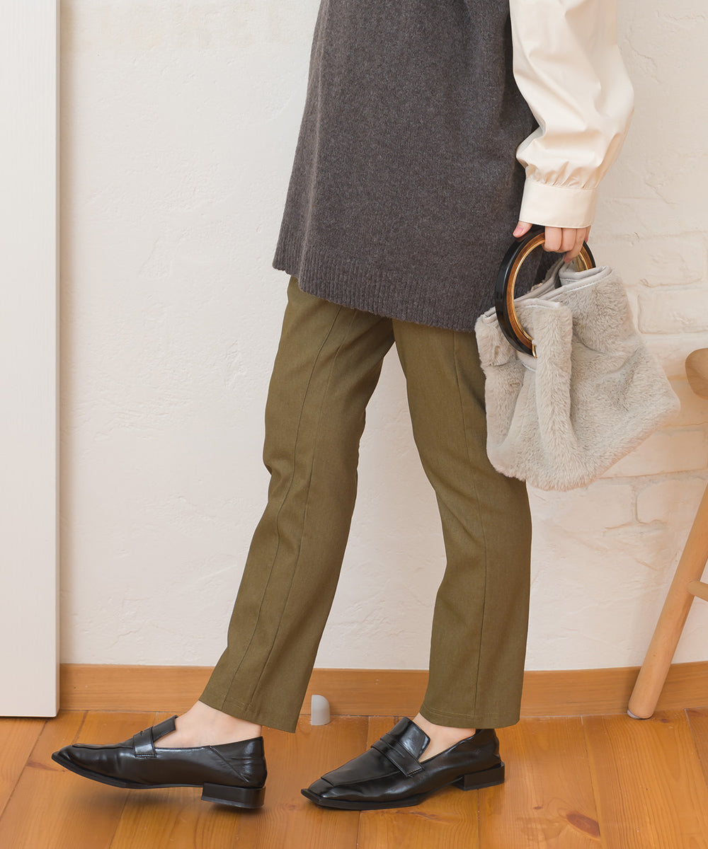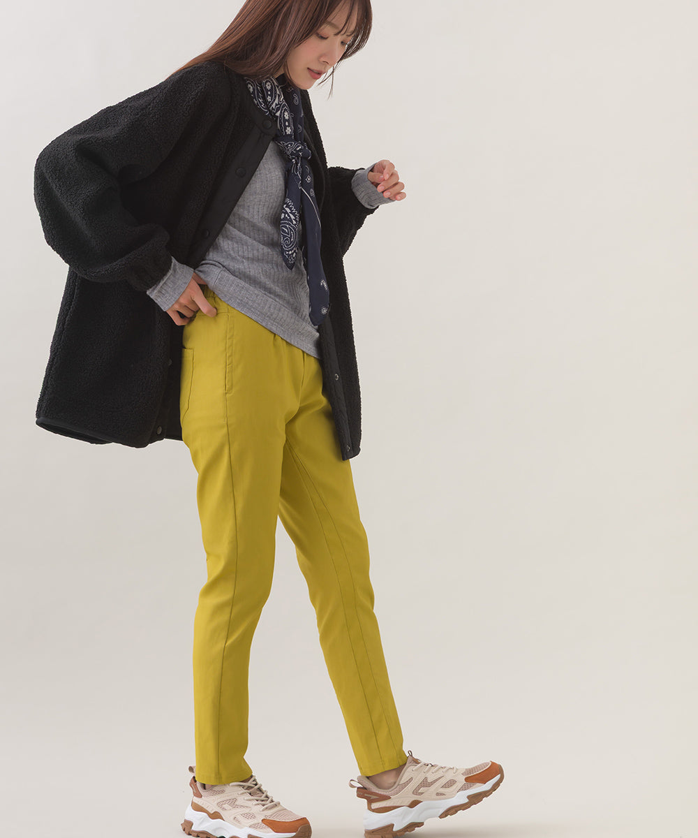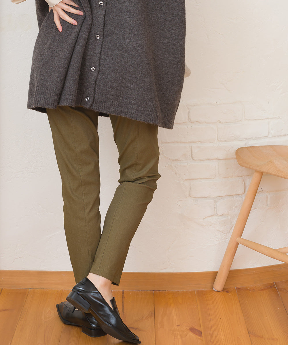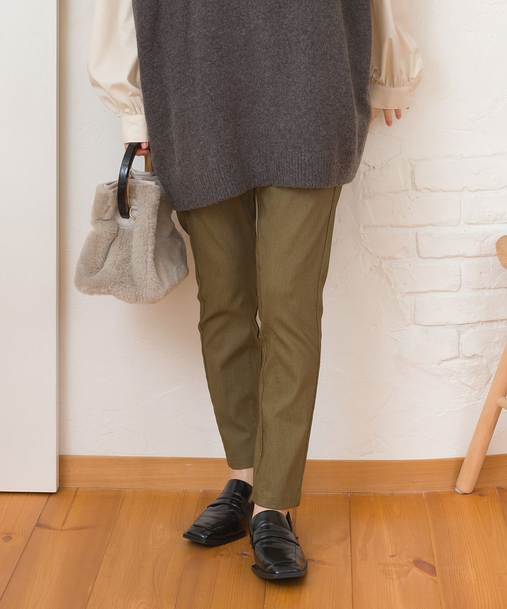【OMNES】美脚ストレッチ テーパードシルエットタックパンツ 裏起毛【253W432OMN089】