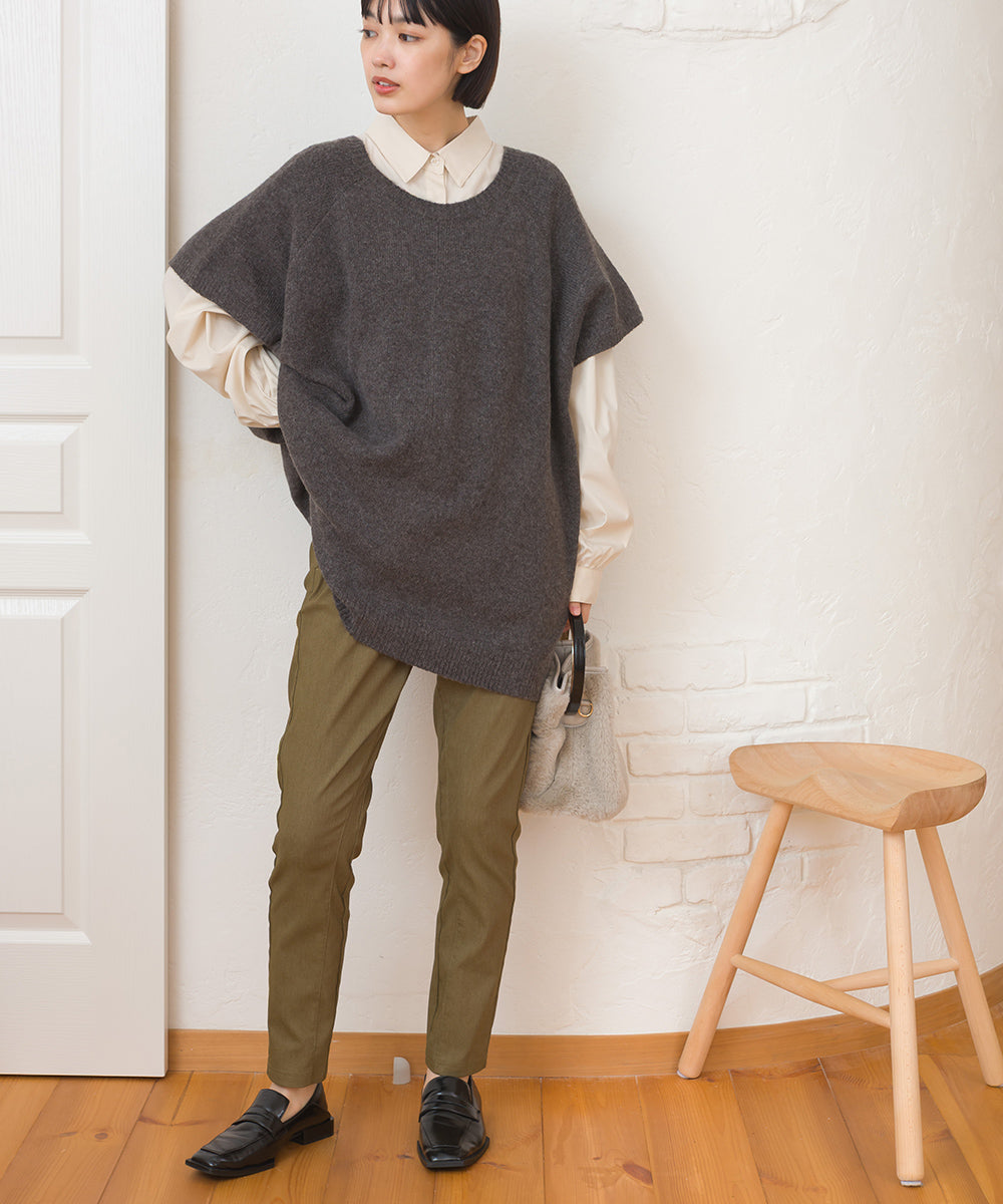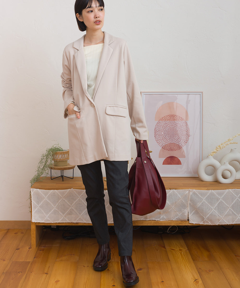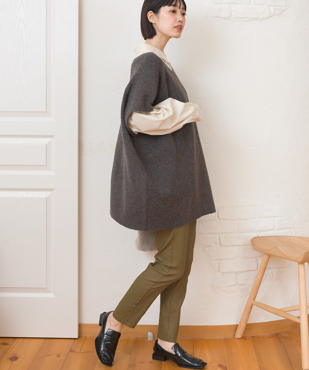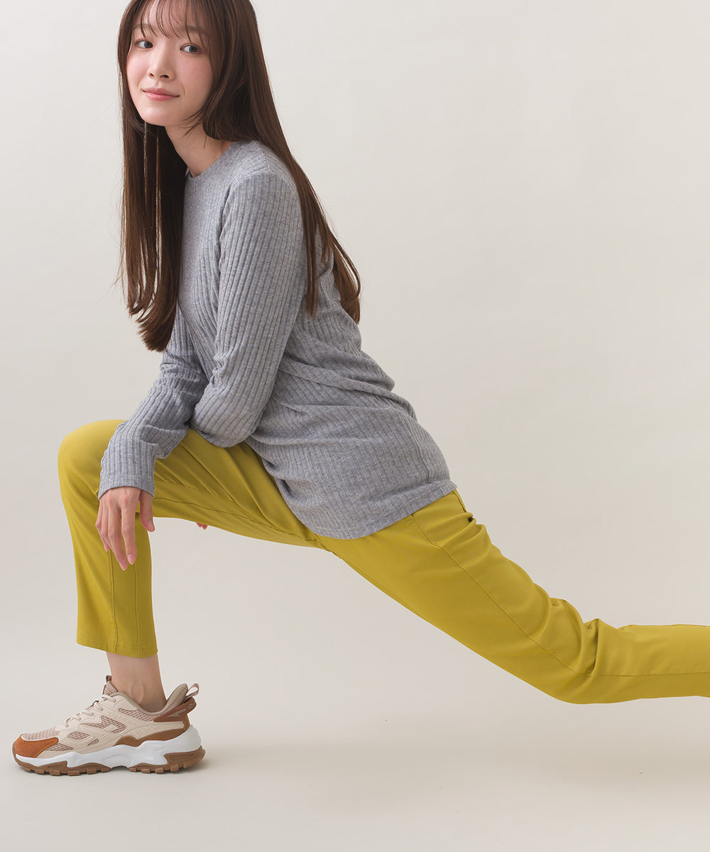 【OMNES】美脚ストレッチ テーパードシルエットタックパンツ 裏起毛【253W432OMN089】