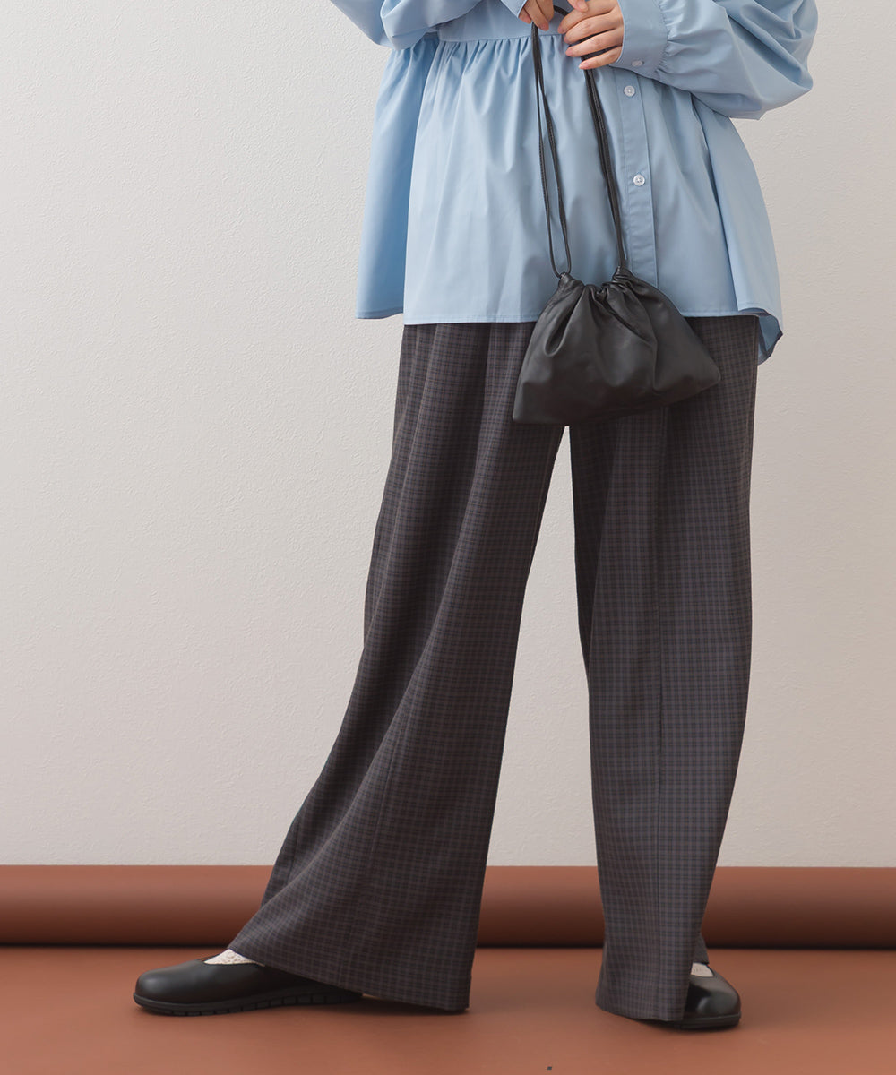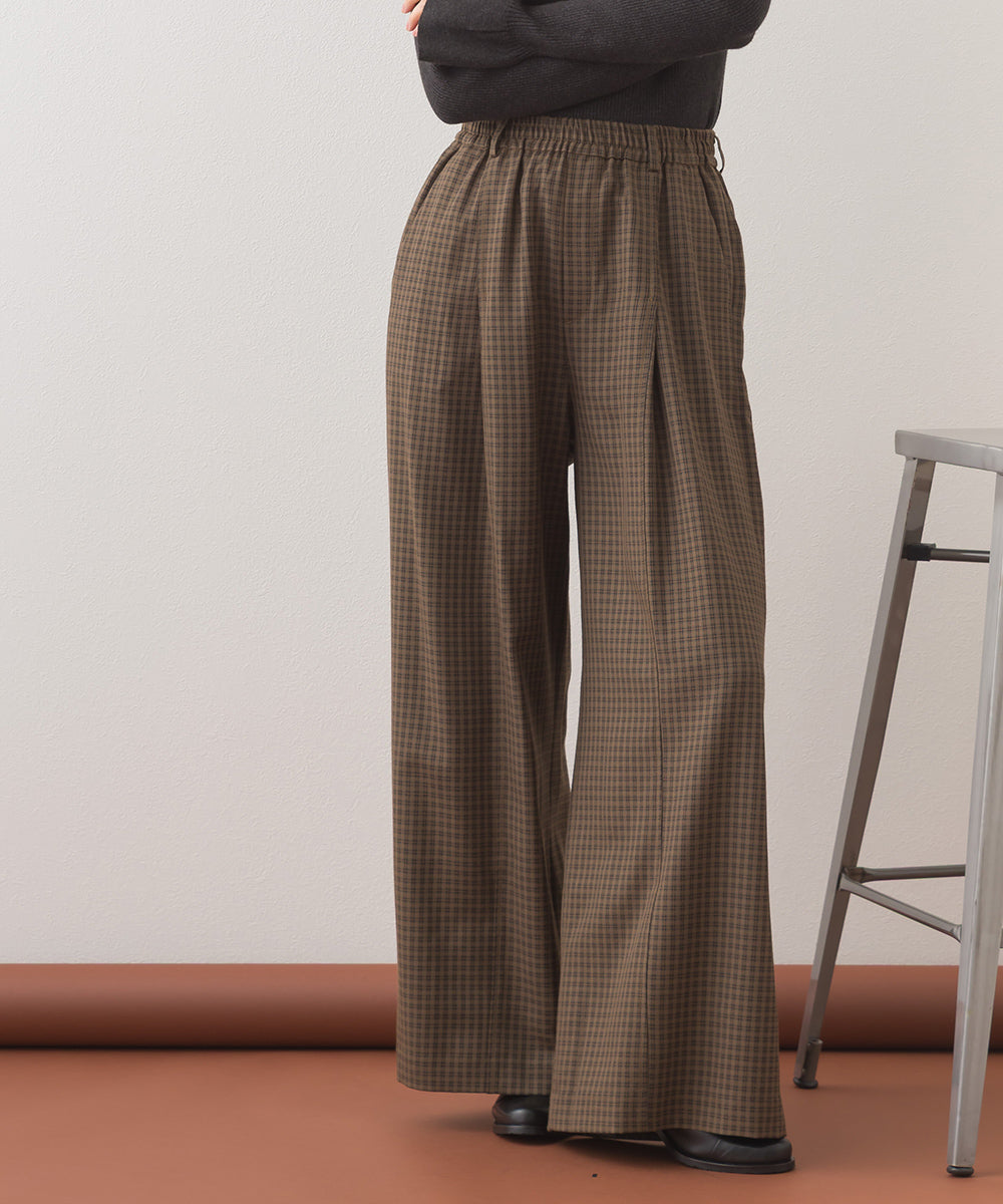 【OMNES】チェック柄センタープレスワイドイージーパンツ【253W432OMN116】