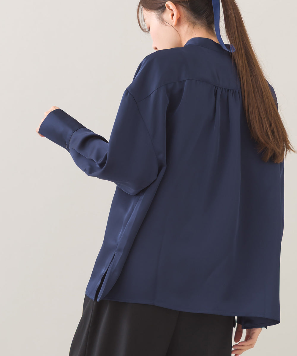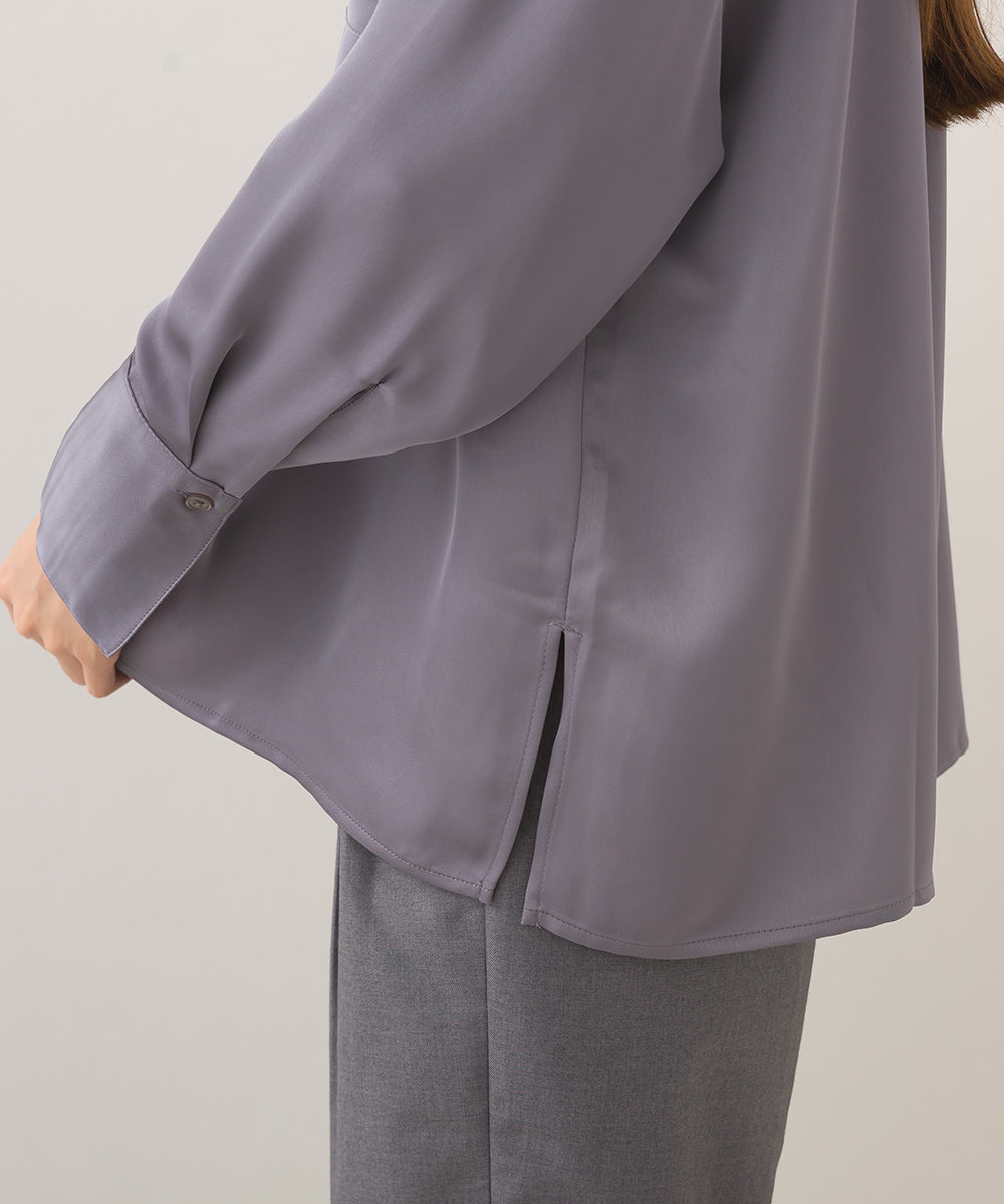 【コーディネート】 オーバーサイズシルエットなので、1枚でさらりと着るのはもちろん、ジャケットやカーディガンのインナーとしてもおすすめ。 スラックスと合せて、オフィスコーデにはピッタリの1枚です。