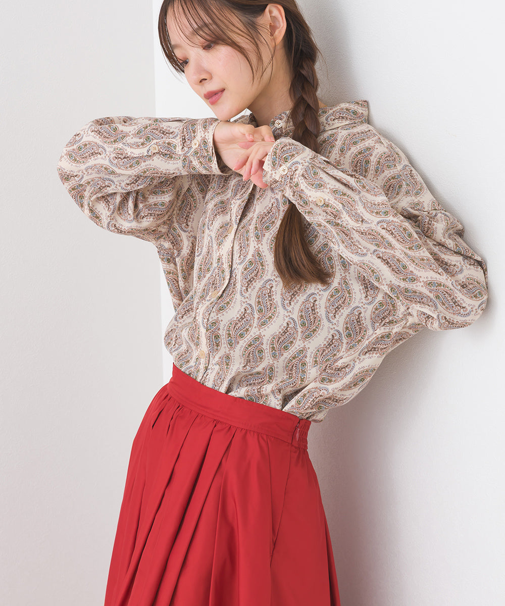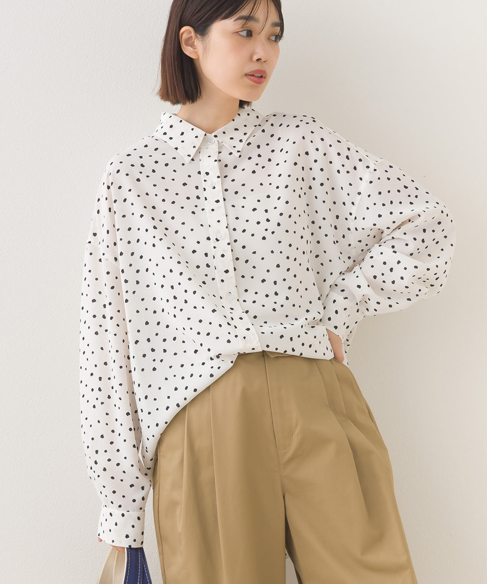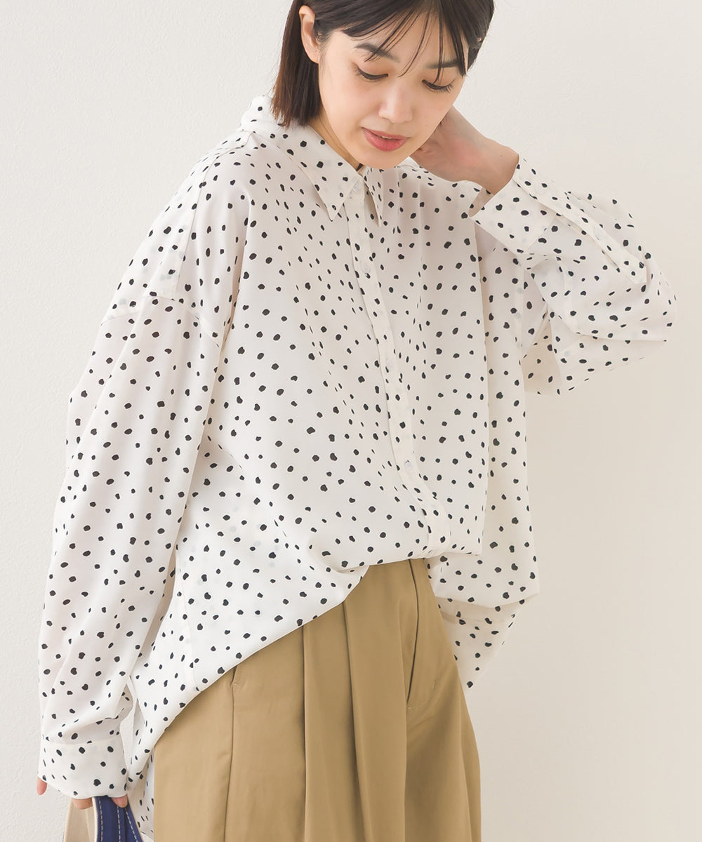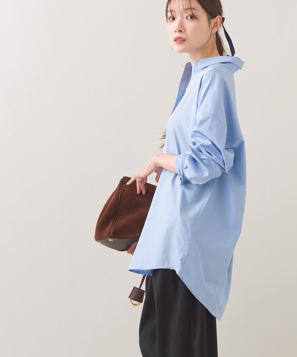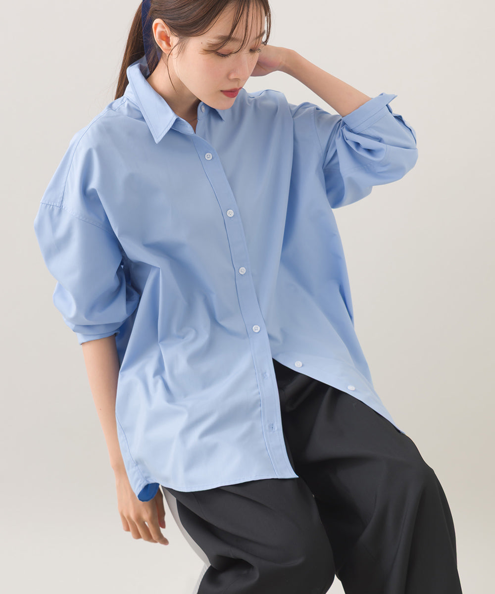 【OMNES】ブロードオーバーサイズレギュラーカラー 長袖シャツブラウス【253W435OMN102】
