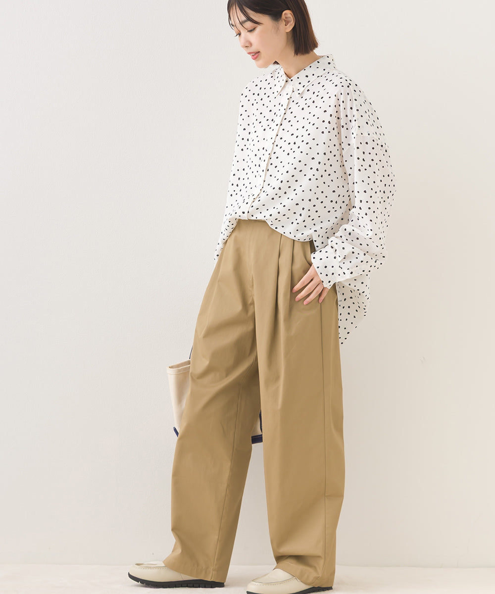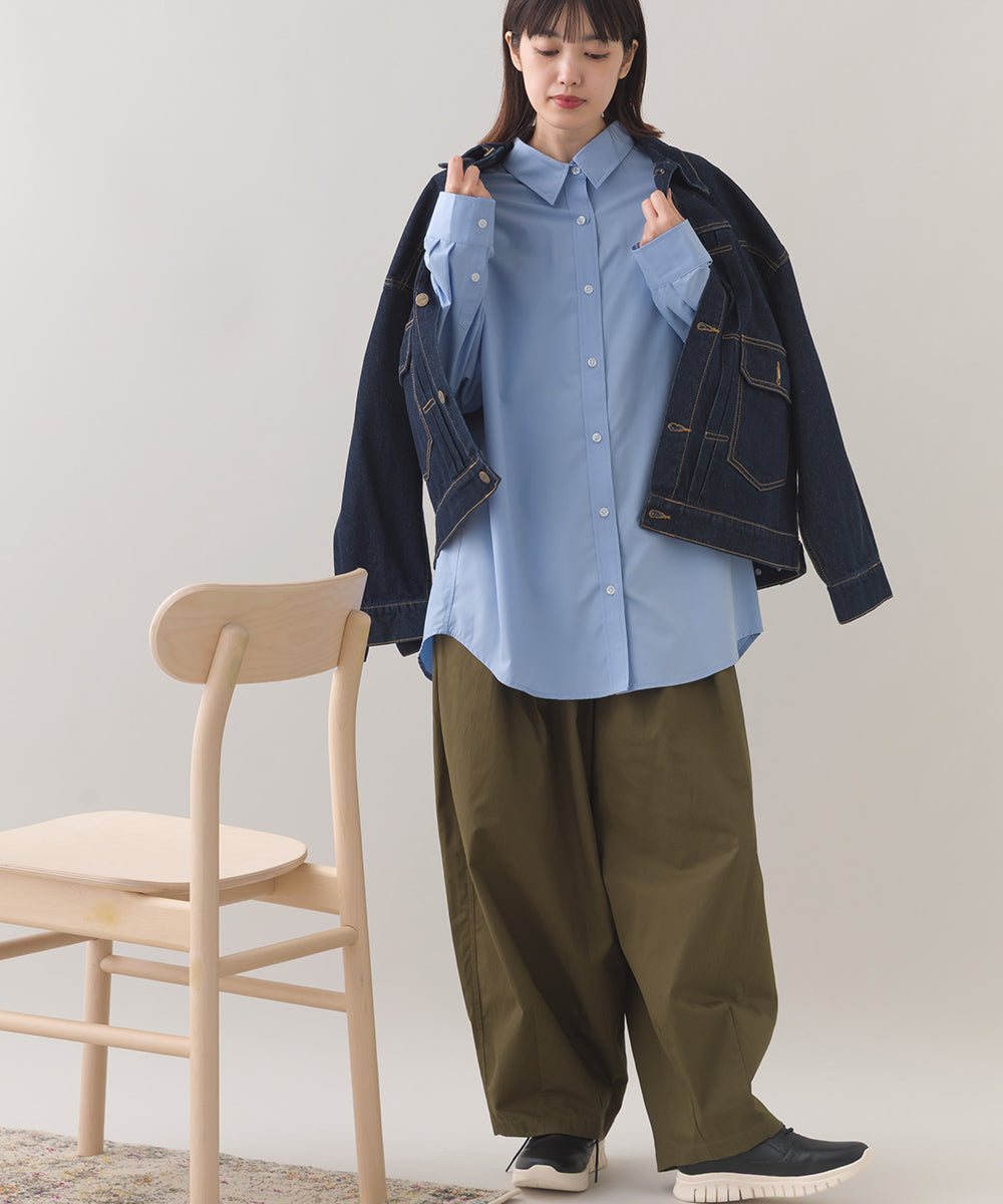 【コーディネート】 タックインすればきれいめに、アウトで着ればラフな雰囲気に仕上がります。 ボタンを開けてインナーを見せたり、ニットとのレイヤードも楽しめる一着。
