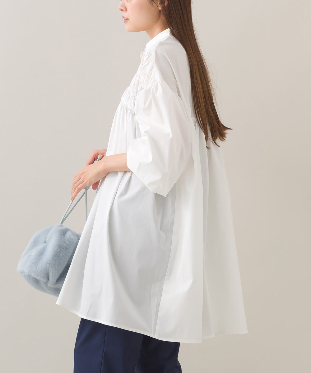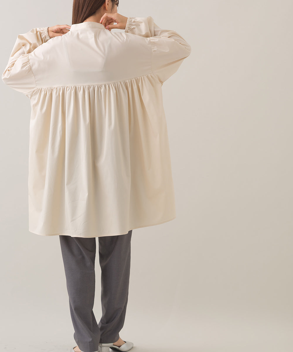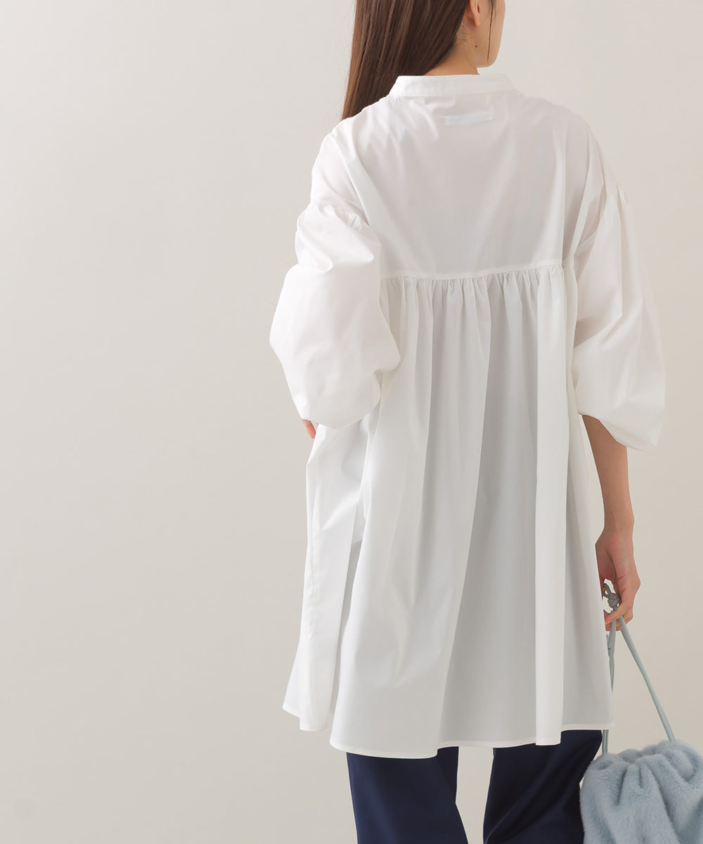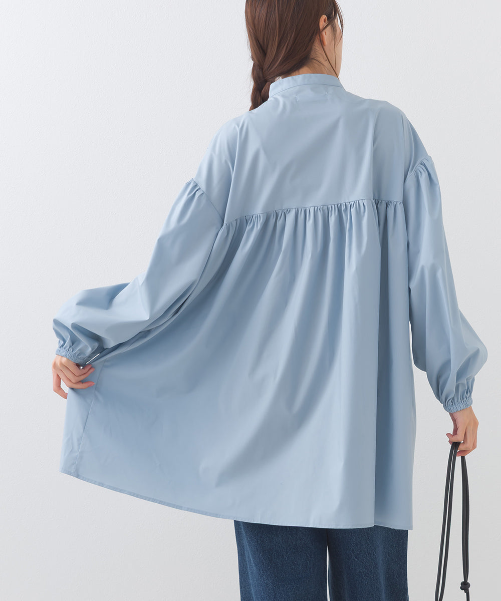 【OMNES】ポプリンフロントシャーリング プルオーバー チュニック 長袖シャツブラウス【253W435OMN104】