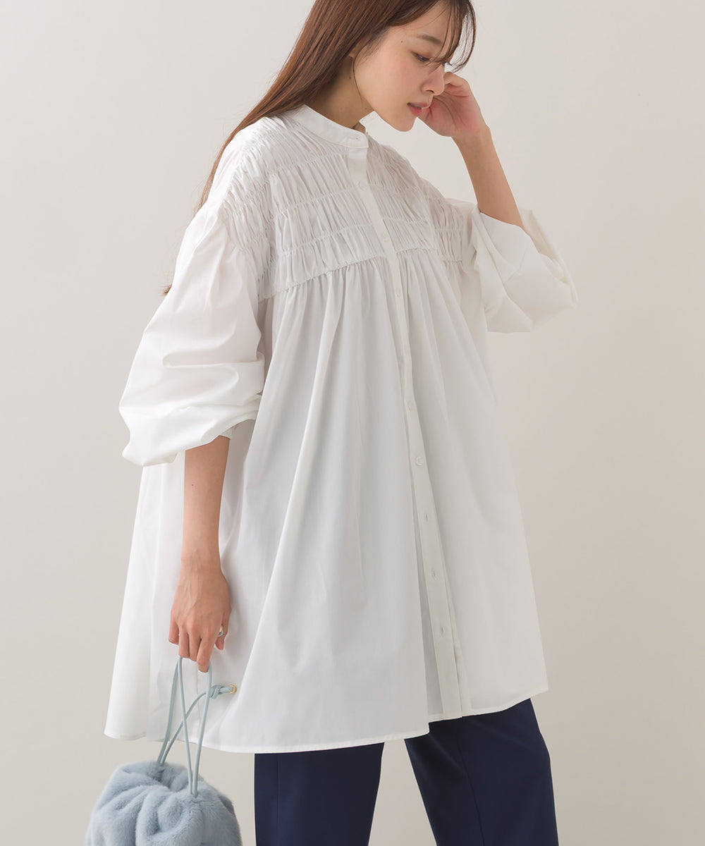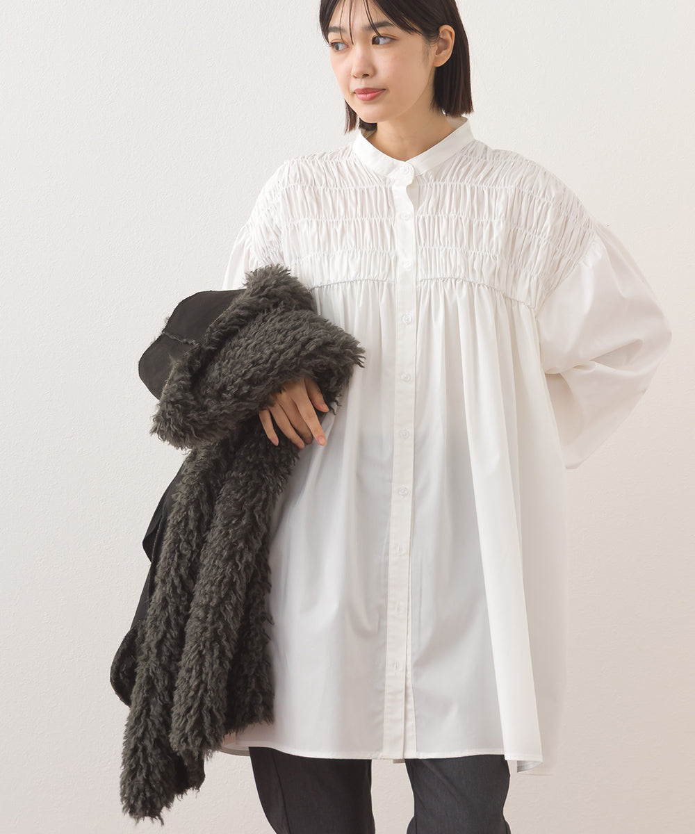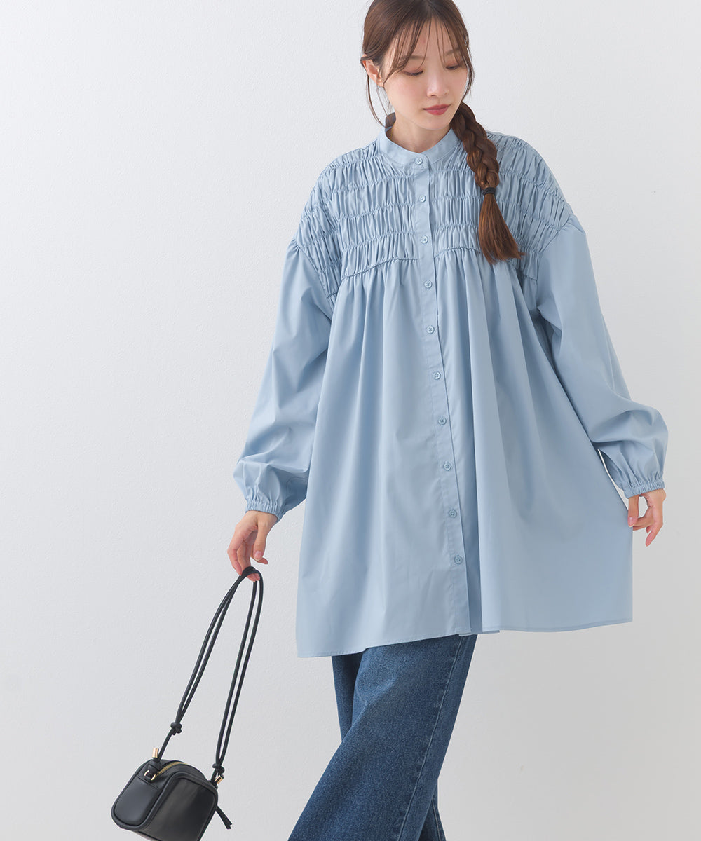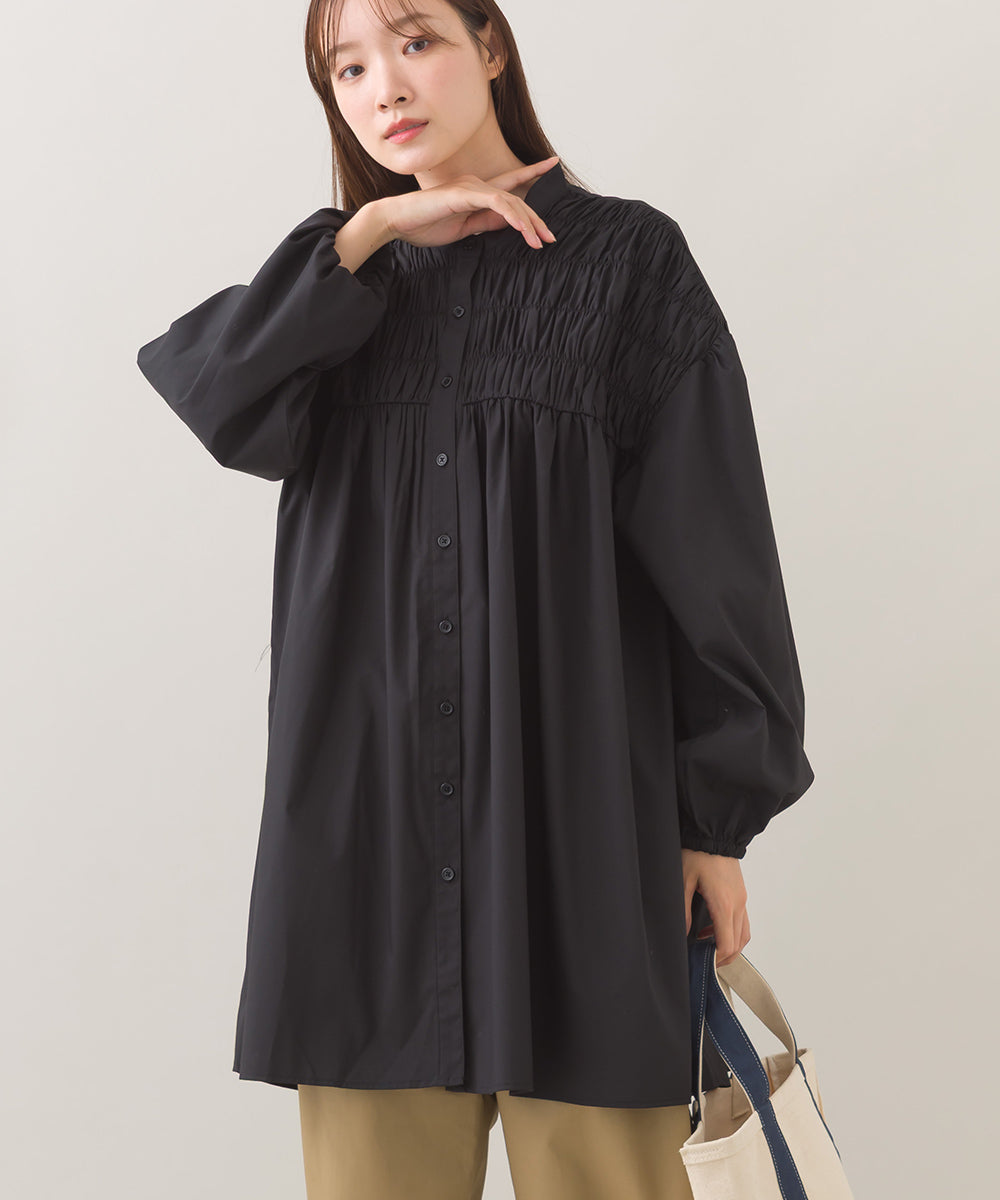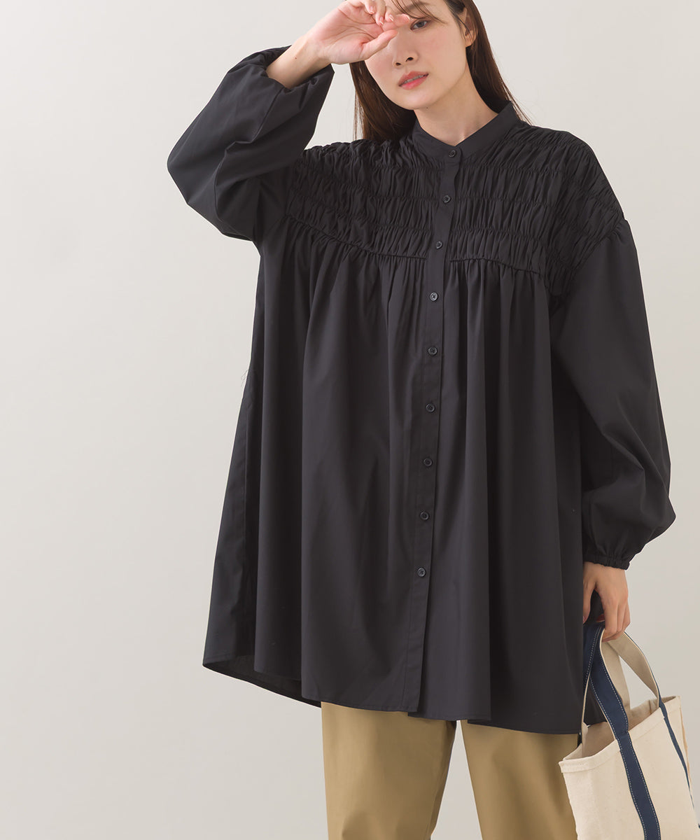 【OMNES】ポプリンフロントシャーリング プルオーバー チュニック 長袖シャツブラウス【253W435OMN104】