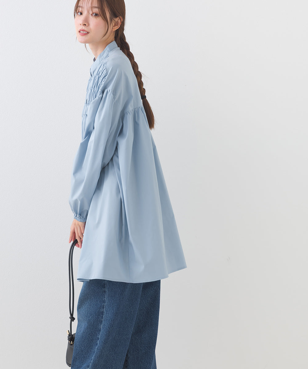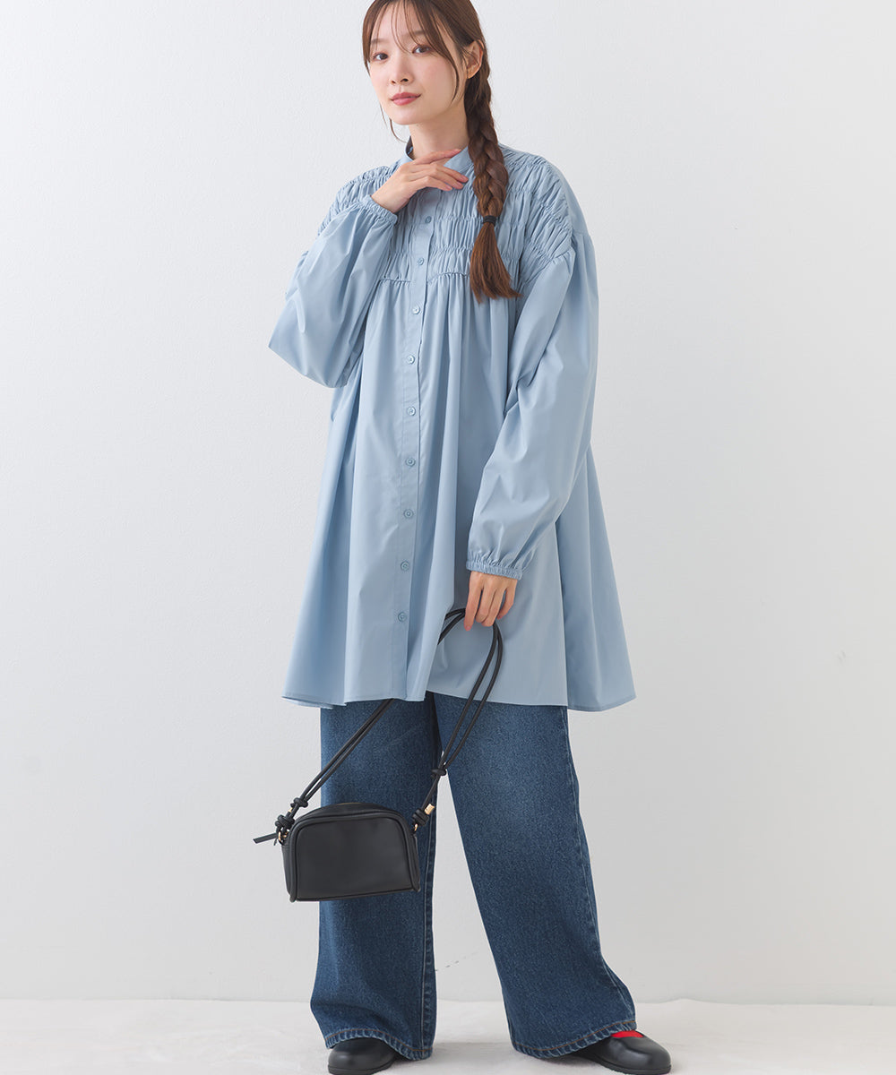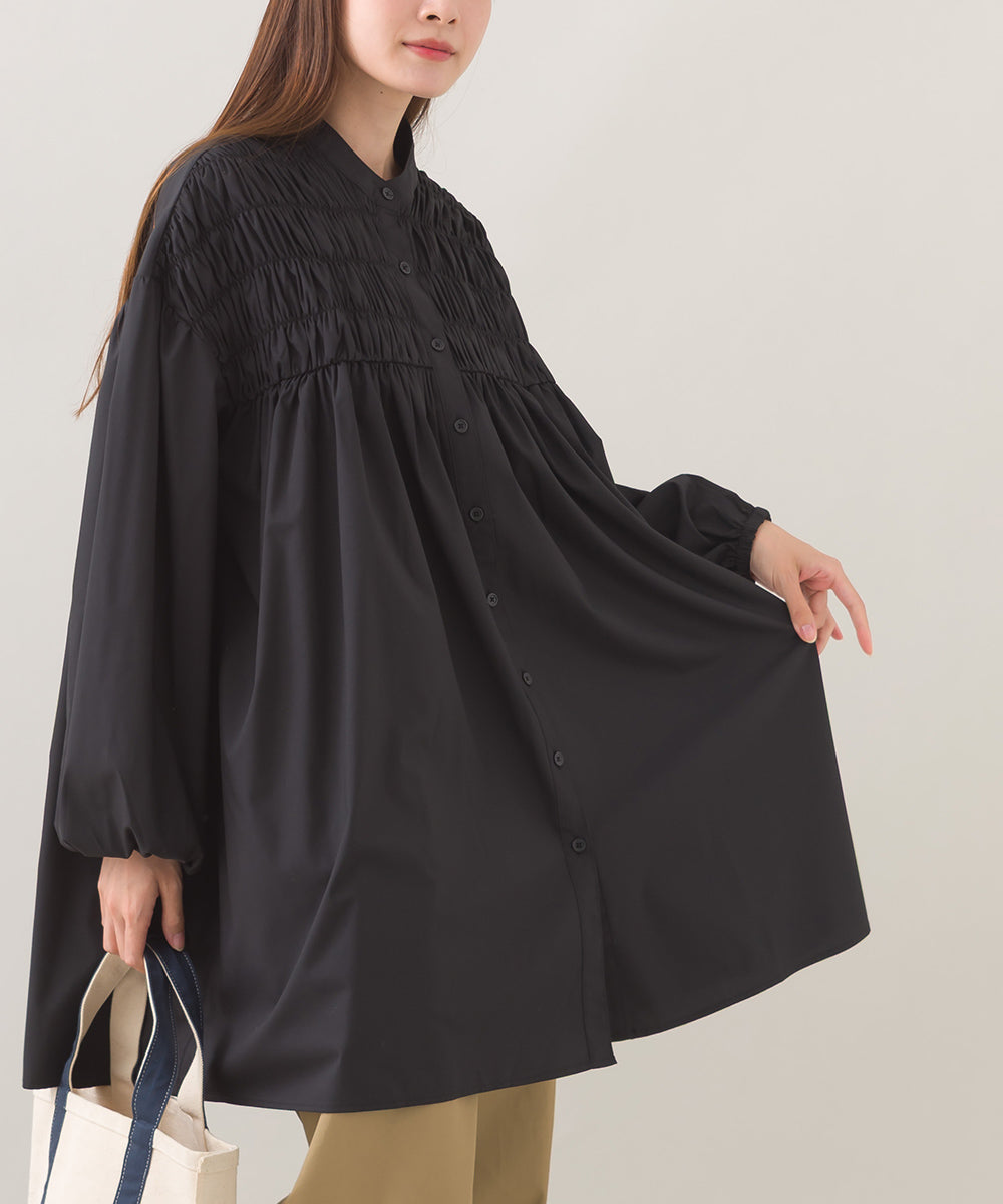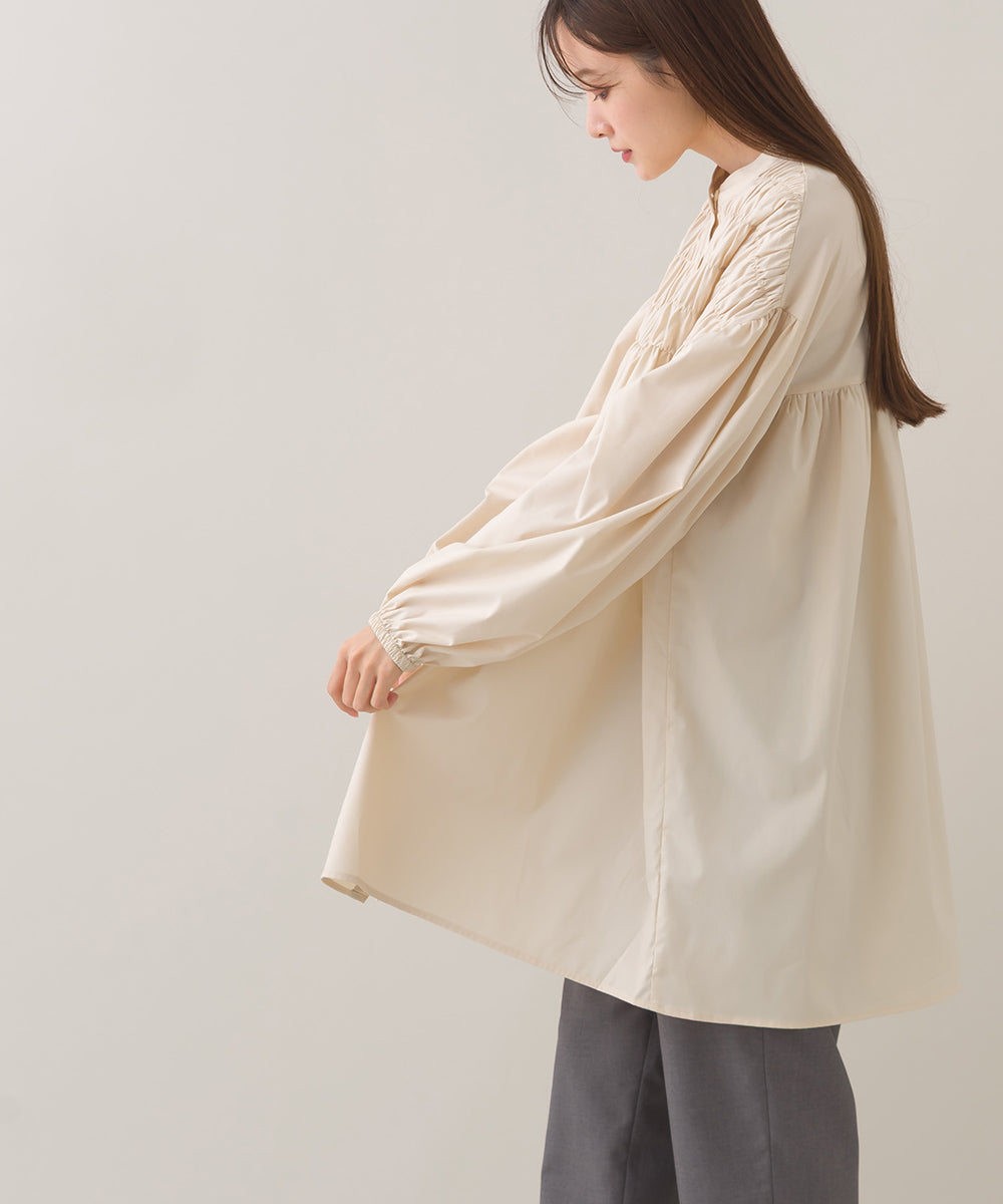 【OMNES】ポプリンフロントシャーリング プルオーバー チュニック 長袖シャツブラウス【253W435OMN104】