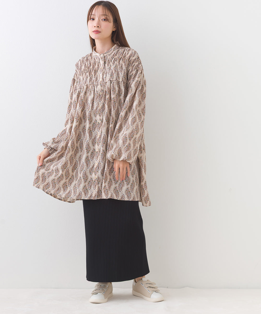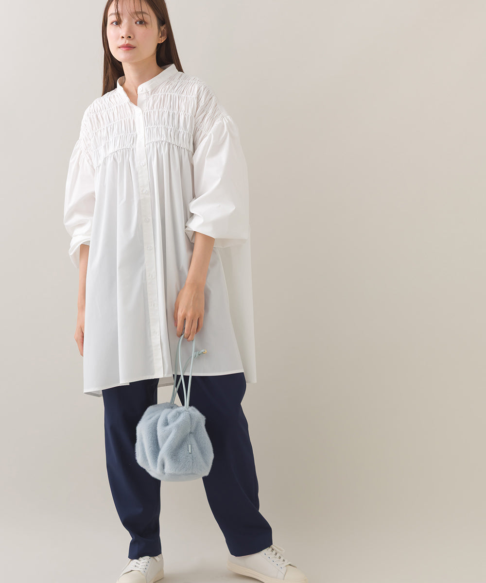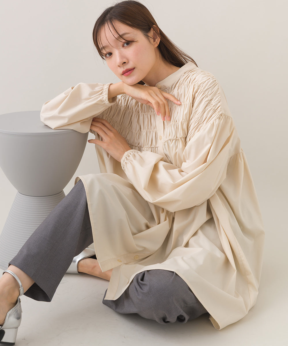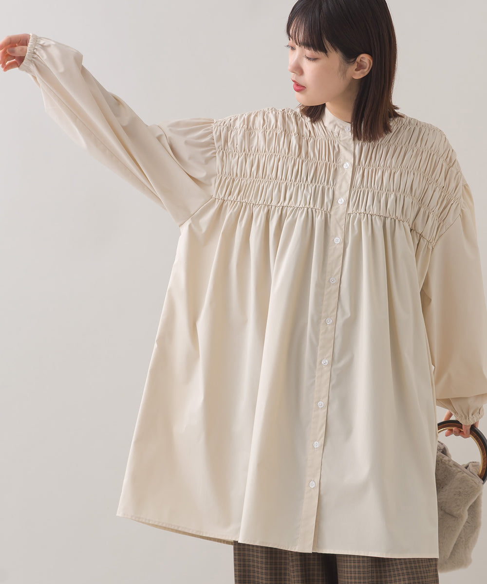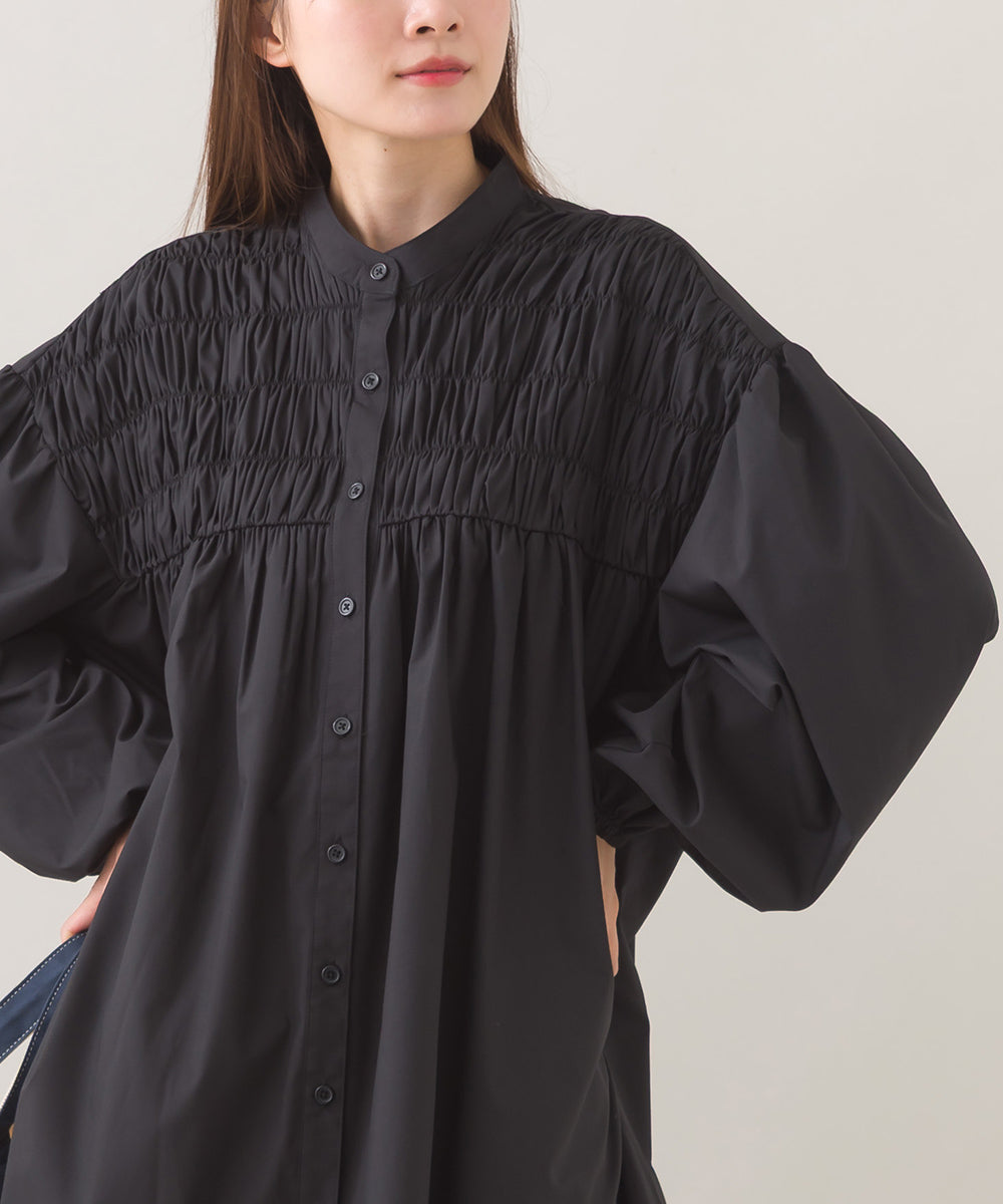 【OMNES】ポプリンフロントシャーリング プルオーバー チュニック 長袖シャツブラウス【253W435OMN104】