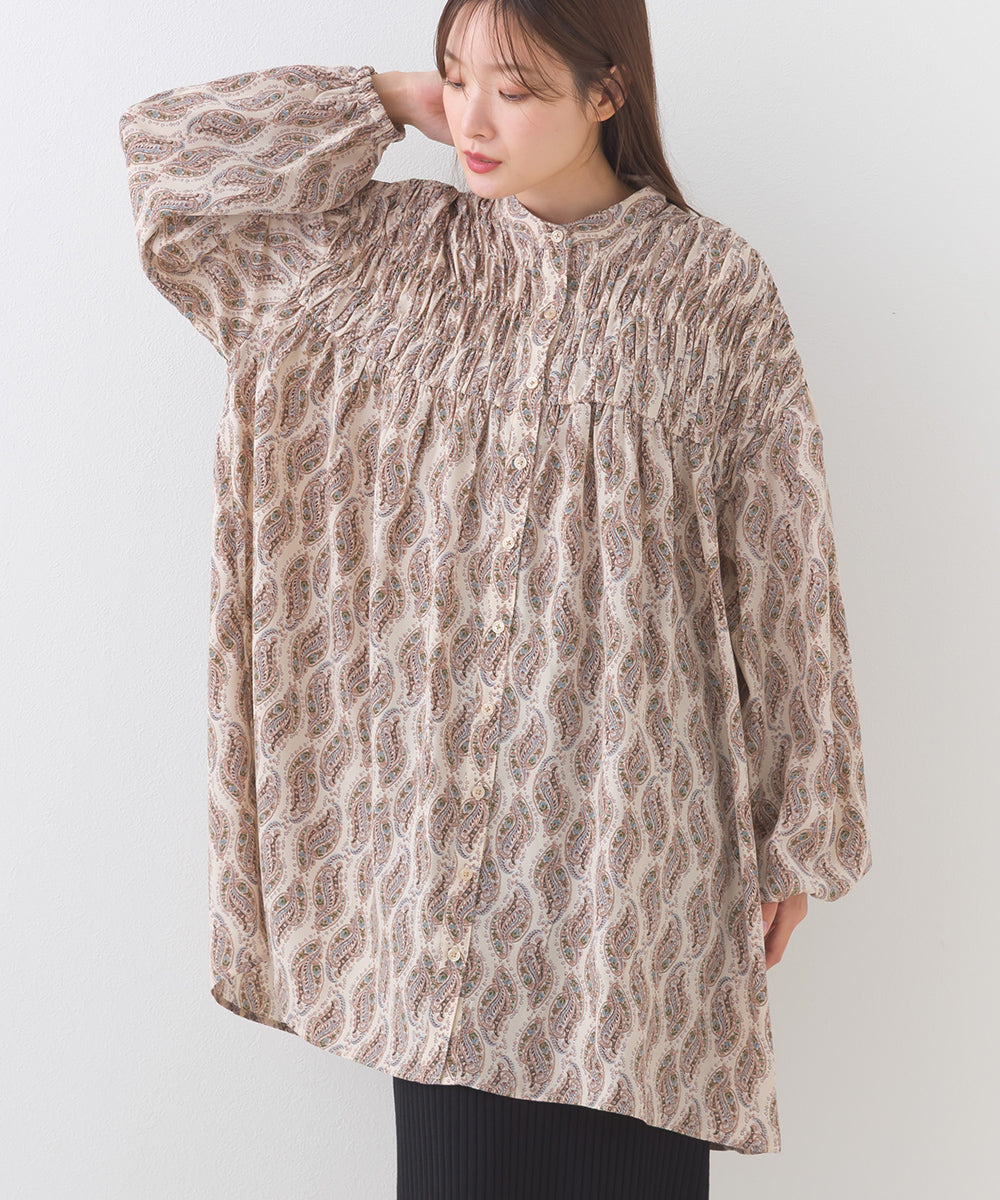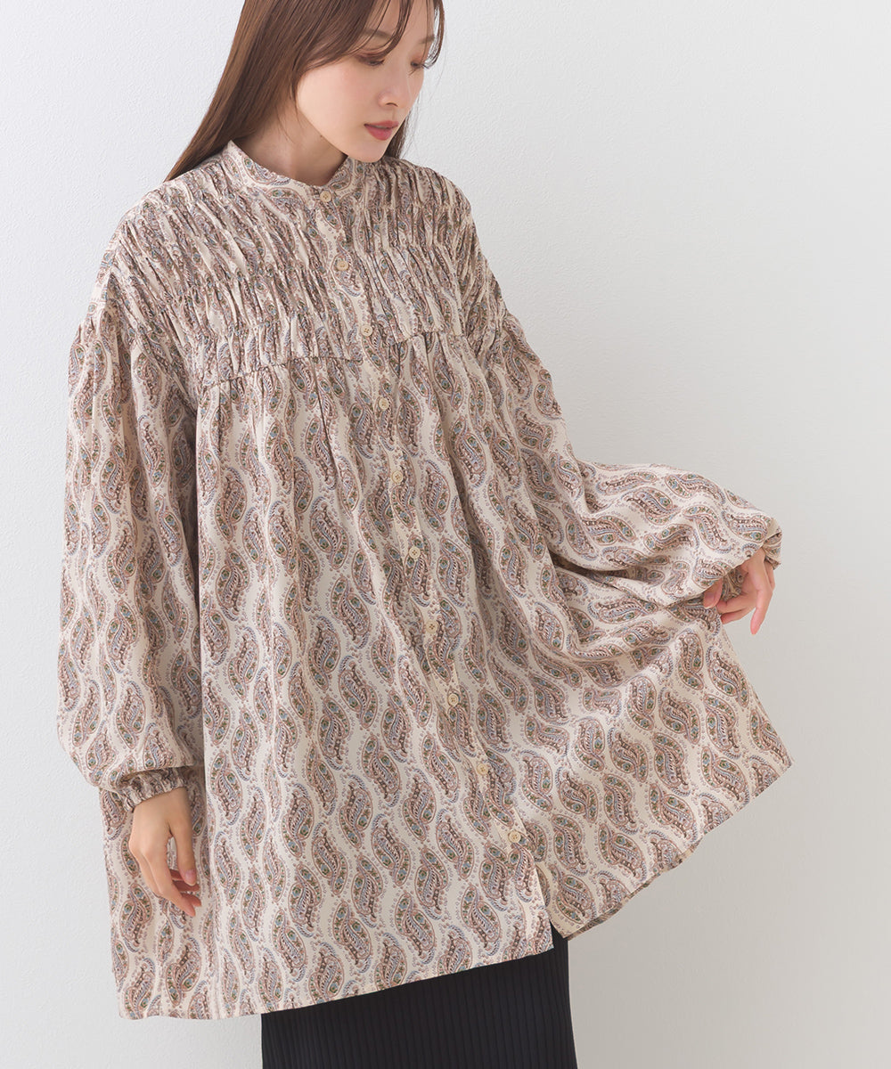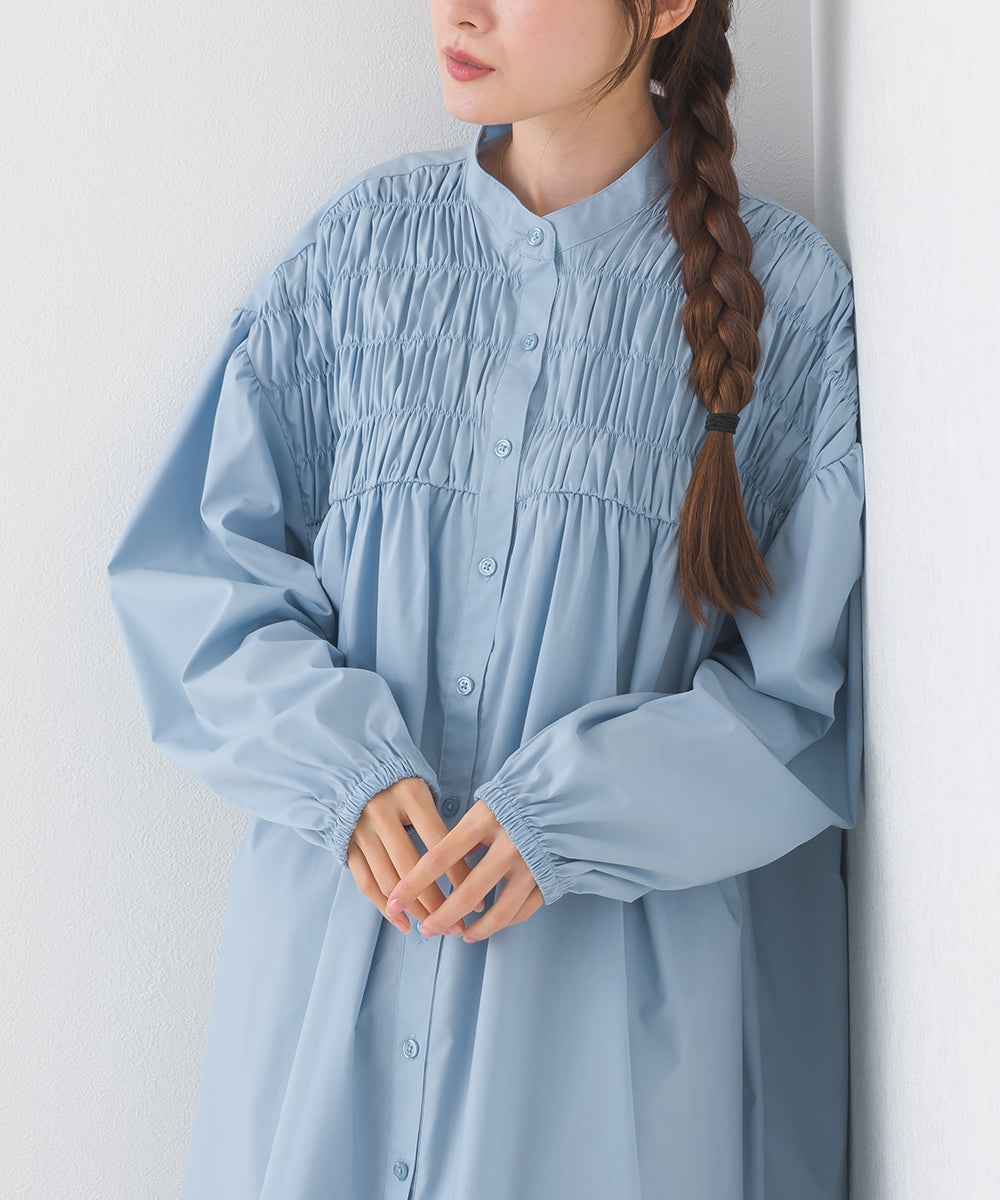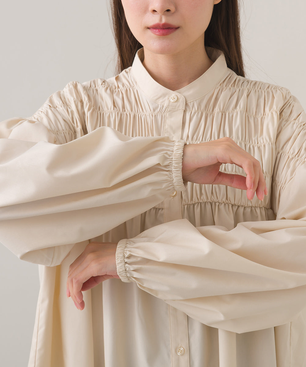 【OMNES】ポプリンフロントシャーリング プルオーバー チュニック 長袖シャツブラウス【253W435OMN104】
