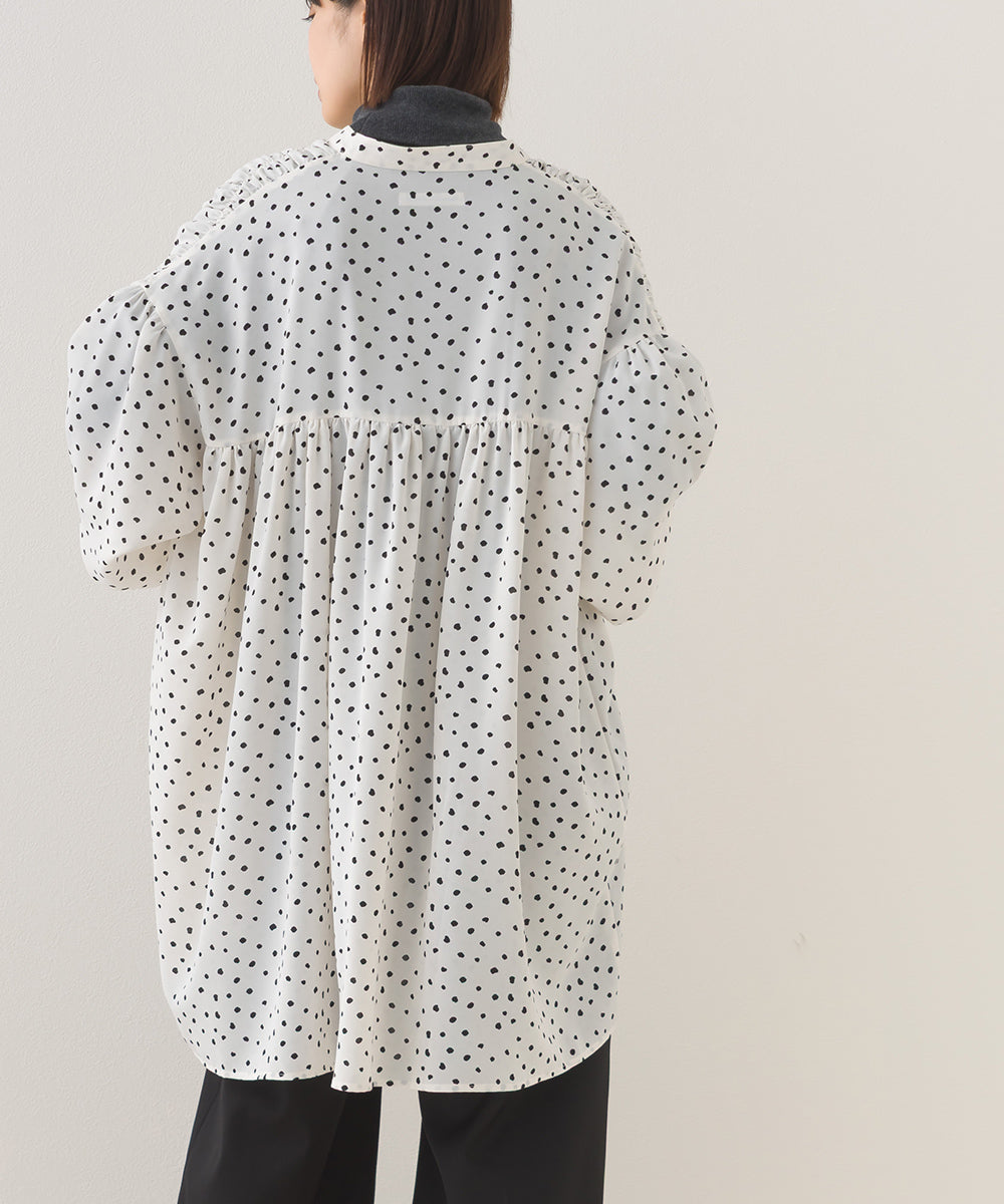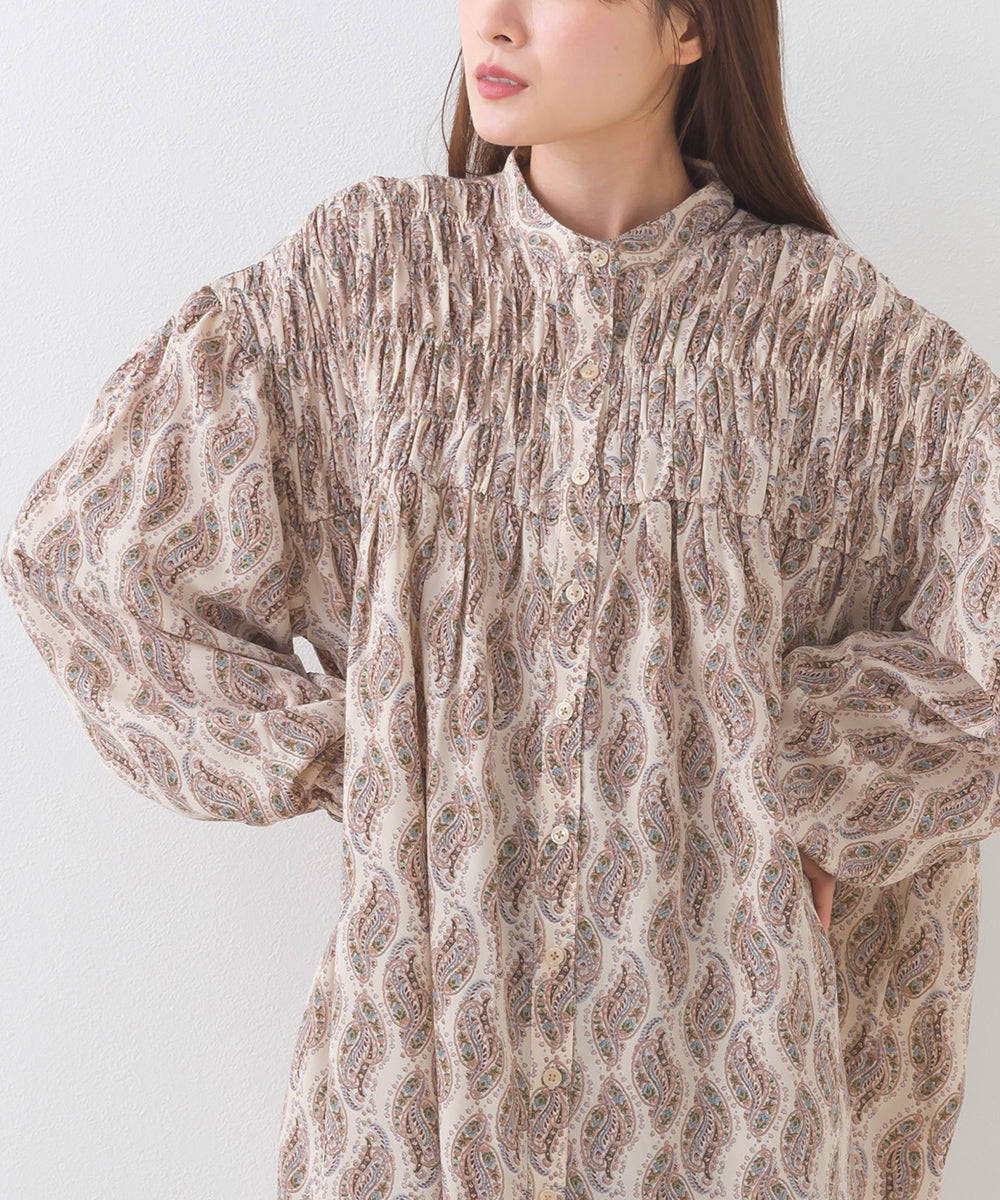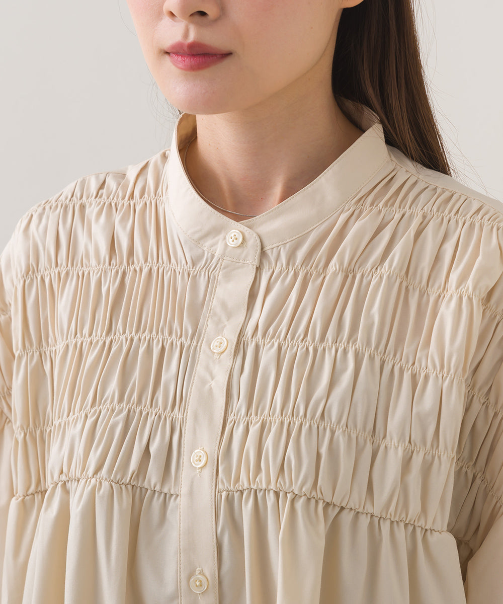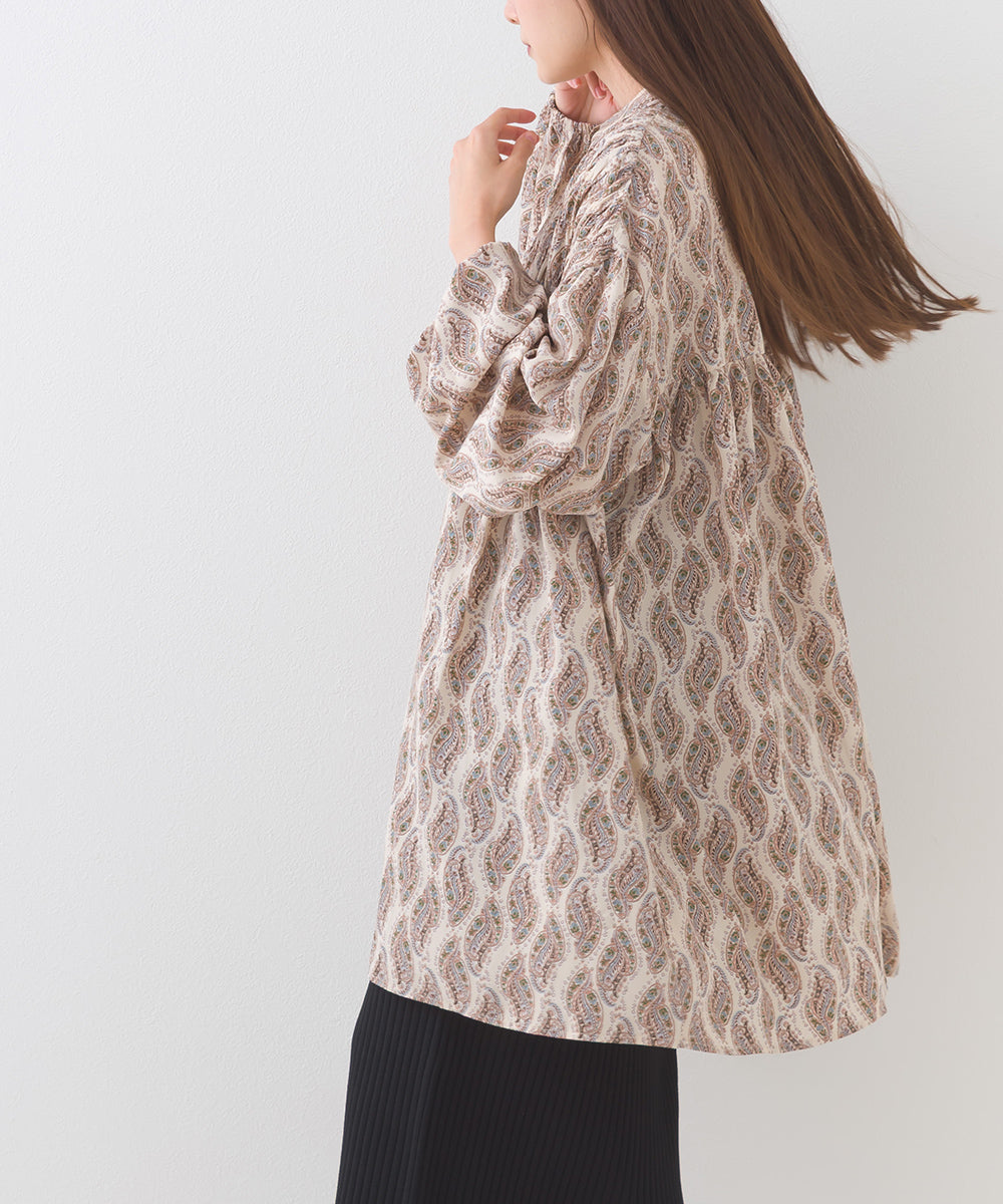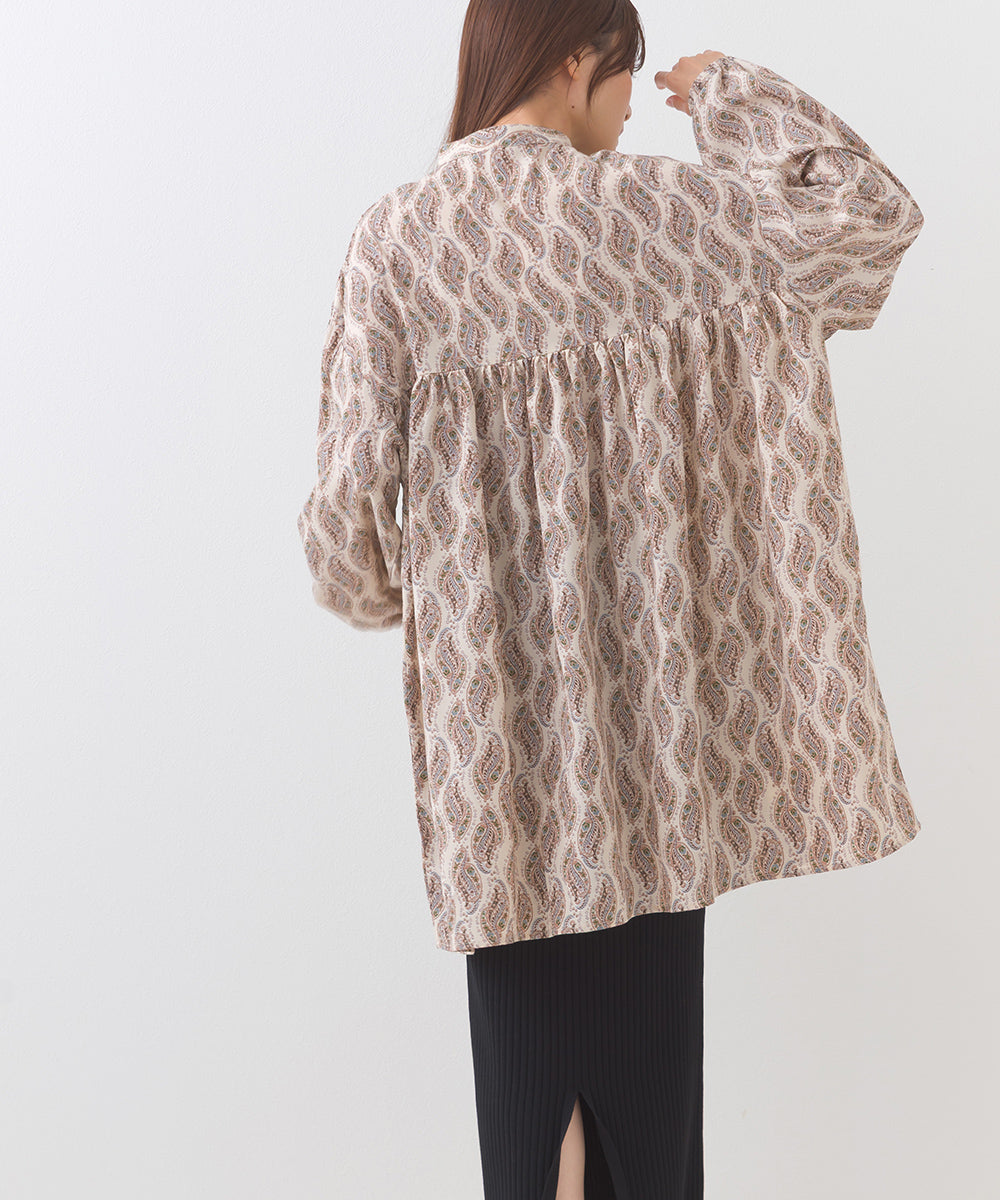 【OMNES】ポプリンフロントシャーリング プルオーバー チュニック 長袖シャツブラウス【253W435OMN104】