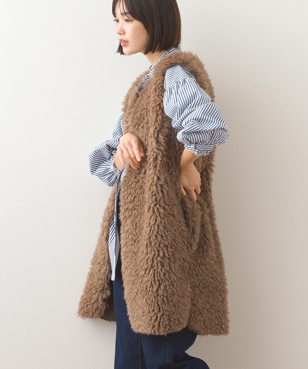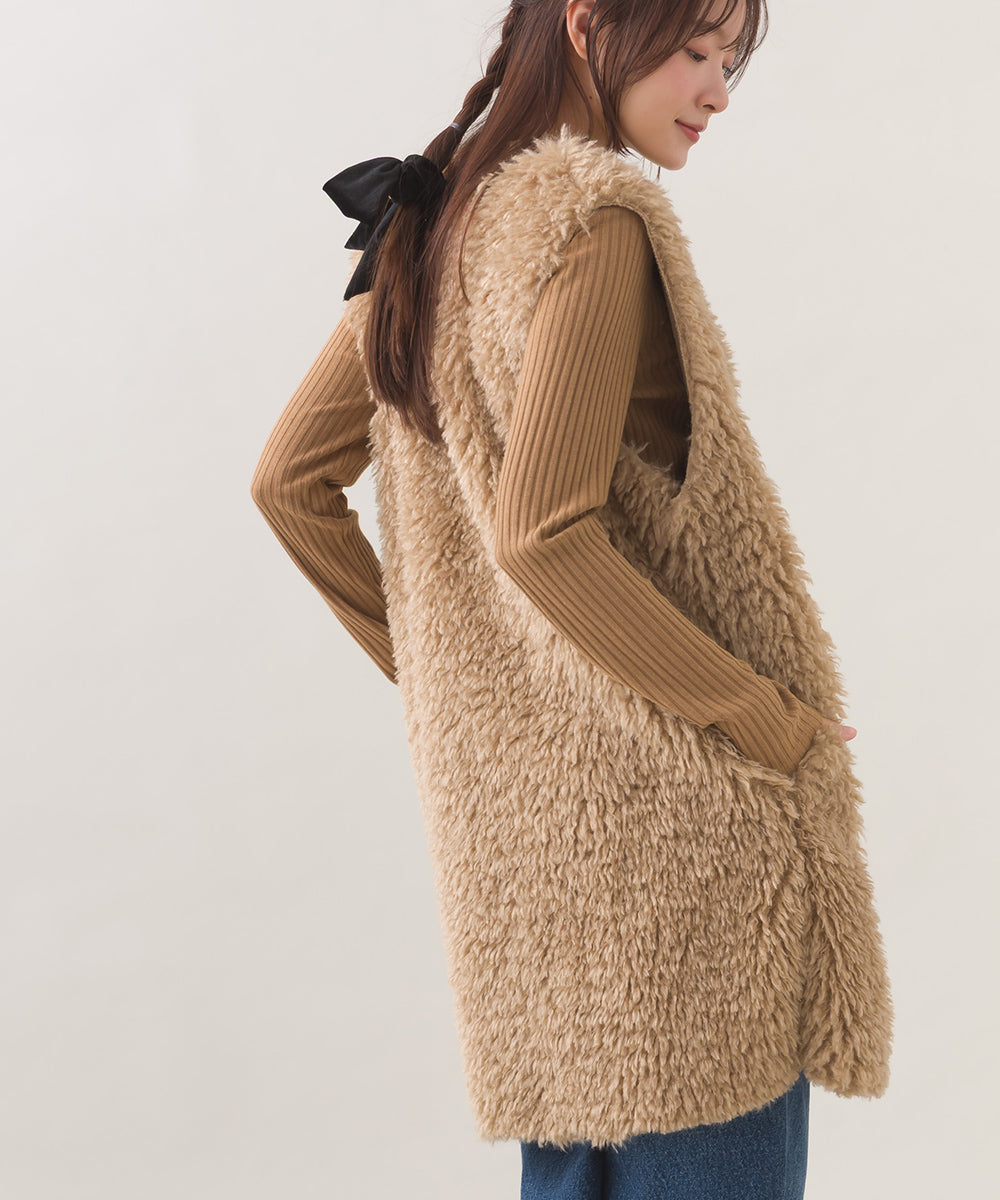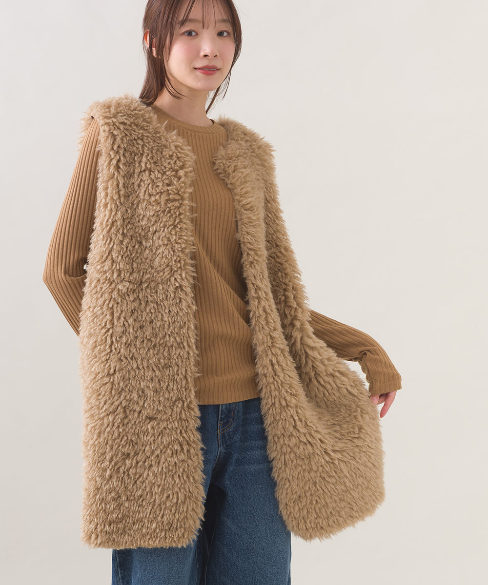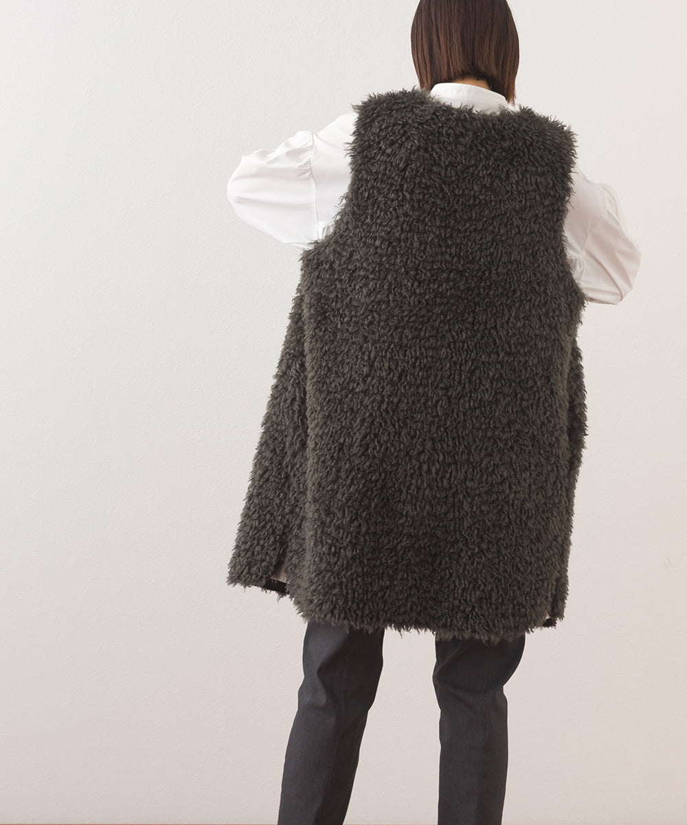 【OMNES】ノーカラープードルファーロングジレベスト【253W436OMN091】