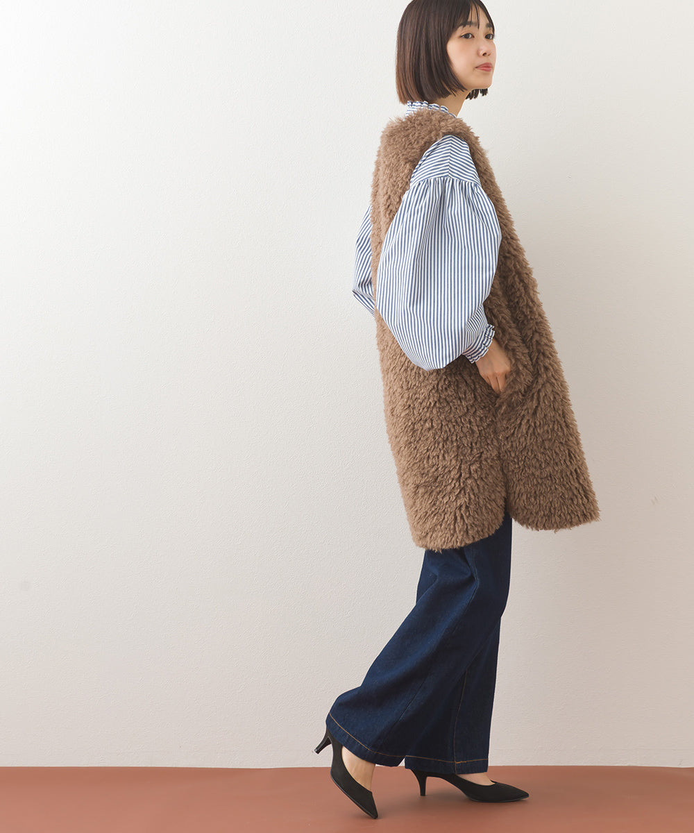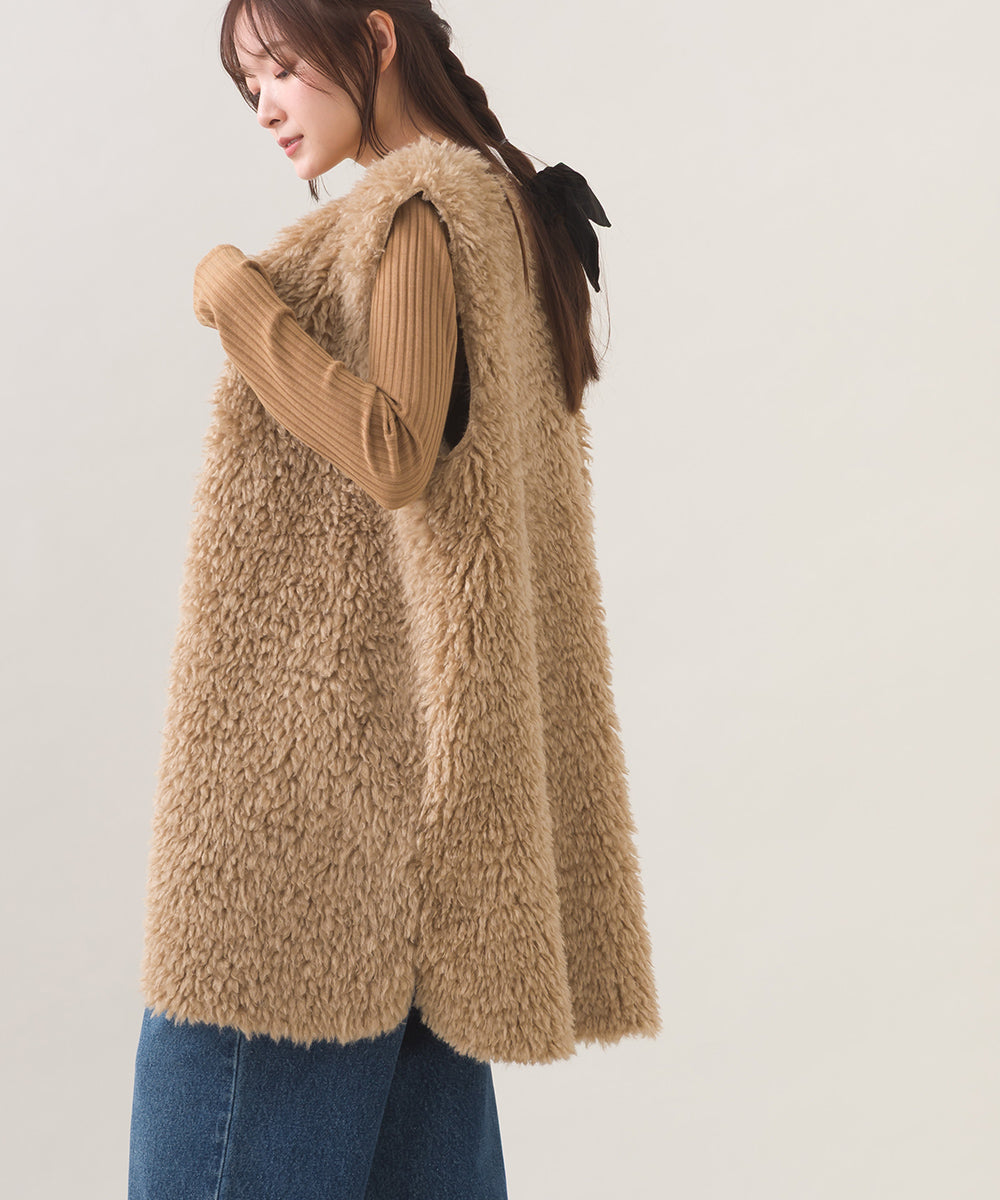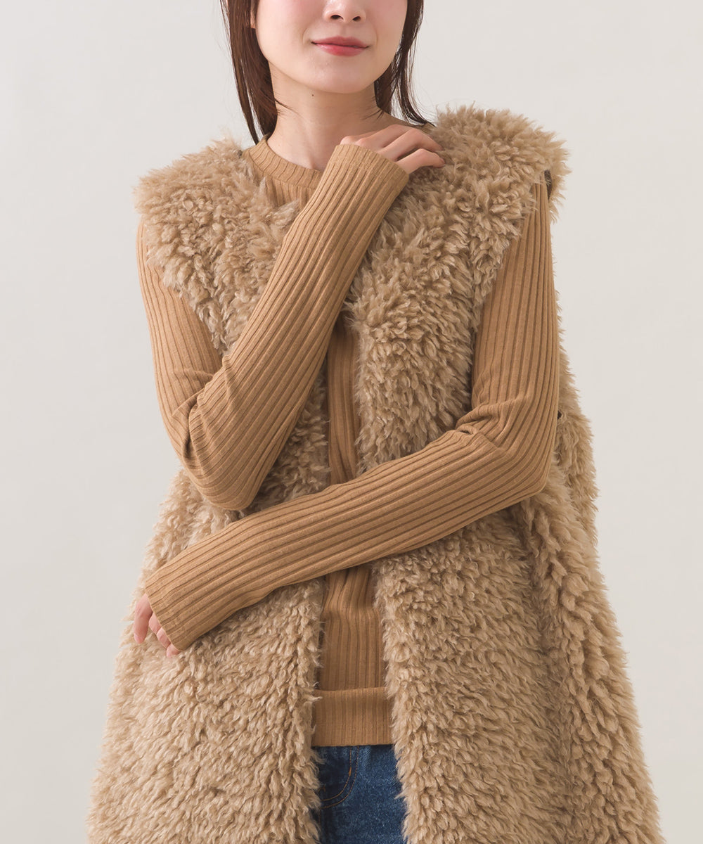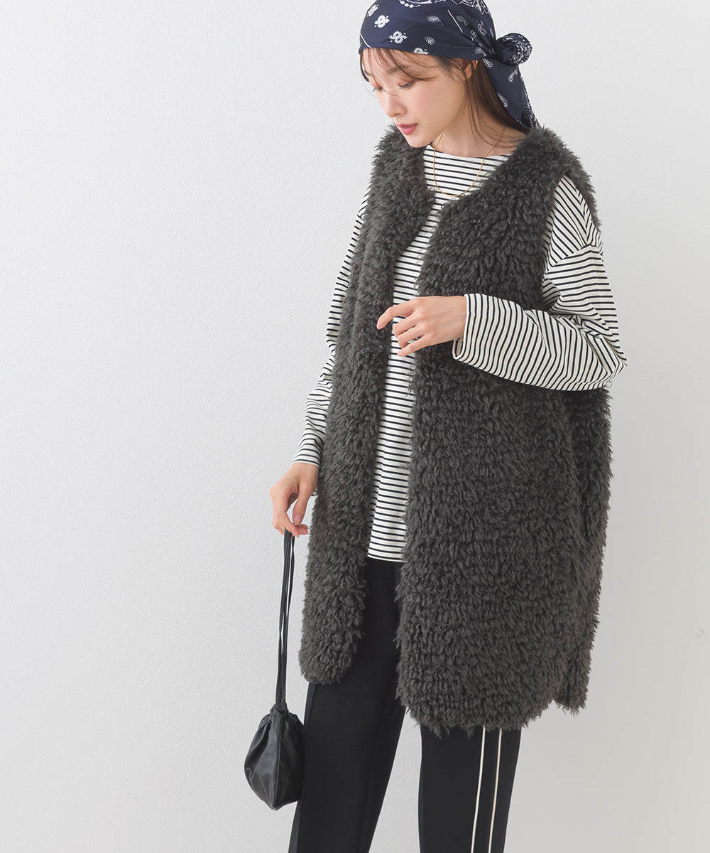 【OMNES】ノーカラープードルファーロングジレベスト【253W436OMN091】