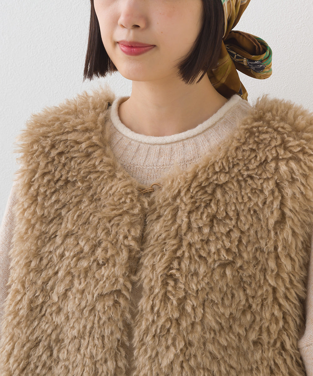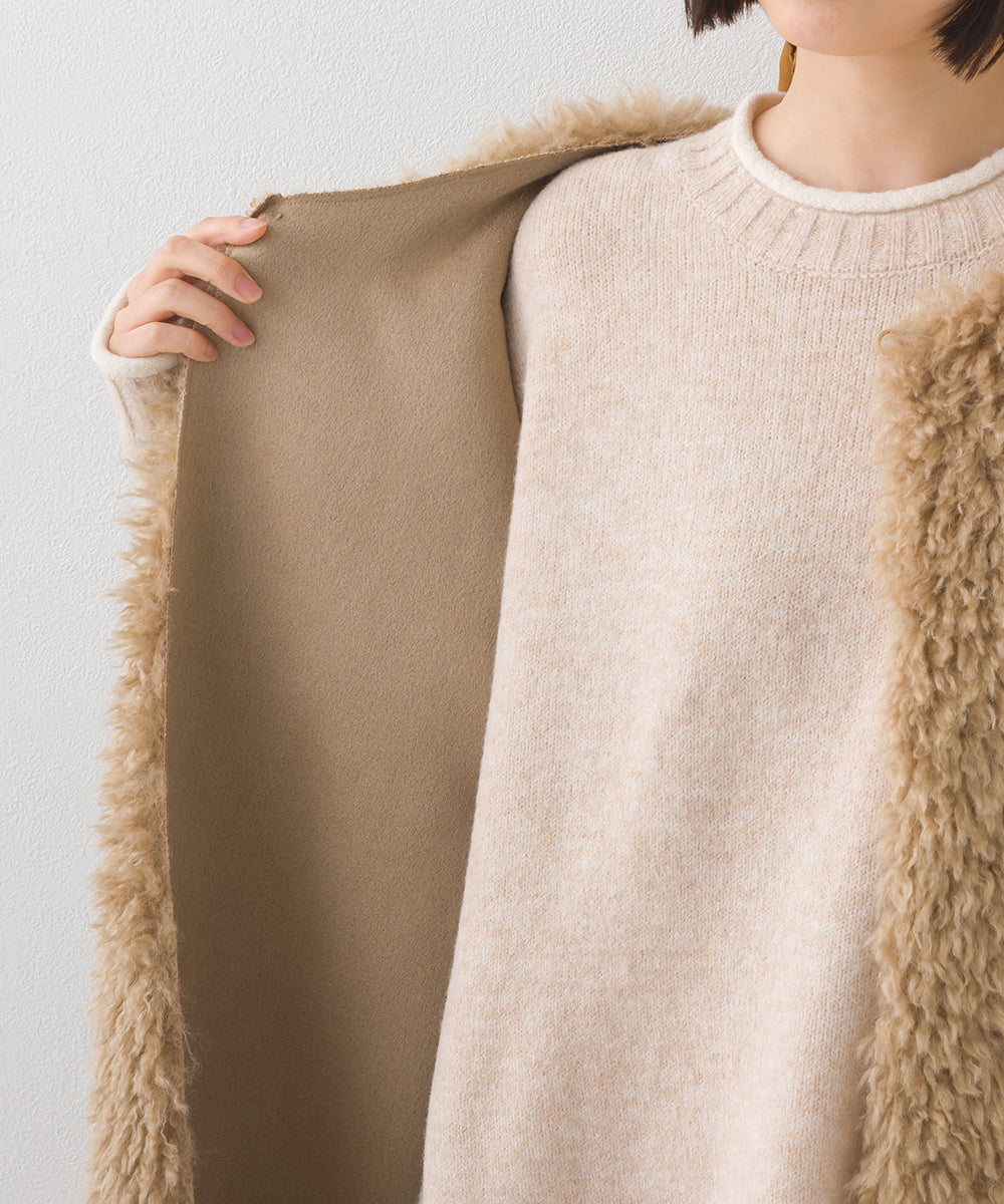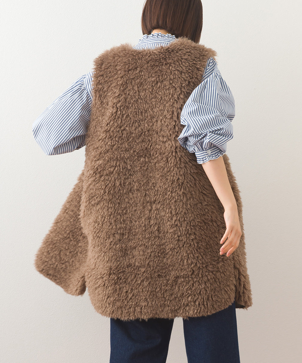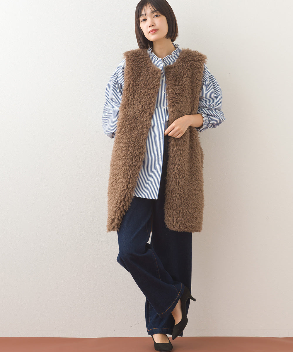 【OMNES】ノーカラープードルファーロングジレベスト【253W436OMN091】