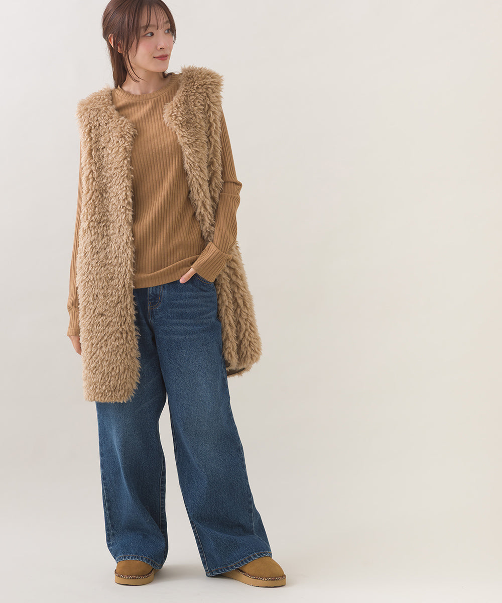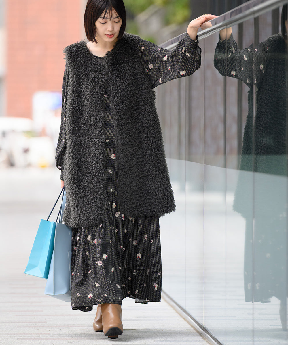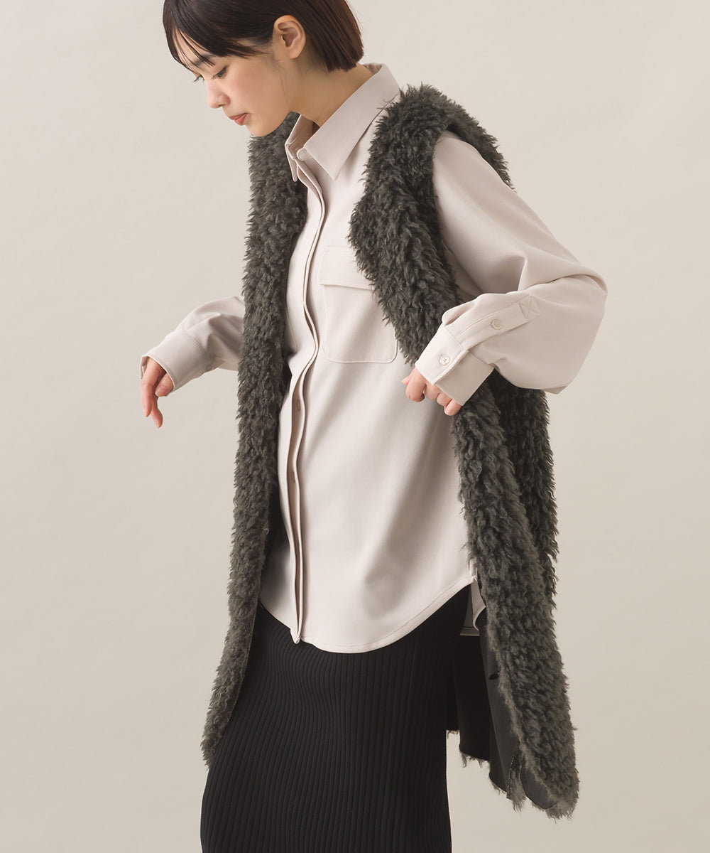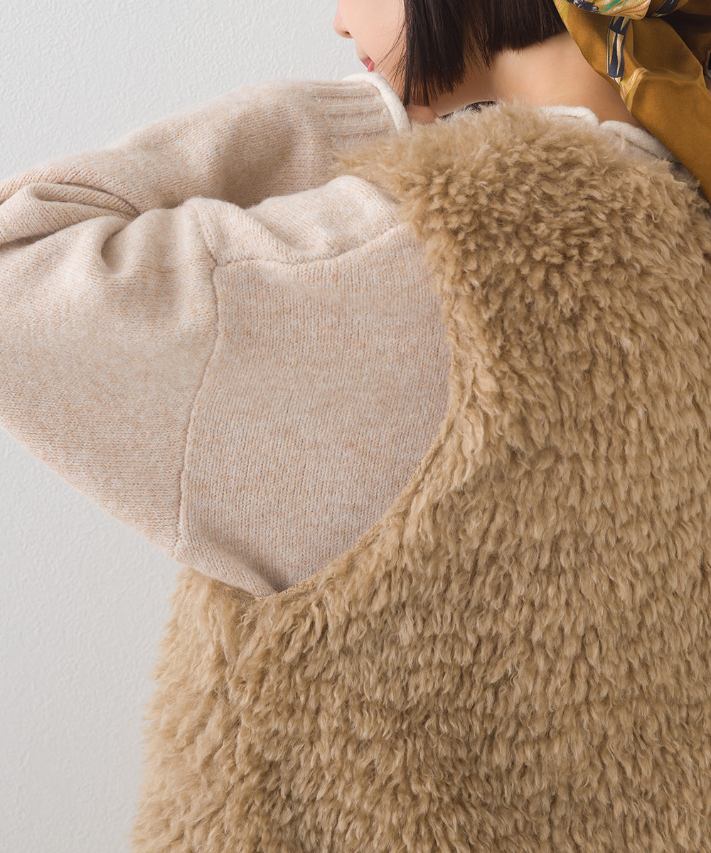 【OMNES】ノーカラープードルファーロングジレベスト【253W436OMN091】