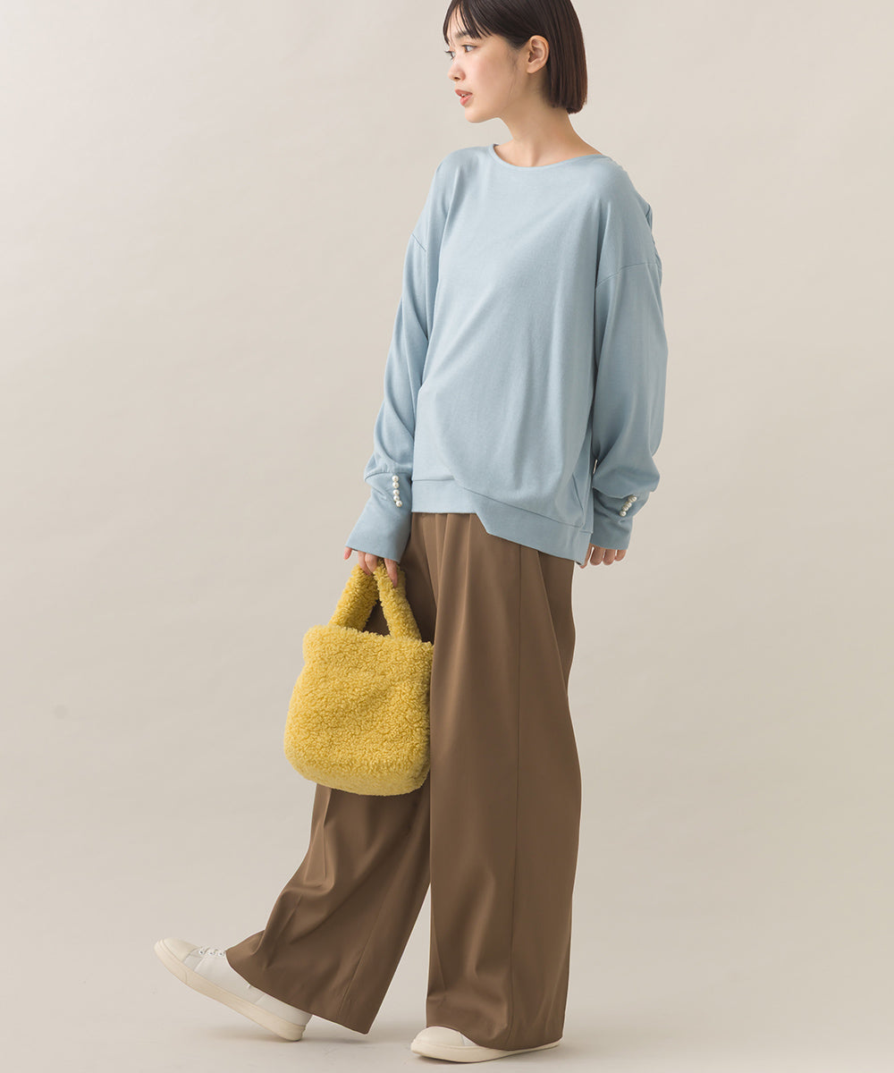 【コーディネート】 ワイドパンツと合わせて抜け感のある大人カジュアルに。 フレアスカートやパンプスを合わせれば、上品なお出かけスタイルにも。