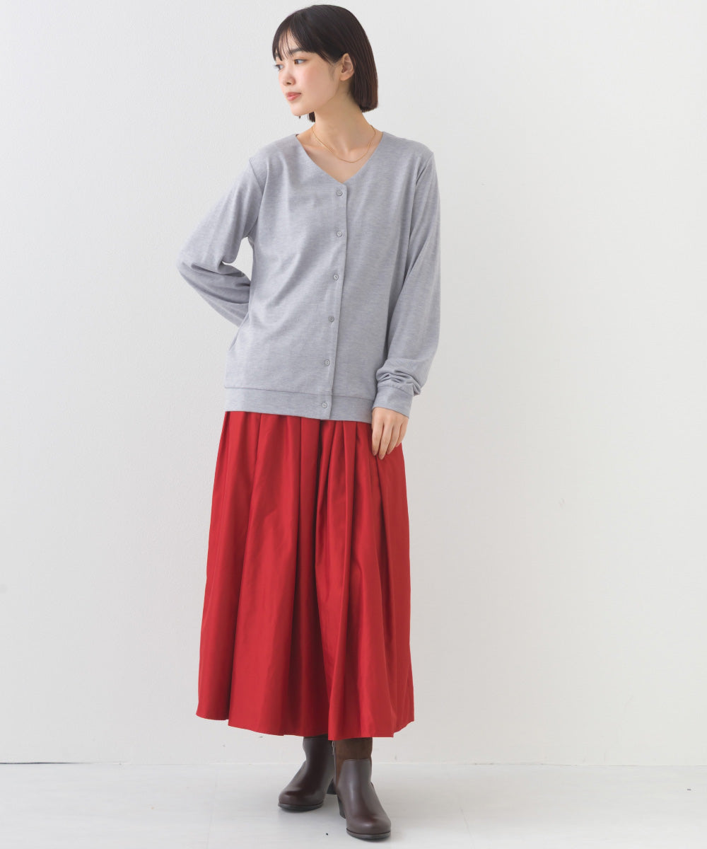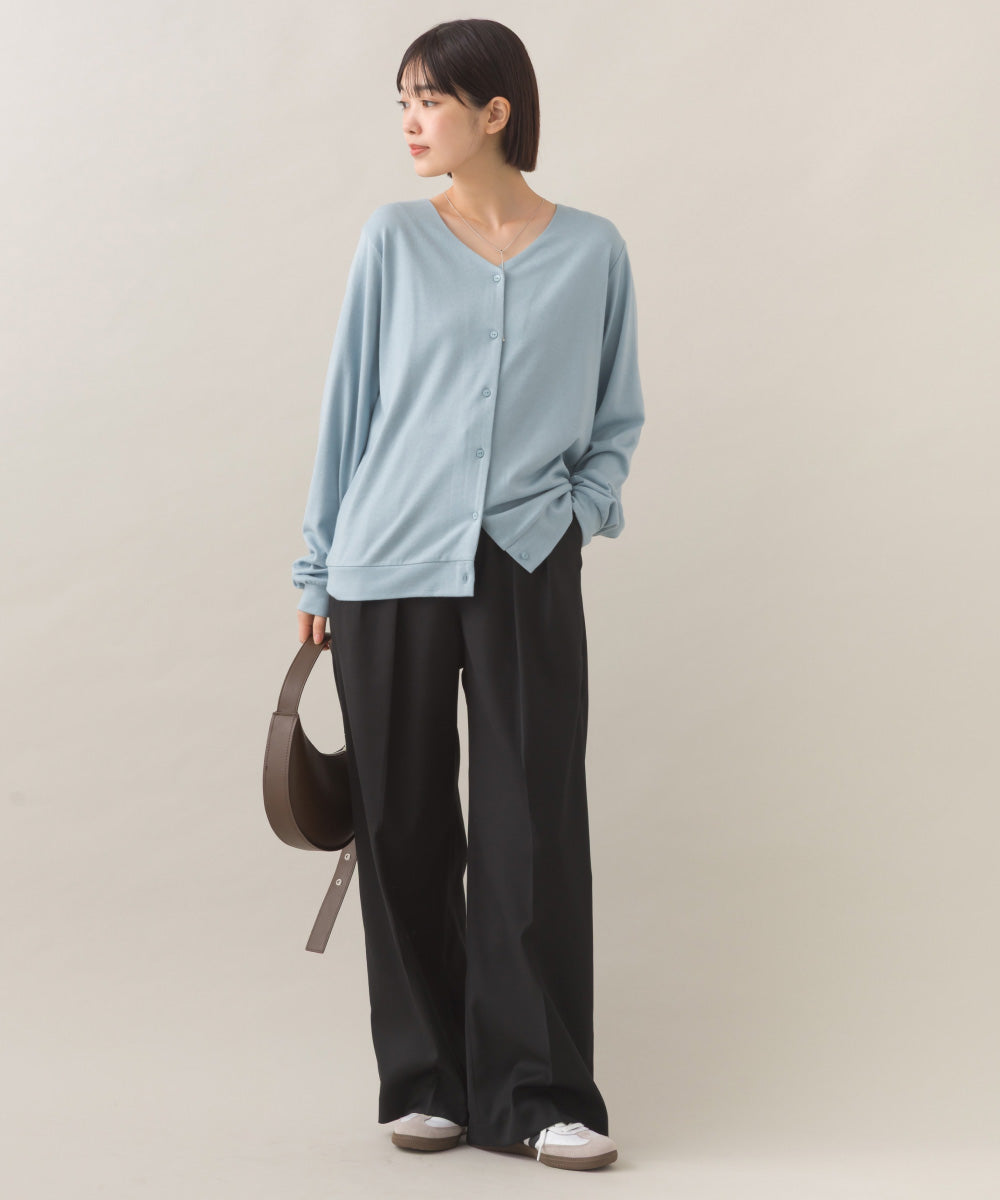 【コーディネート】 ワイドパンツと合わせて抜け感のある大人カジュアルに。 フレアスカートや細身パンツで上品なきれいめスタイルにもおすすめ。