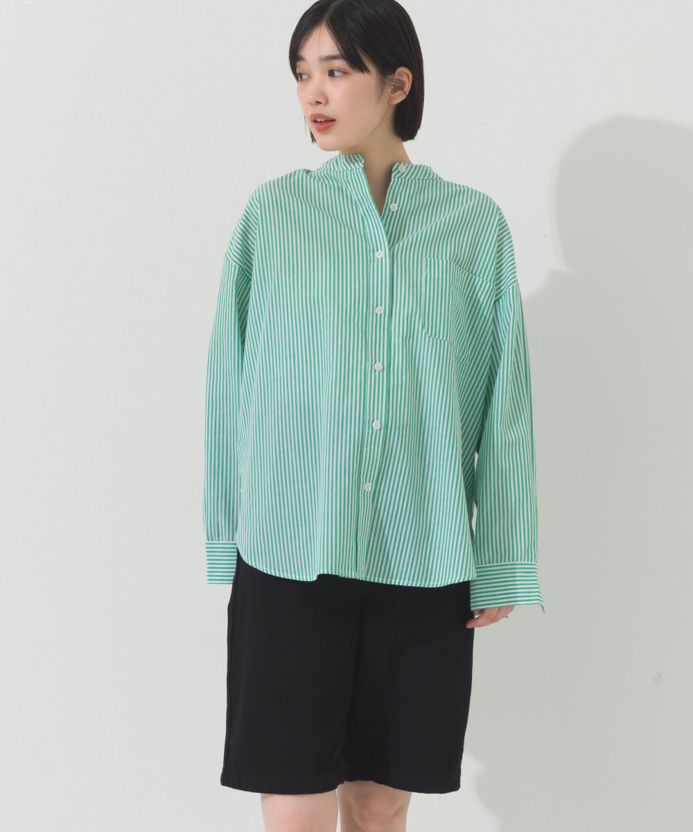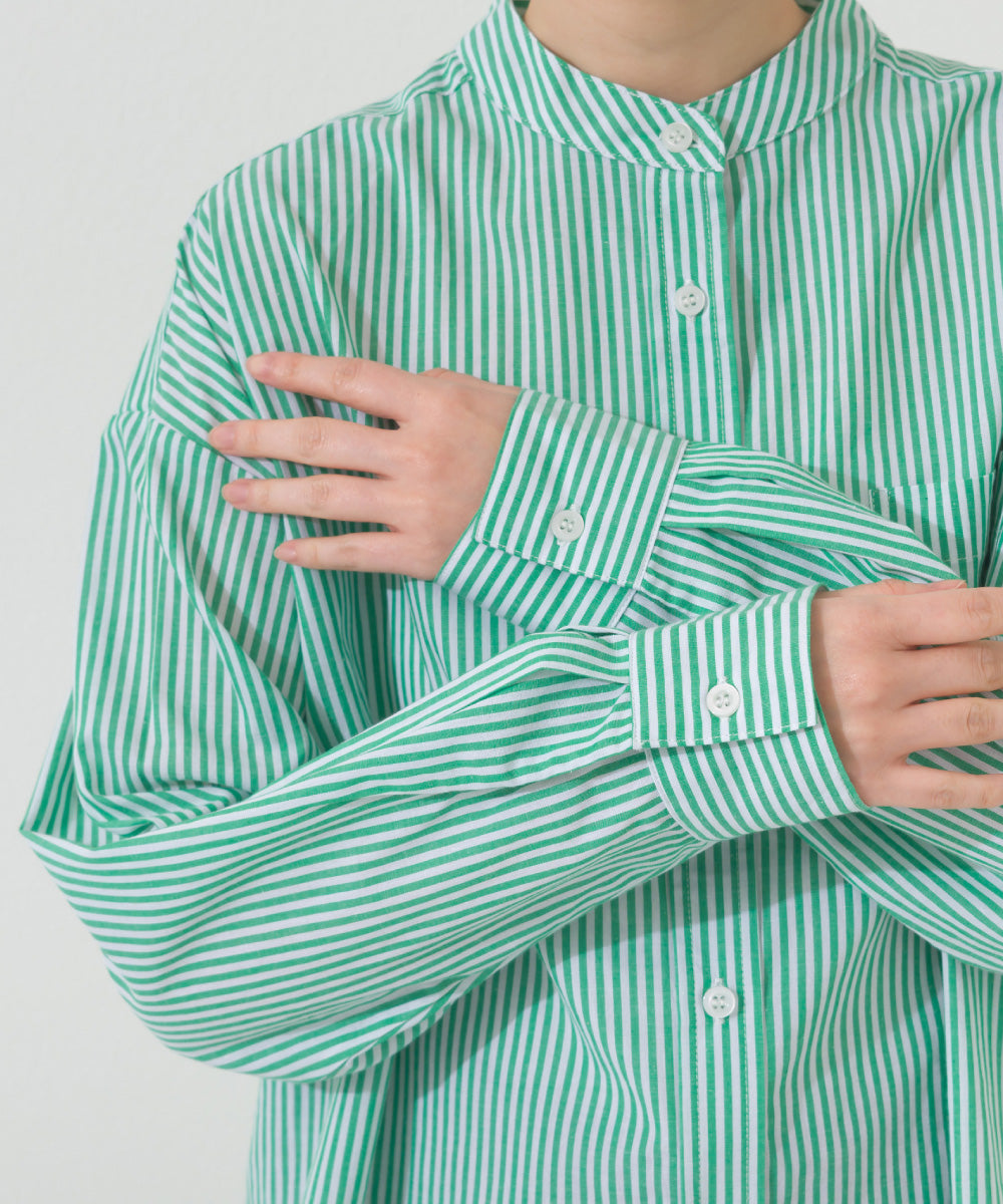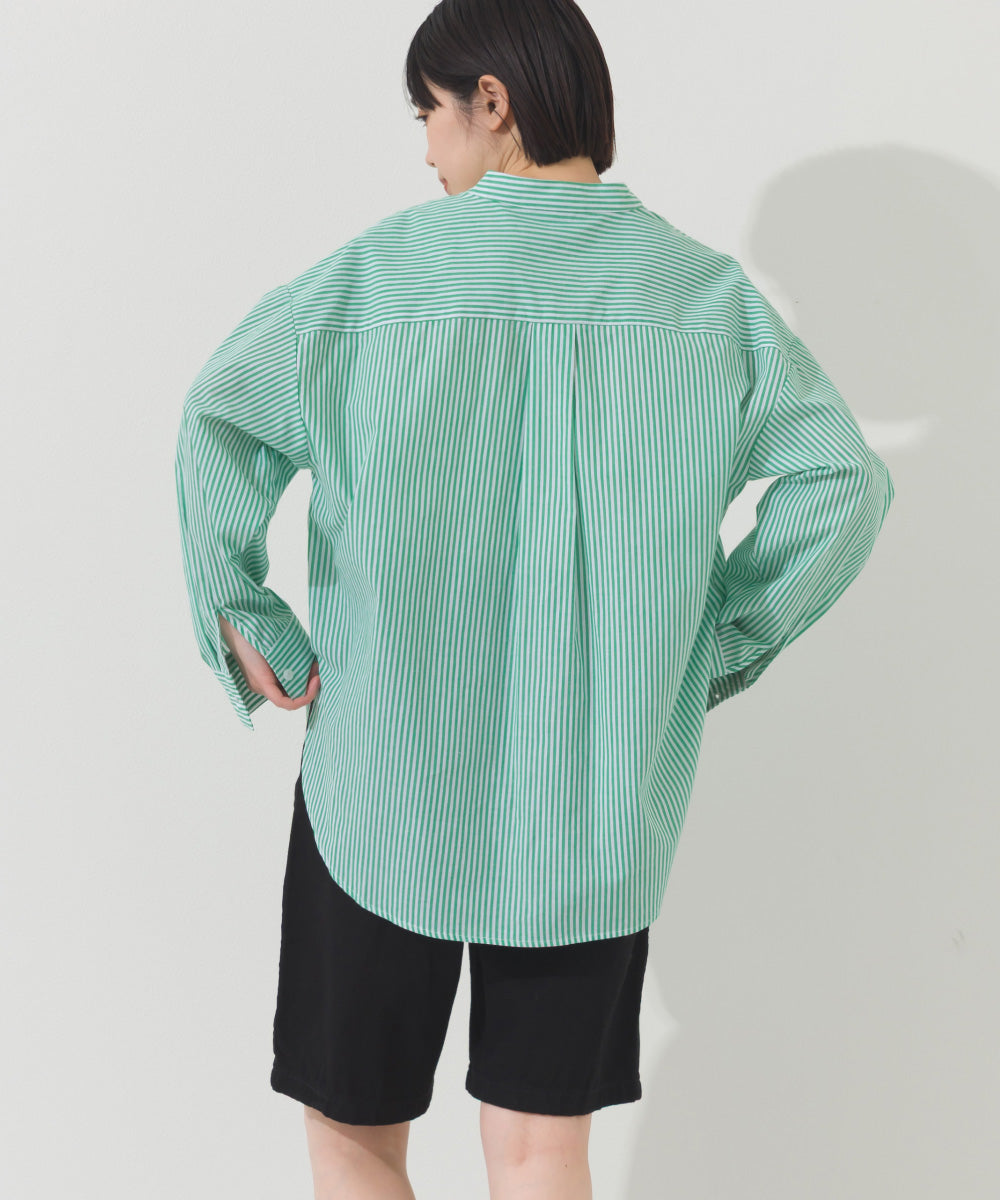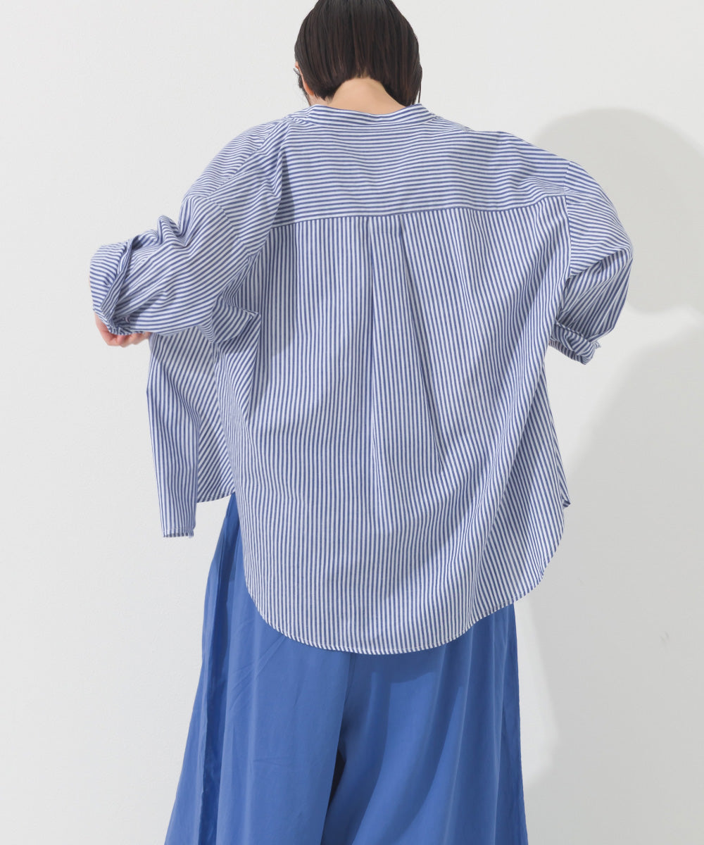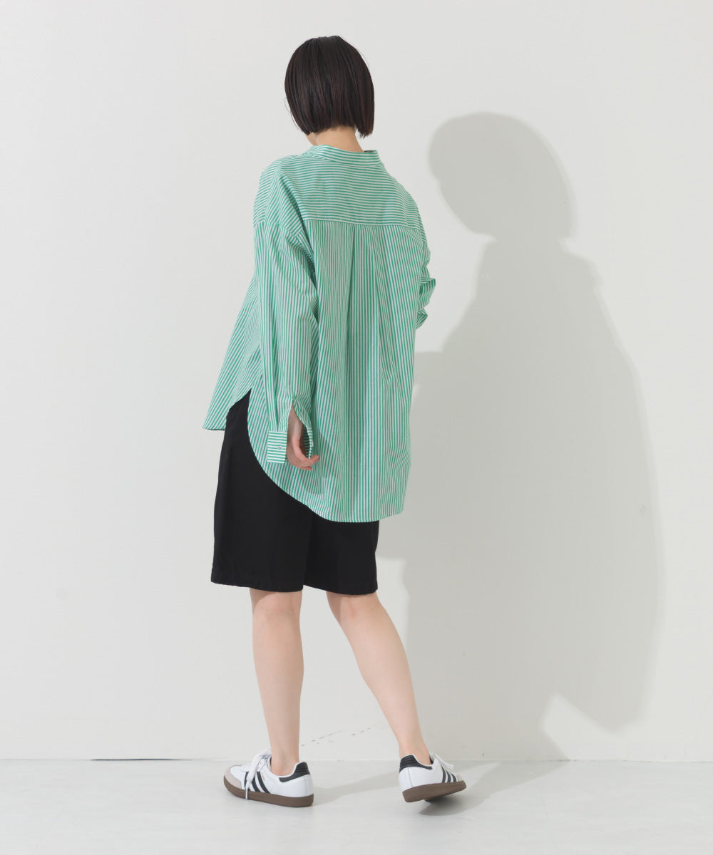 【OMNES】オーバーサイズバンドカラーストライプ長袖シャツ【A450012OMN】