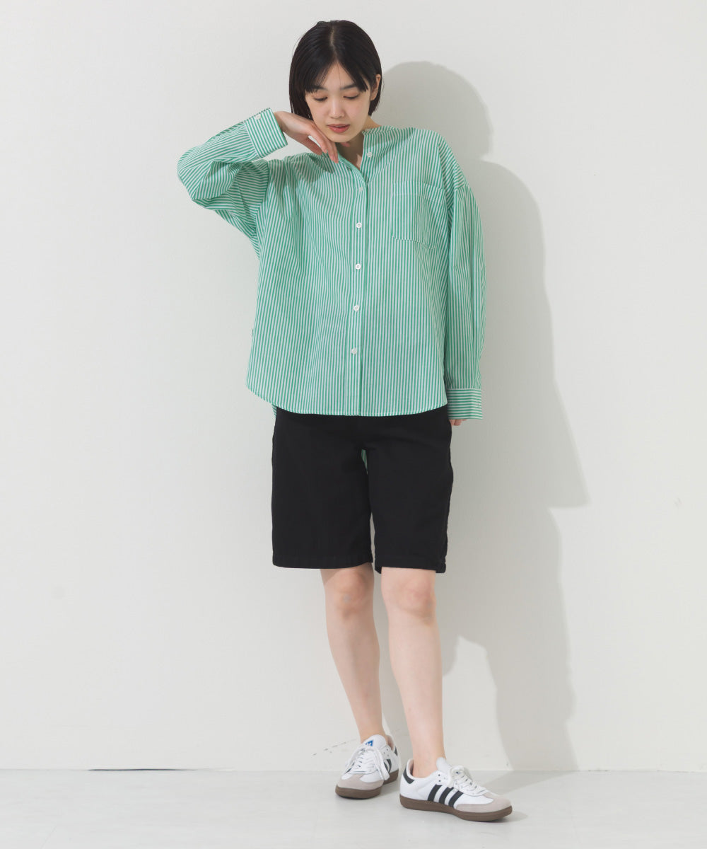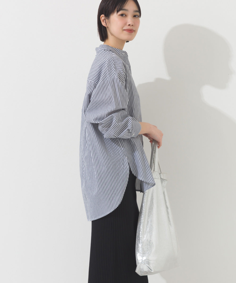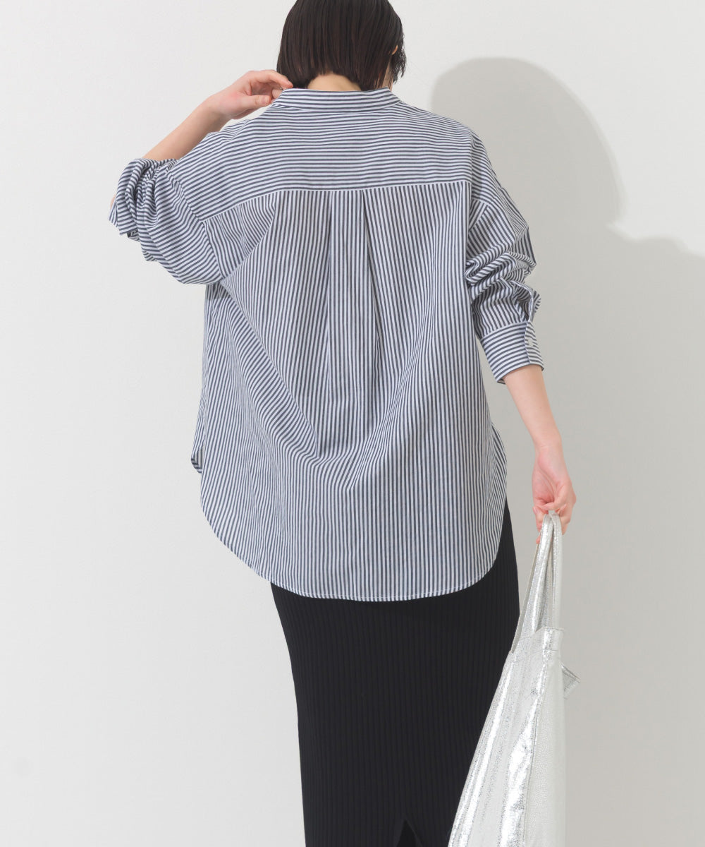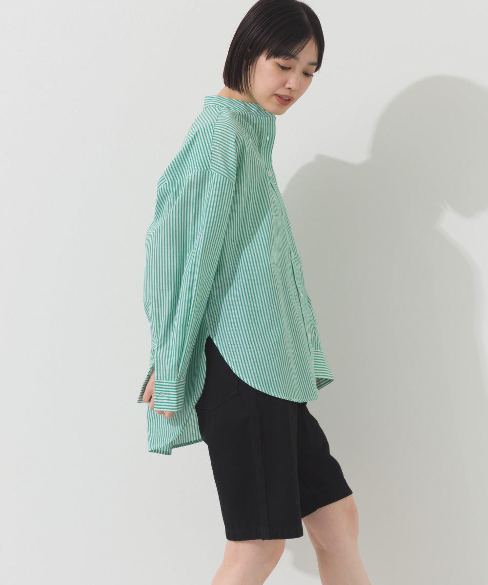 【OMNES】オーバーサイズバンドカラーストライプ長袖シャツ【A450012OMN】