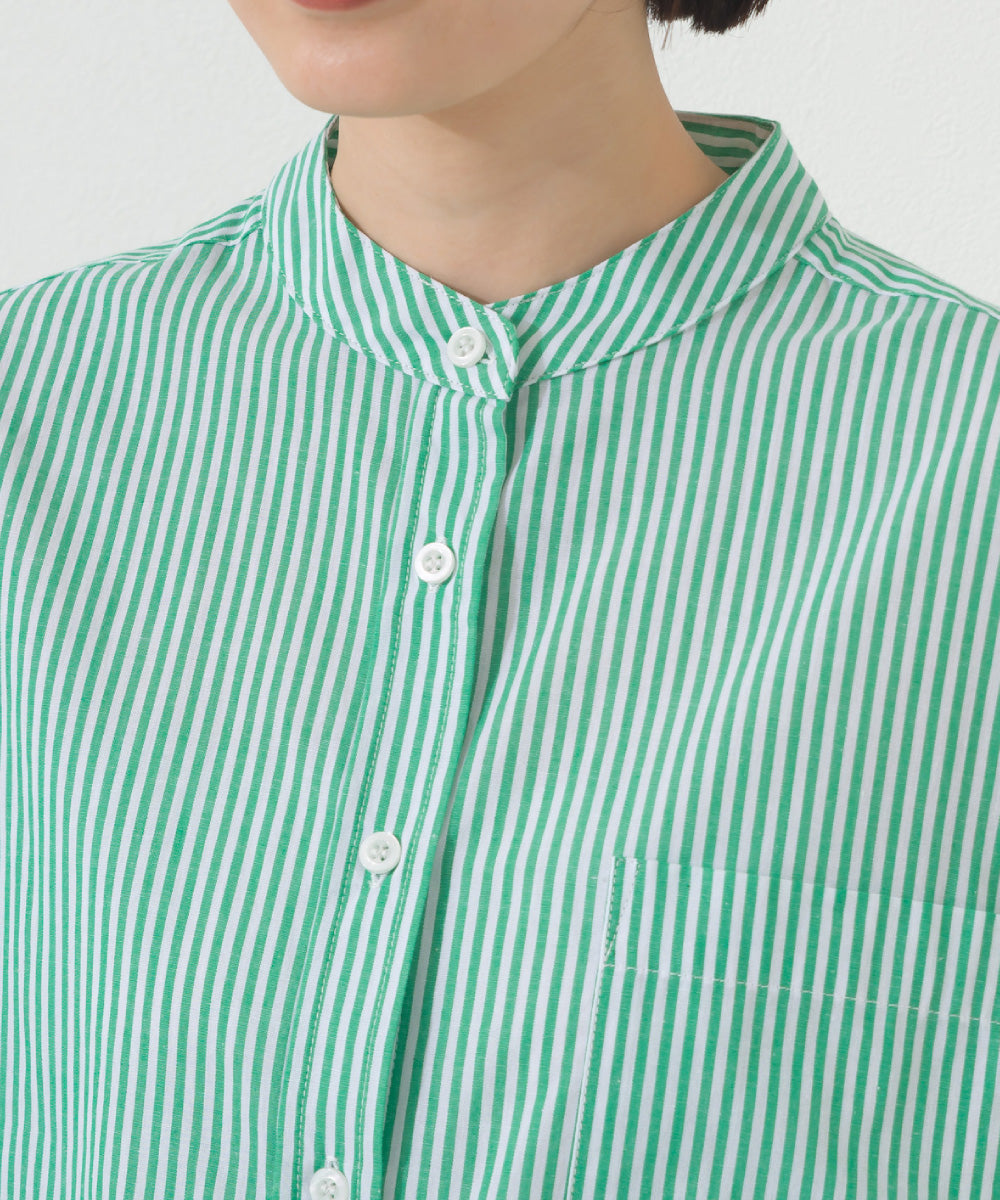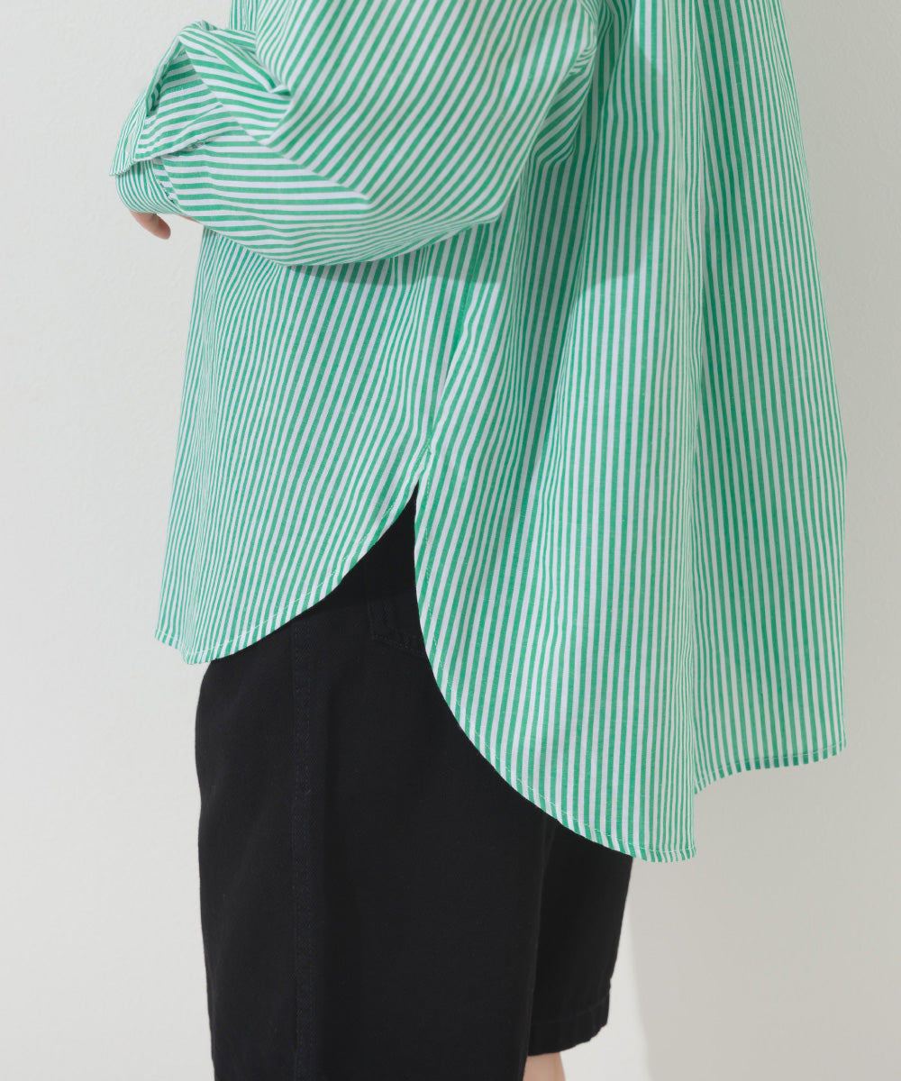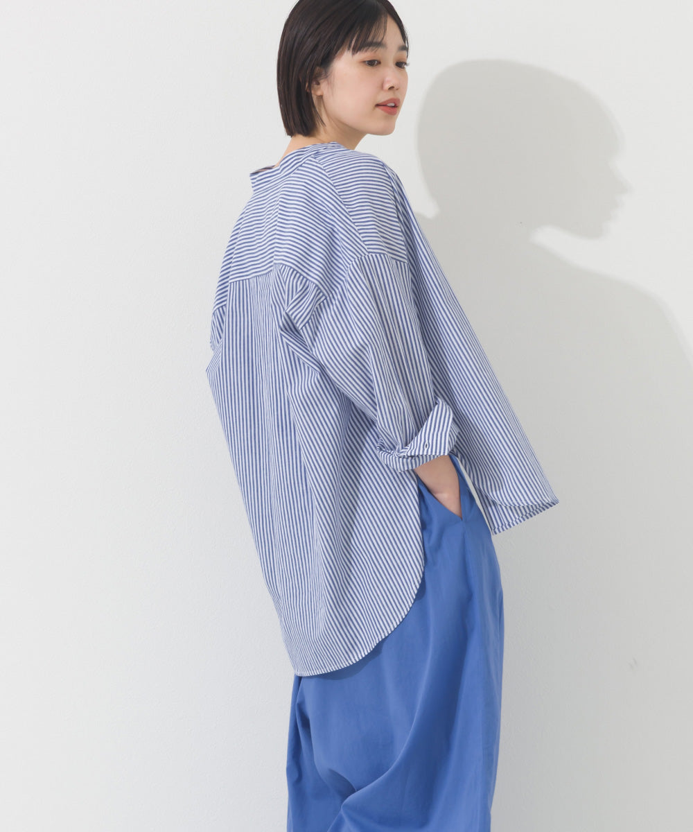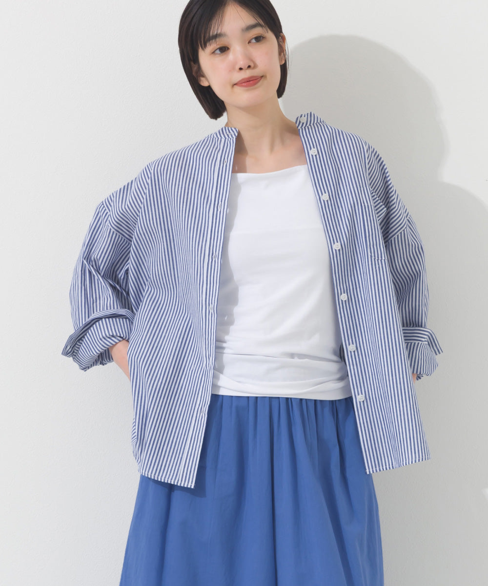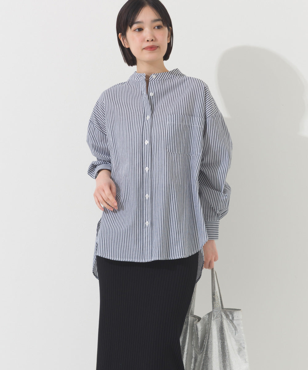 【OMNES】オーバーサイズバンドカラーストライプ長袖シャツ【A450012OMN】