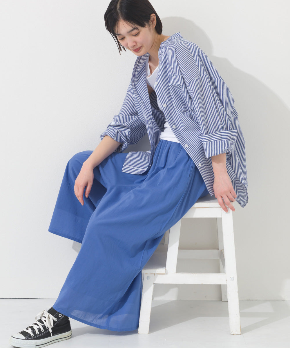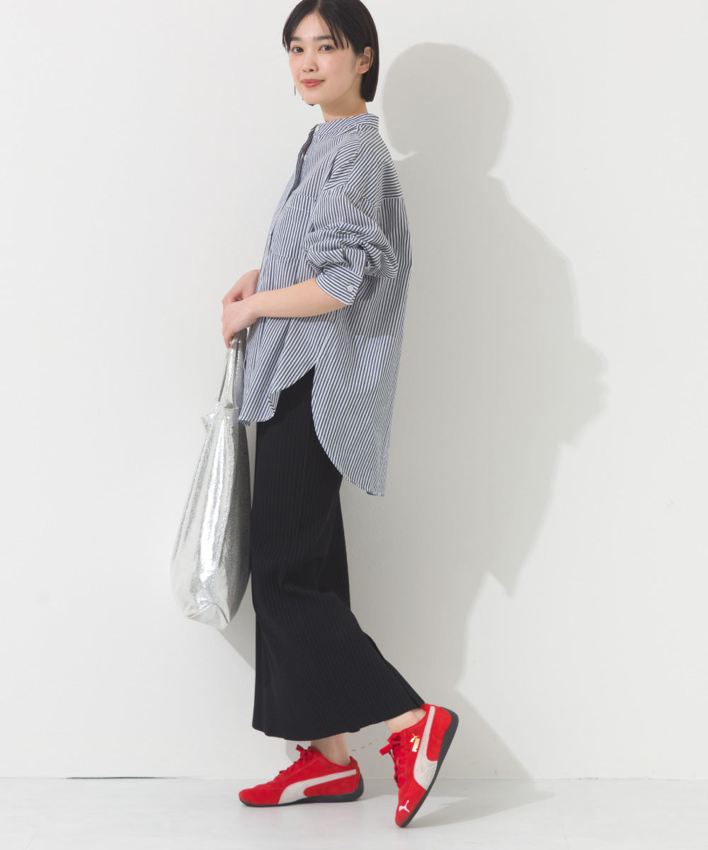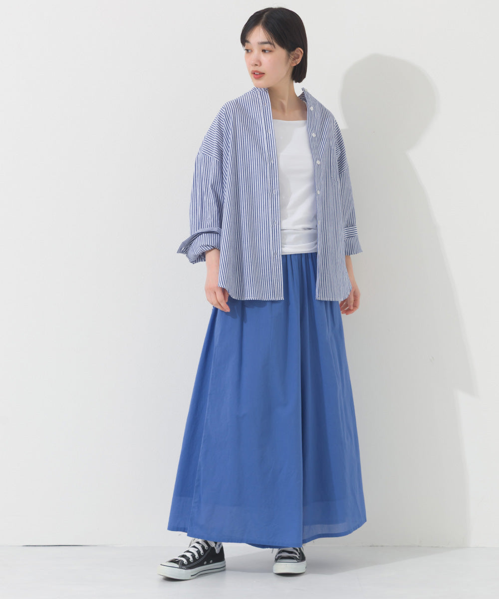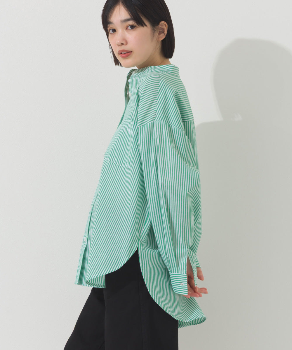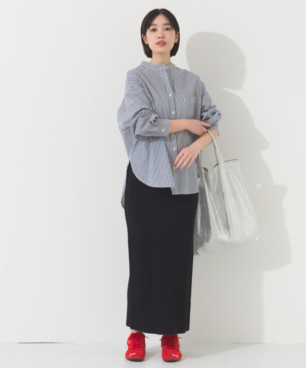 【OMNES】オーバーサイズバンドカラーストライプ長袖シャツ【A450012OMN】